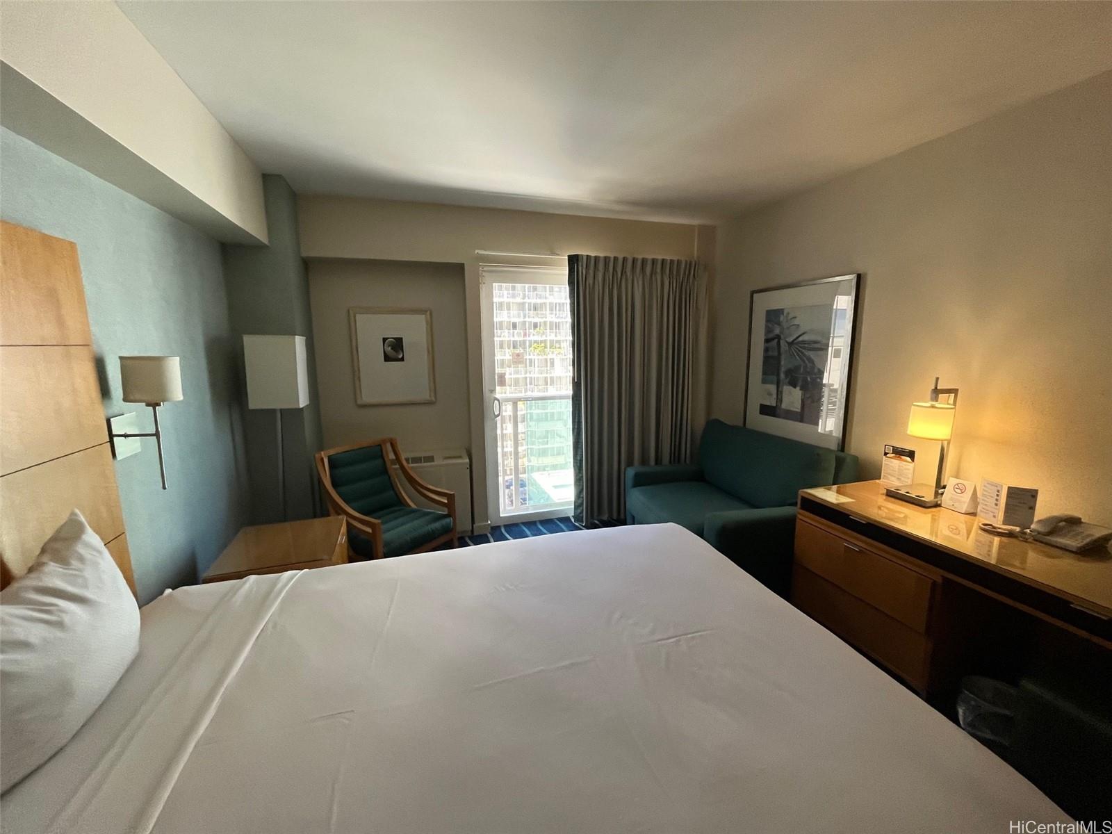 he unit comes with the list of the inclusion and 2 double beds and 1 round table w/ 2 chairs. Very popular Island-style hotel-condo with a convenient location connecting to Ala Moana Center. Very popular Island-style hotel-condo with convenience location connecting to Ala Moana Center. Just steps away from Ala Moana Beach Park the Hawaii Convention Center, retail shopping, and restaurants in Waikiki and the Ward area. Hotel amenities include a concierge, activities center, meeting rooms, pool, gym, and valet service. Owner benefits from the hotel program are good for travelers.