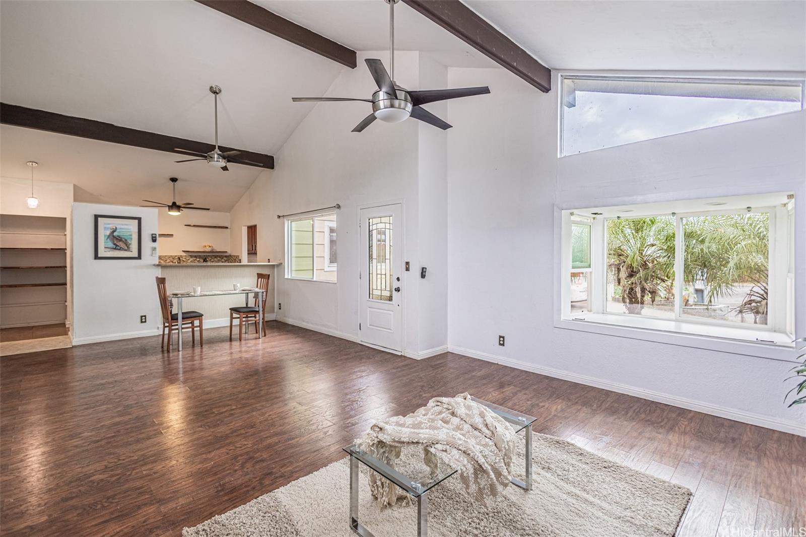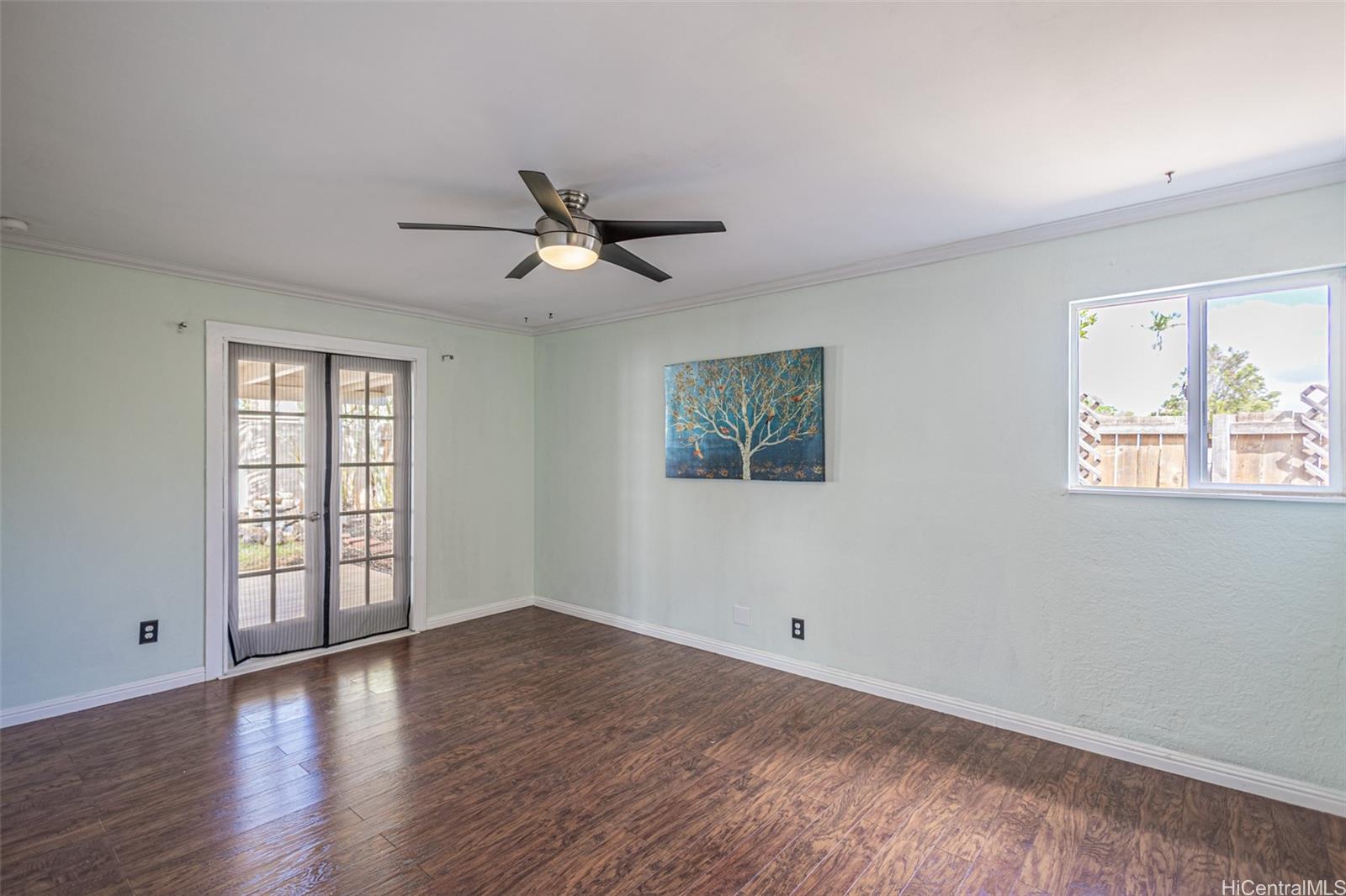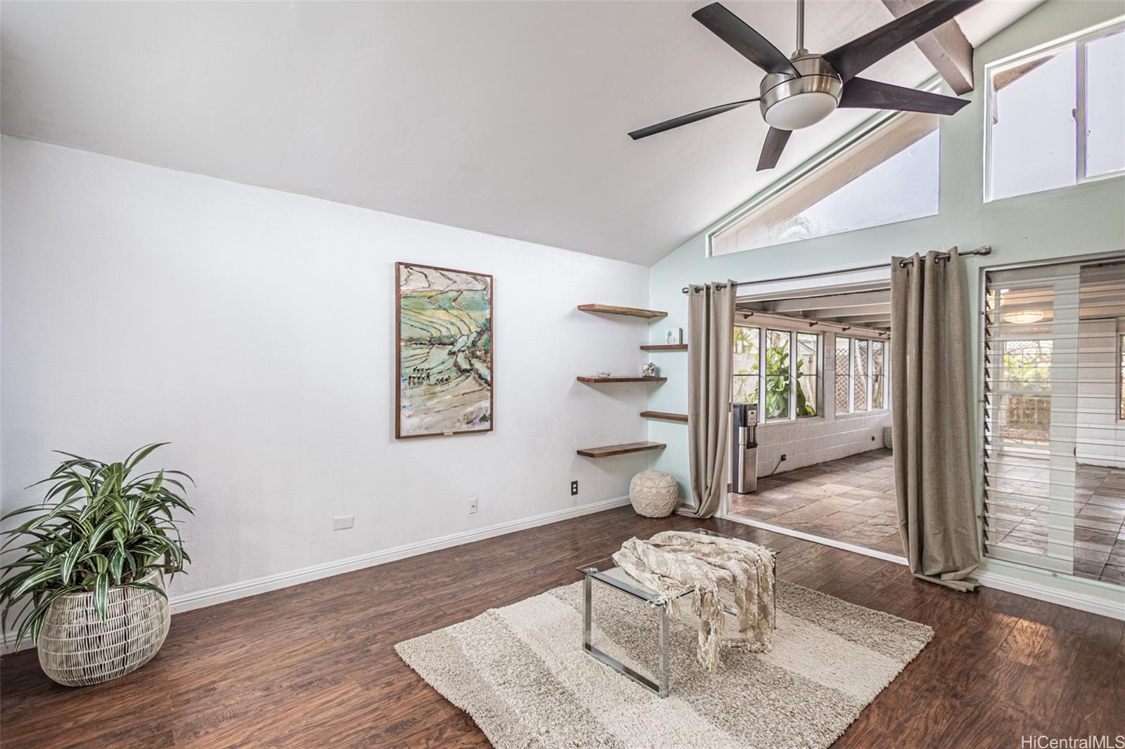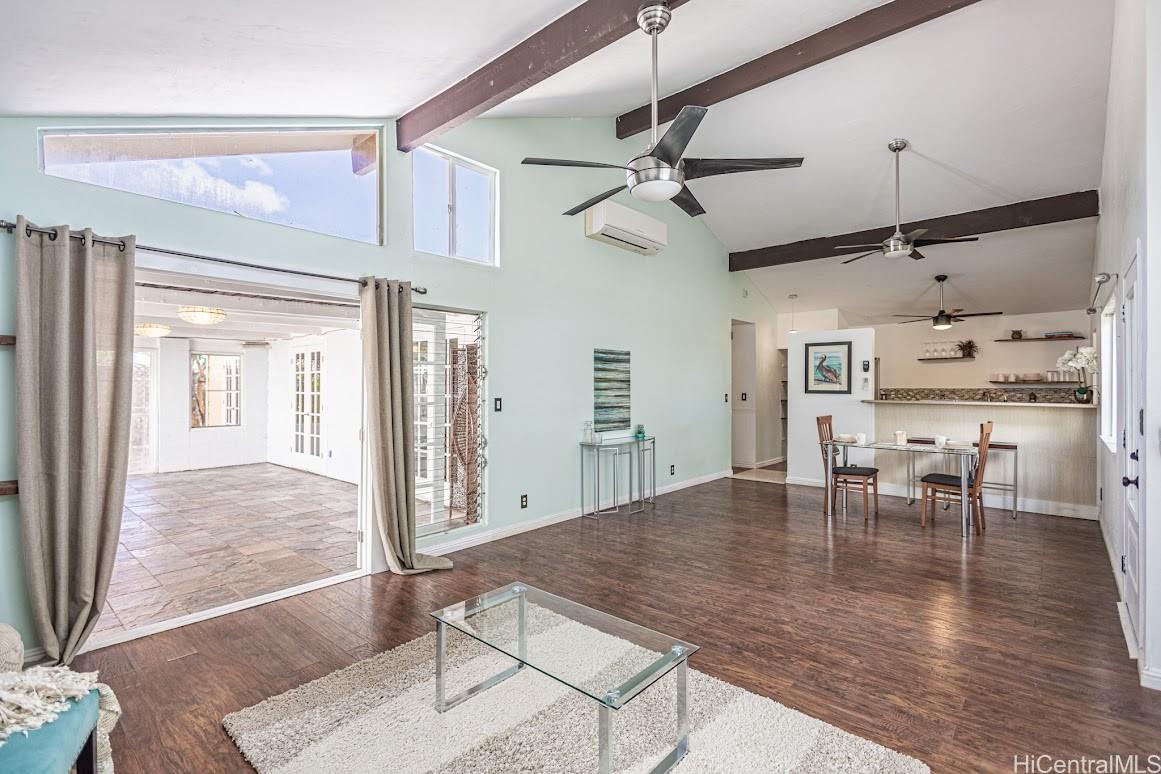 | ery spacious 3 bedroom 2 bath home located on a pleasant cul-de-sac in Mililani. Single story home with a large covered patio and wonderful natural light throughout. The home features Split and window AC, vaulted ceilings, barn doors, laundry room, walk-in closet, and laminate and natural stone tile flooring. Roomy enclosed patio can be made into a family room or game room. Close to schools, parks, tennis courts, golfing, and shopping centers. Big driveway gives you enough room to park 4 cars. Make this your dream home today. Coming soon 3D interactive video tour. Actual square footage differs from tax records. 1324(tax record) + 336(enclosed lanai) | What will it cost to own? | |