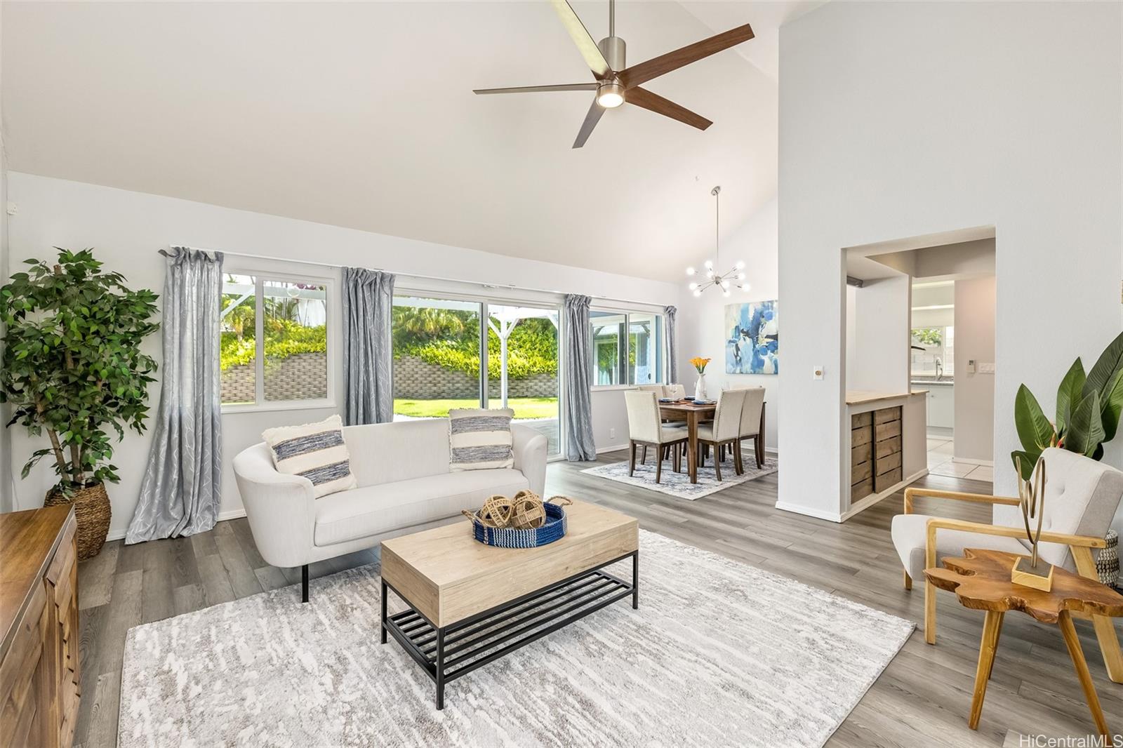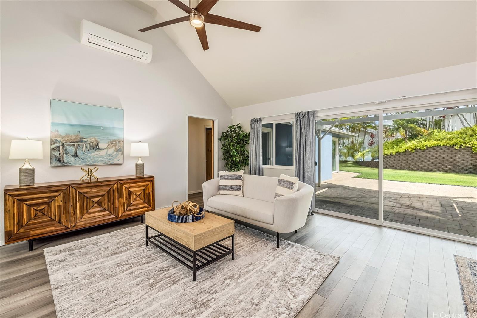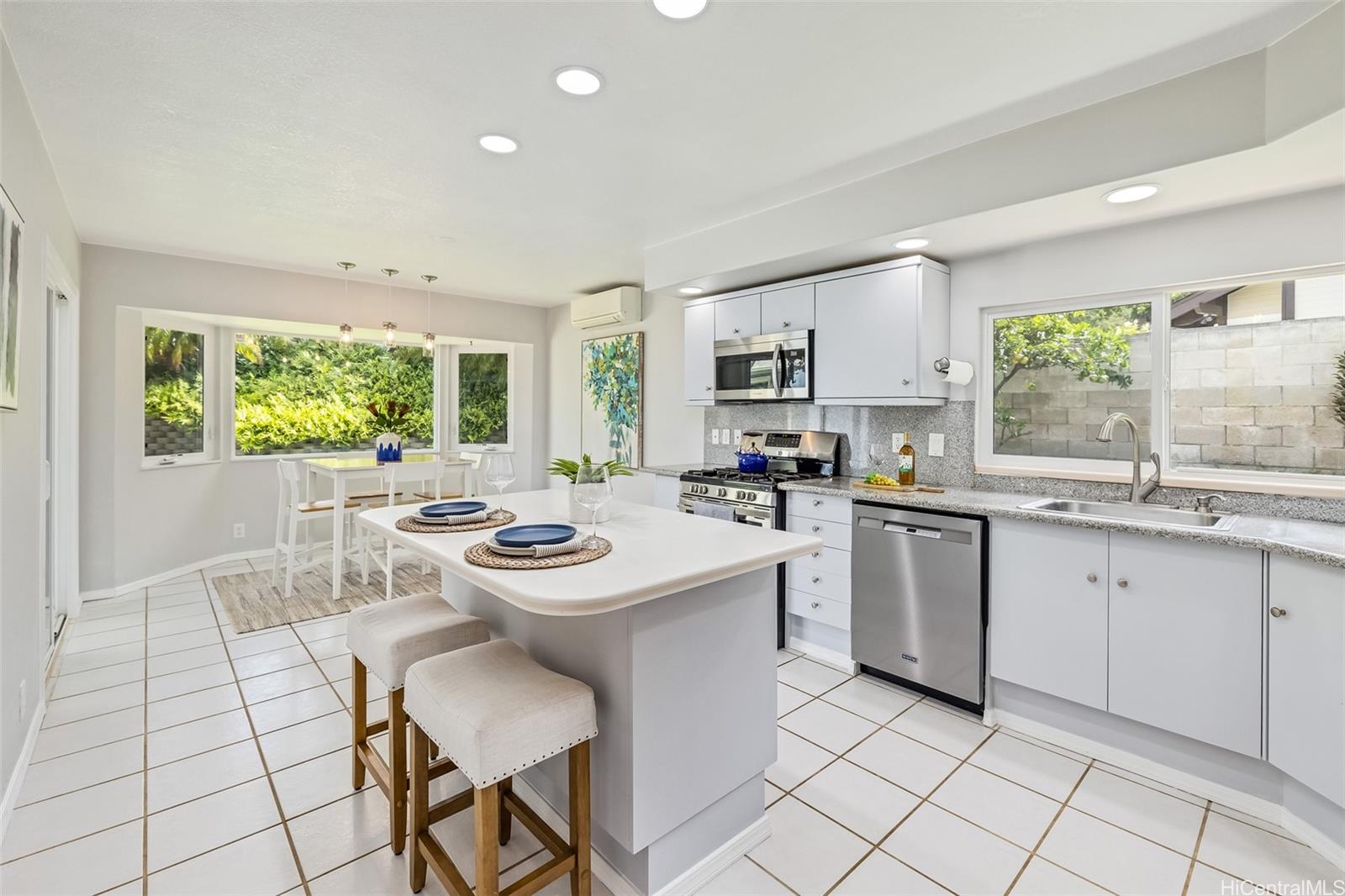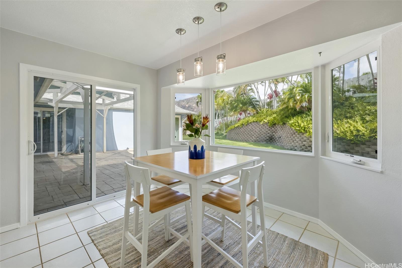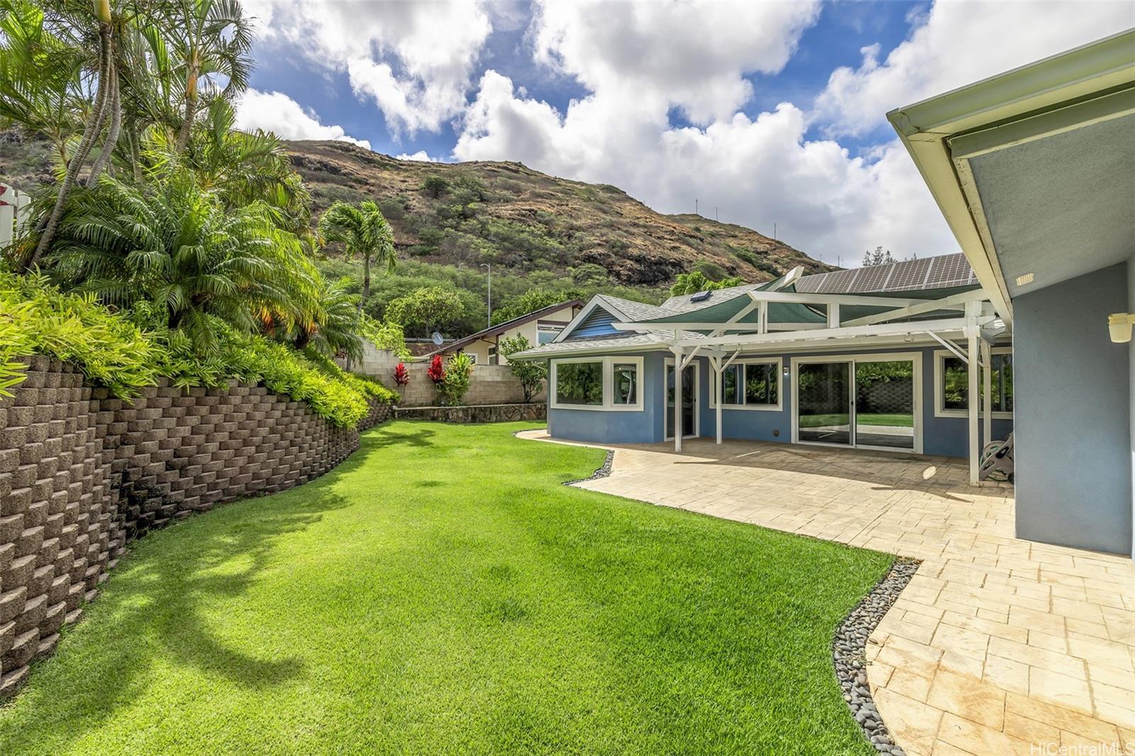 | ome and experience this Hawaii Kai Charmer! A beautiful three-bedroom, two 1/2-bathroom home in the sought-after Kealaula Kai neighborhood. Its many custom built-in features create a unique, welcoming space for accessible island living. The wood design elements throughout add warmth and originality. The primary bedroom boasts a custom cabinet-built en suite full bath with a large shower featuring two shower heads. Vaulted ceilings and large windows fill the room with natural light, creating a bright and inviting atmosphere. The large kitchen dining area provides easy access to the landscaped backyard, perfect for indoor/outdoor dining. The backyard's terraced area showcases mature landscaping and manicured grass. Despite its 1600 sq ft. footprint, the house feels spacious and accommodating. Enjoy the benefits of 14 owned PV panels with a transferable Net Metering agreement and a solar water heater. The property also includes a full two-car garage and ample driveway space for guest parking. Ideally located near schools, shopping, dining, and the Hawaii Kai Marina, this home is a must-see. Don't miss your chance to own this beautiful property. | What will it cost to own? | |