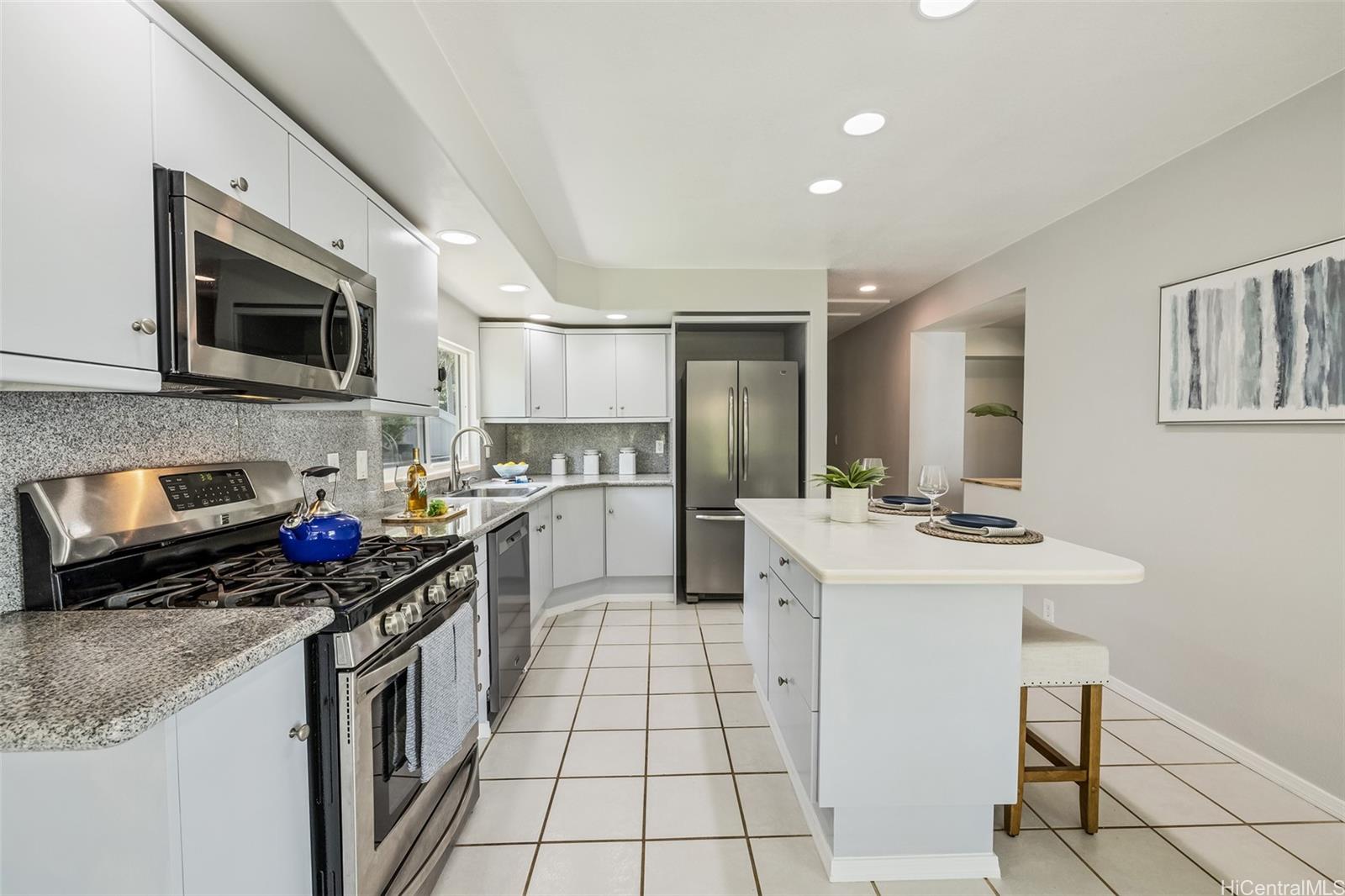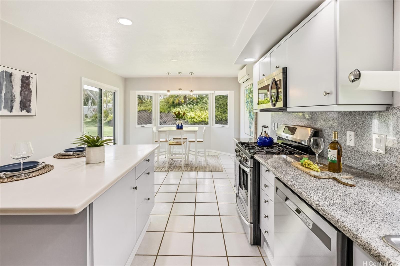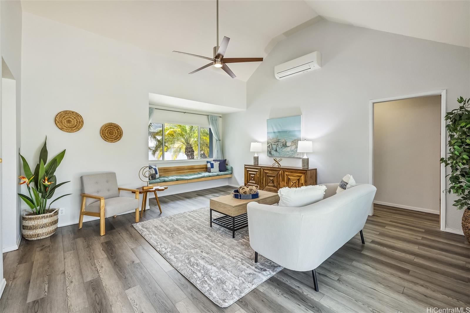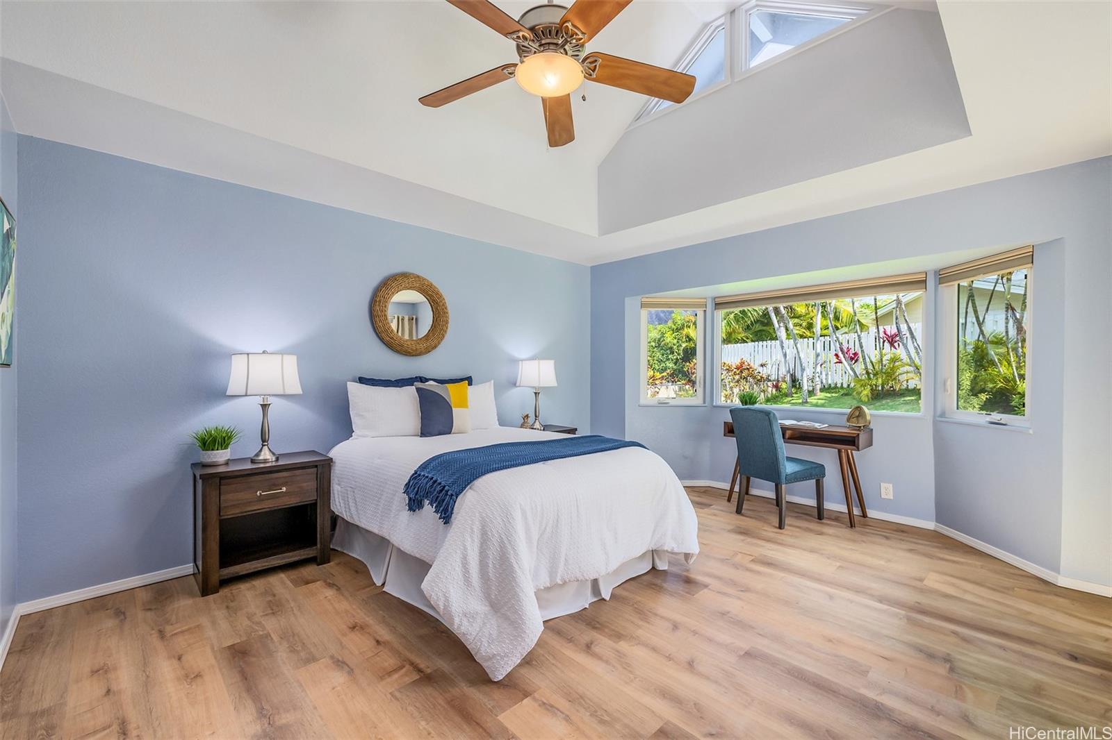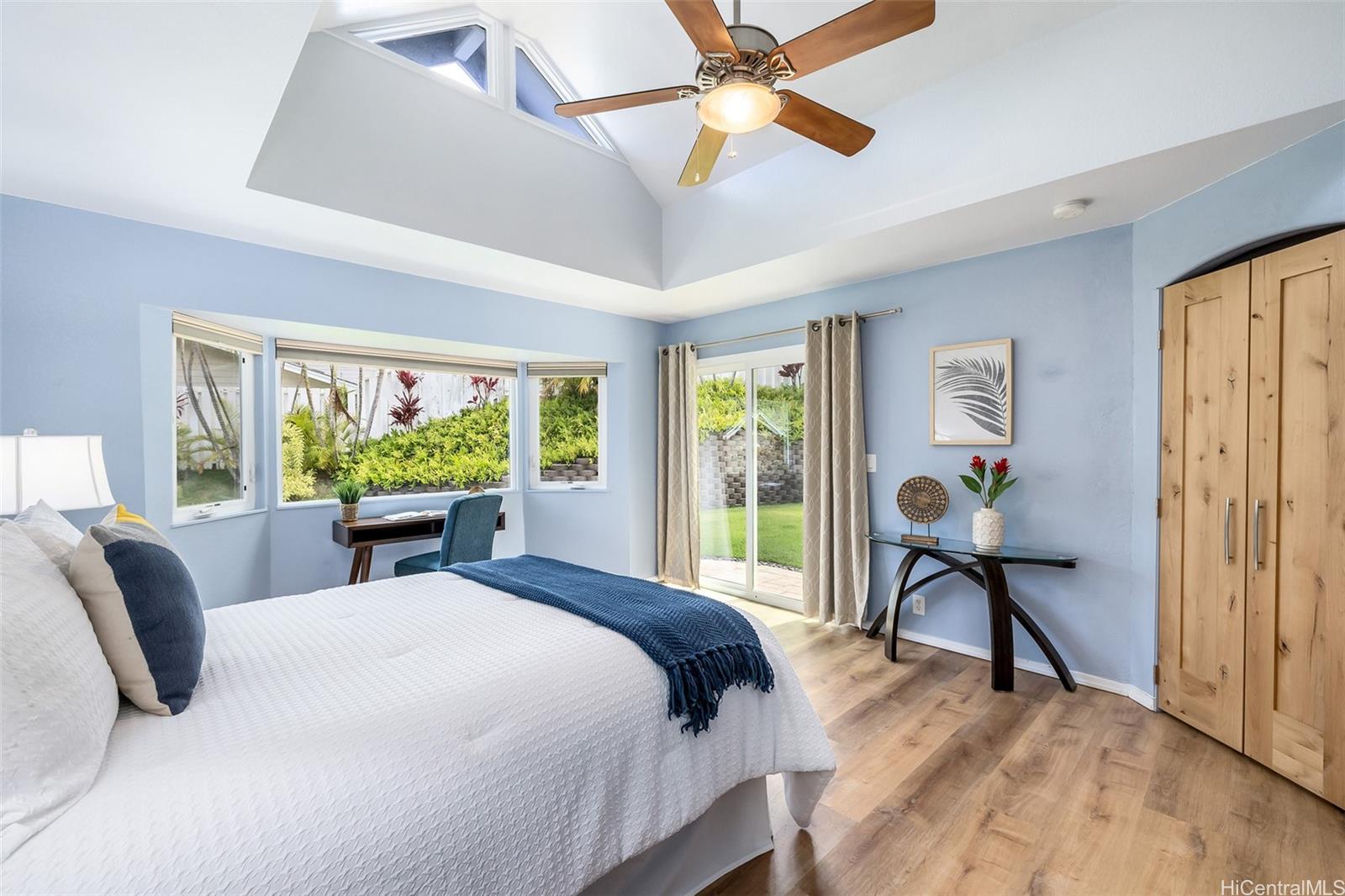 | ome and experience this Hawaii Kai Charmer! A beautiful three-bedroom, two 1/2-bathroom home in the sought-after Kealaula Kai neighborhood. Its many custom built-in features create a unique, welcoming space for accessible island living. The wood design elements throughout add warmth and originality. The primary bedroom boasts a custom cabinet-built en suite full bath with a large shower featuring two shower heads. Vaulted ceilings and large windows fill the room with natural light, creating a bright and inviting atmosphere. The large kitchen dining area provides easy access to the landscaped backyard, perfect for indoor/outdoor dining. The backyard's terraced area showcases mature landscaping and manicured grass. Despite its 1600 sq ft. footprint, the house feels spacious and accommodating. Enjoy the benefits of 14 owned PV panels with a transferable Net Metering agreement and a solar water heater. The property also includes a full two-car garage and ample driveway space for guest parking. Ideally located near schools, shopping, dining, and the Hawaii Kai Marina, this home is a must-see. Don't miss your chance to own this beautiful property. | What will it cost to own? | |