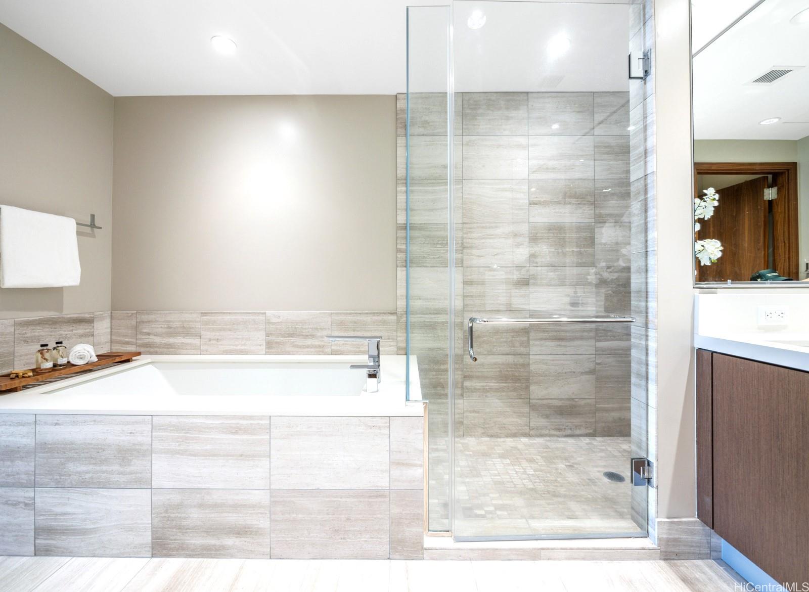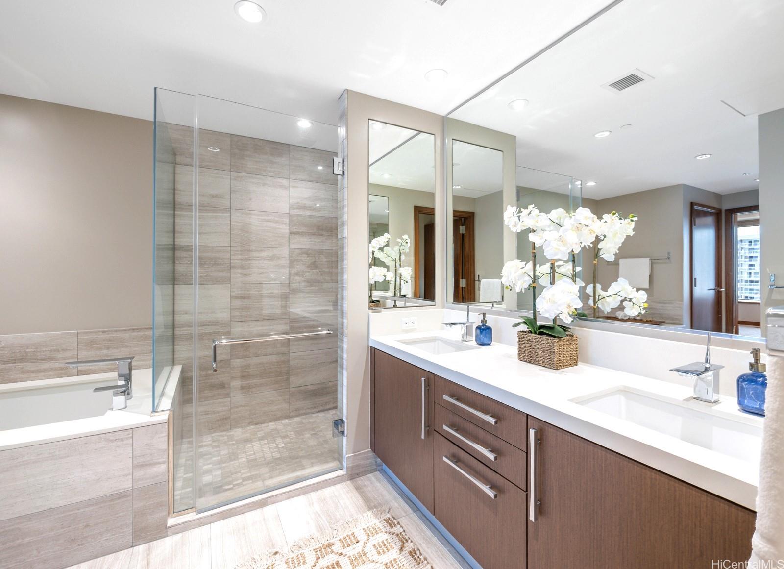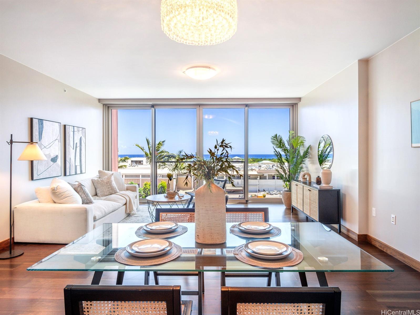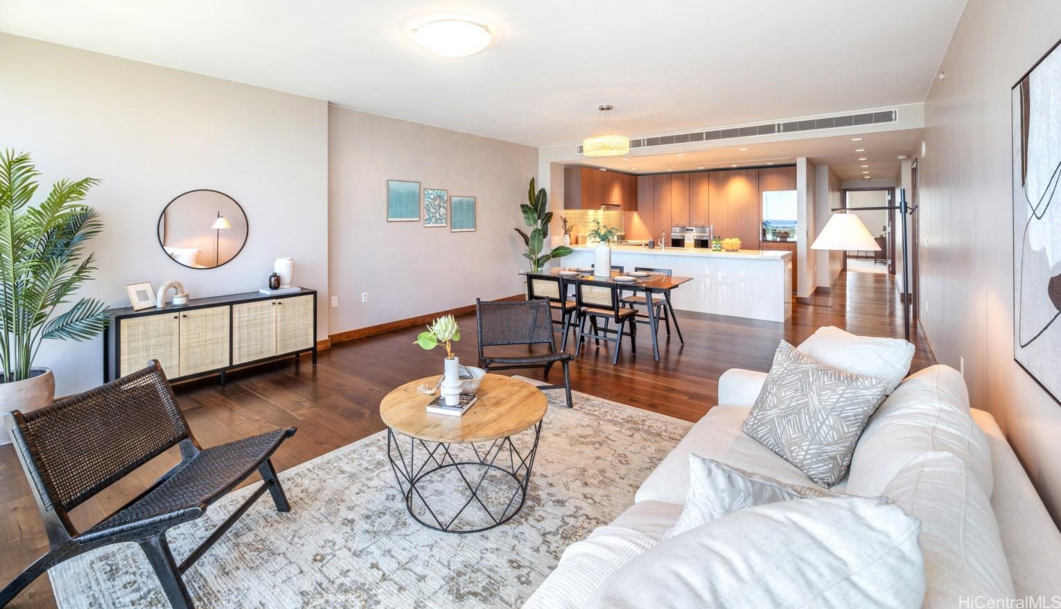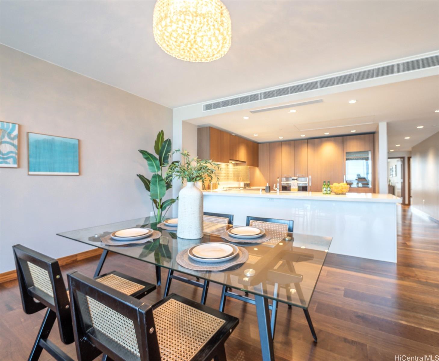 EST VALUE IN THE BUILDING - This preferred 3Bed/3Bath unit has been meticulously maintained and features both mountain to ocean views, open floorplan, wood floors, high-end appliances, floor to ceiling windows, designer kitchen & bathrooms, European cabinets, large walk-in closet, double vanity sinks, Central AC, separate laundry room, automatic blinds in every room, large wine refrigerator, gas cooktop, resort like showers, high ceilings, ample storage, secured parking, & much more. Enjoy One Ala Moana unparalleled five-star amenities, concierge services, heated pools, kids pool, BBQ cabanas, lush landscaping, fire pit, conference room, gym, movie theater, sauna, massage room, private dining rooms, kids' playground, dog park, catering kitchen, pet friendly, guest parking, and is conveniently located at Ala Moana Shopping Center and just steps from Ala Moana Beach Park, Downtown Honolulu, Waikiki, Kakaako, & Friday fireworks. Don't miss this opportunity!