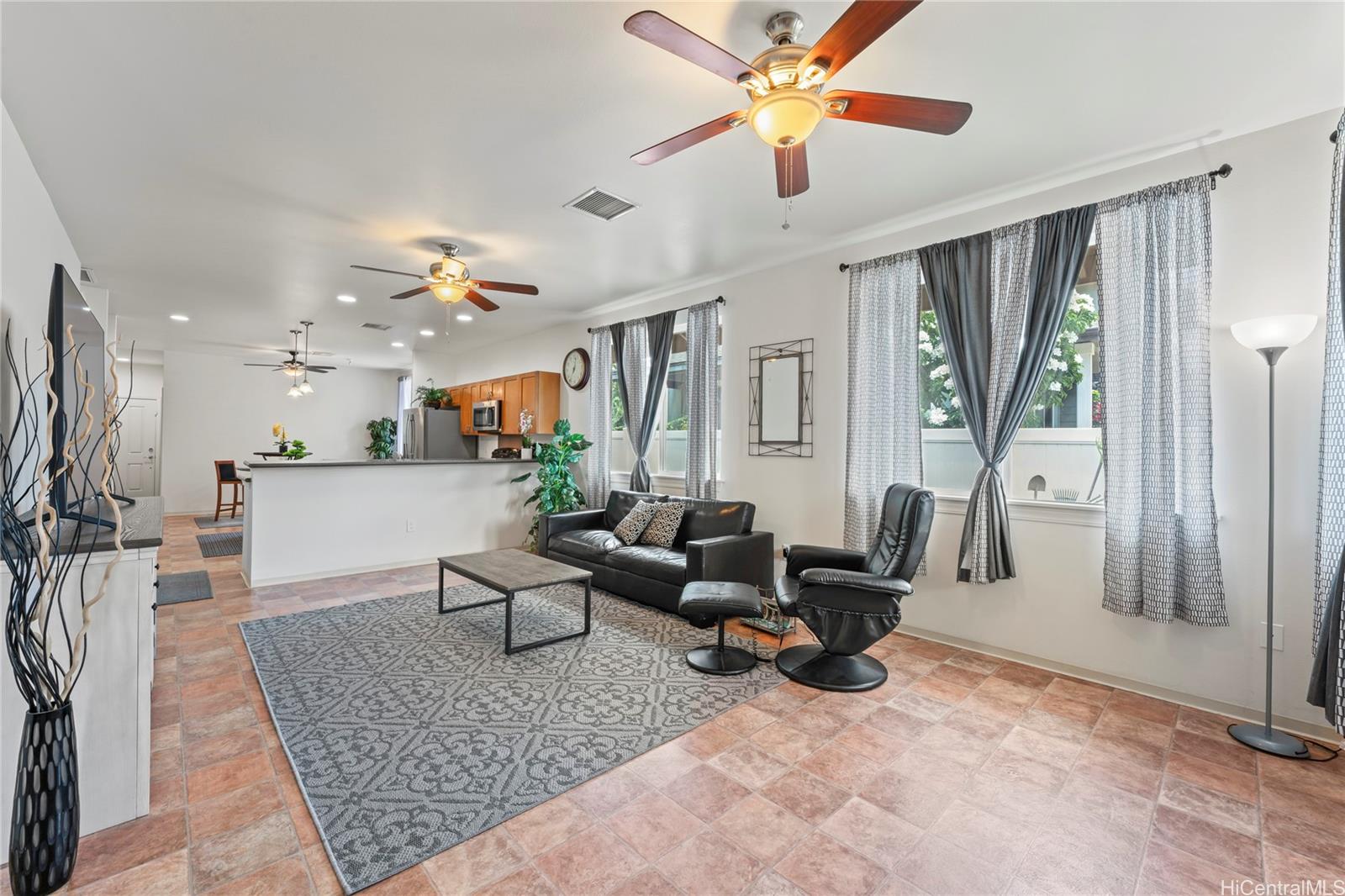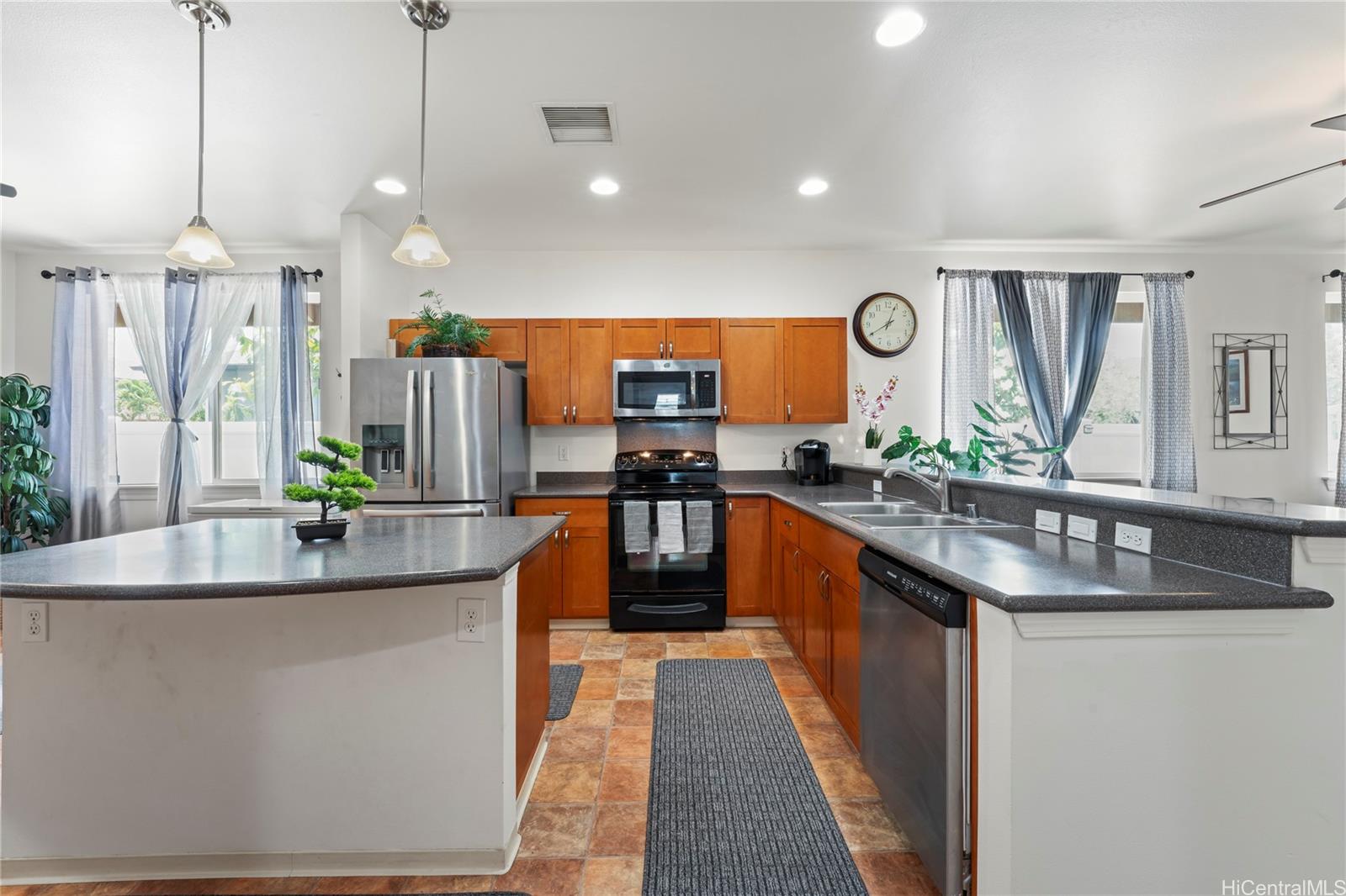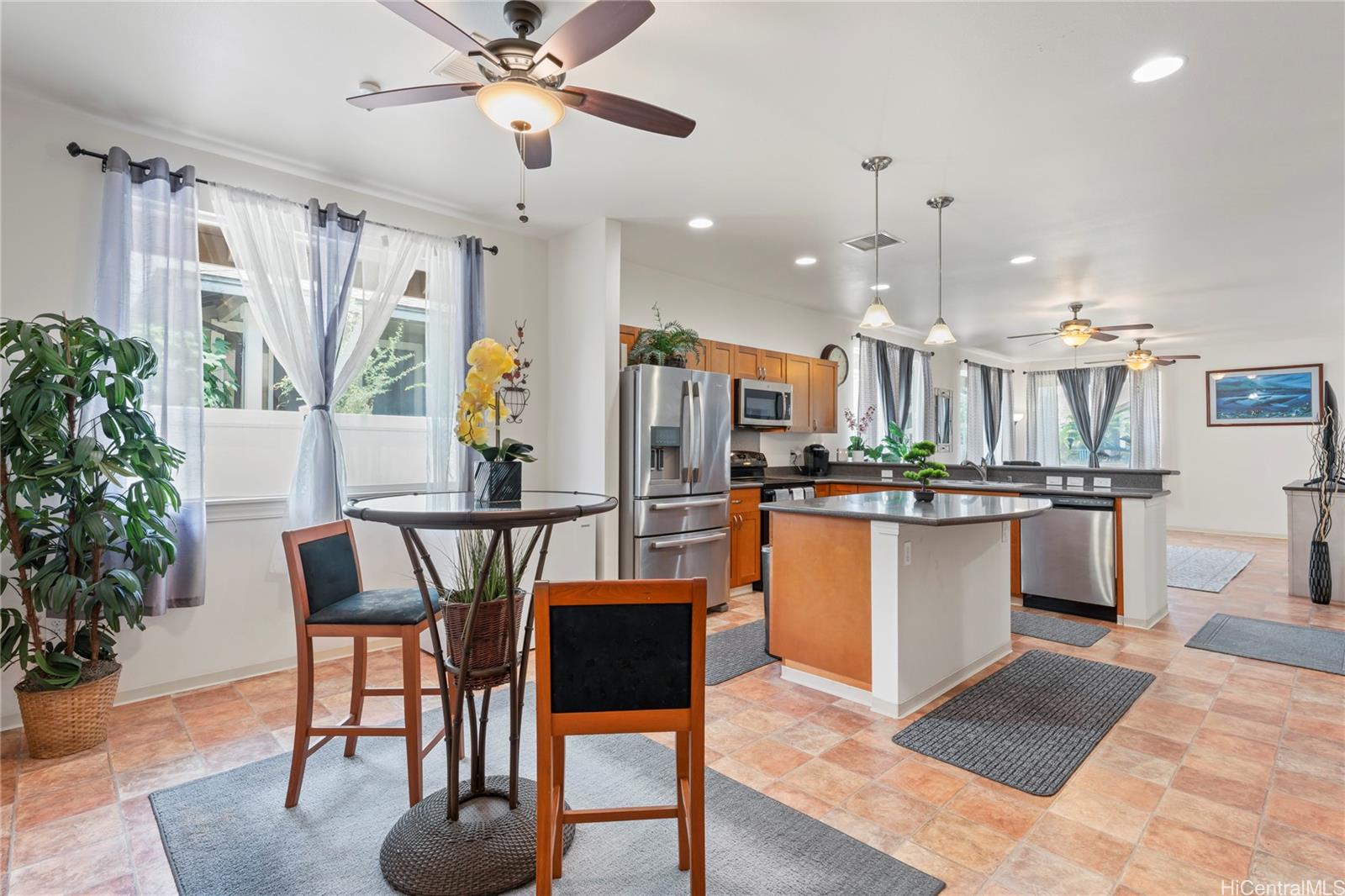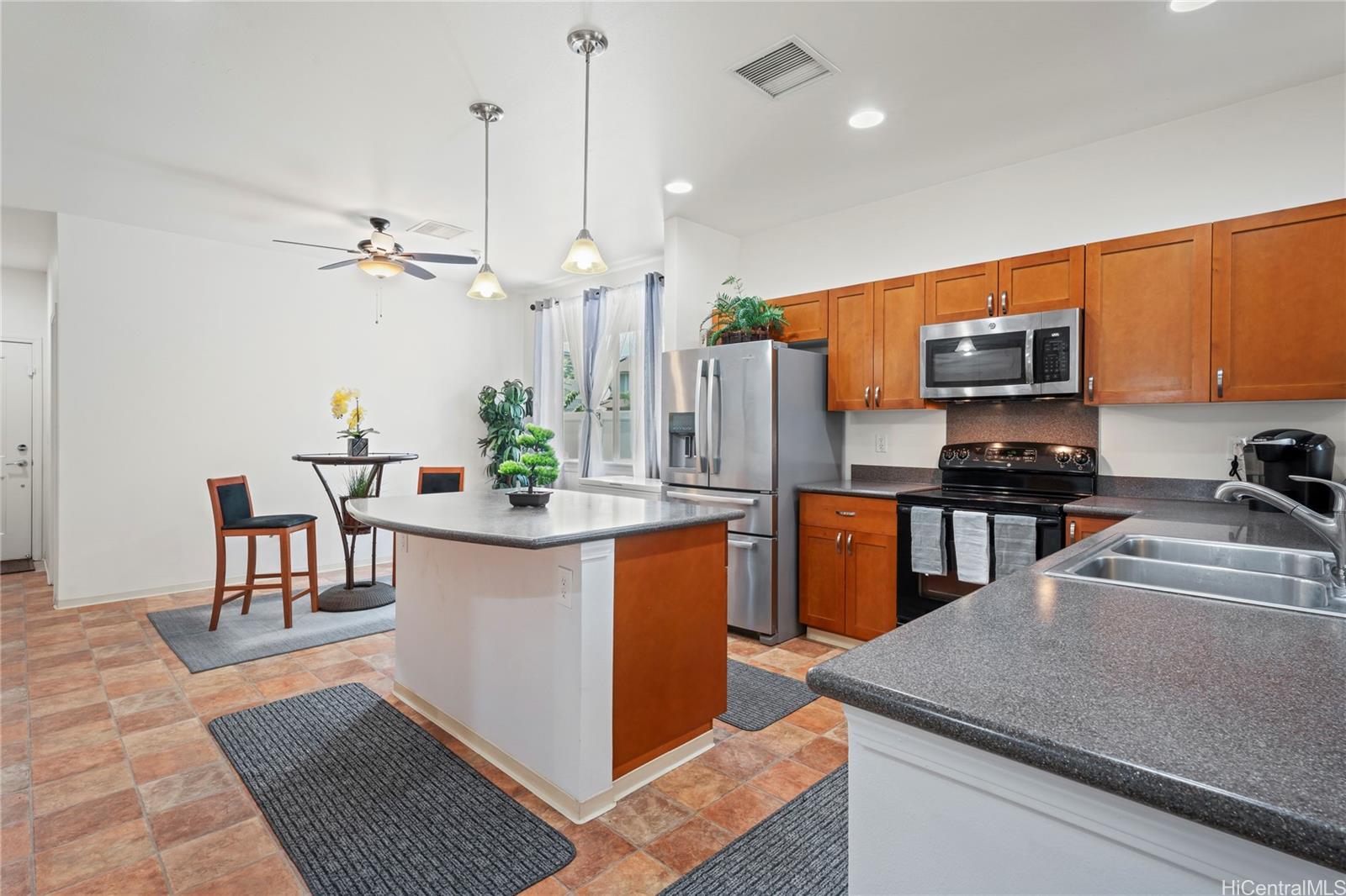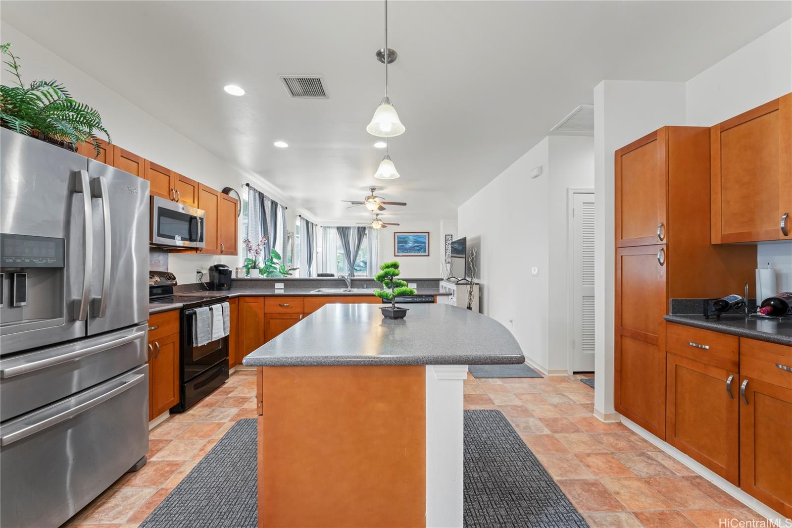 | his single-level home features 4 bedrooms, high ceilings, and an open floor concept that makes the home feel even more spacious. This home has been thoughtfully maintained including a new AC system installed just two months ago. This home features a modern kitchen island and a seamless flow from the living area to the kitchen, perfect for gatherings and entertainment. Relax on the front lanai or in the fenced yard great for pets. The home's location is extremely convenient with schools, shopping centers, and restaurants nearby, making everyday errands a breeze. The La Hiki at Mehana community features a host of amenities take your furry friend to the nearby dog park and when it's time to cool off, head to the swimming pool or beaches. The home has a brand new AC system, and the kitchen appliances - refrigerator, microwave, and dishwasher - were updated by the homeowner just two years ago. With a professionally installed fence providing both security and privacy. This property offers all the modern upgrades needed to provide a comfortable and enjoyable living. Come see it today! | What will it cost to own? | |