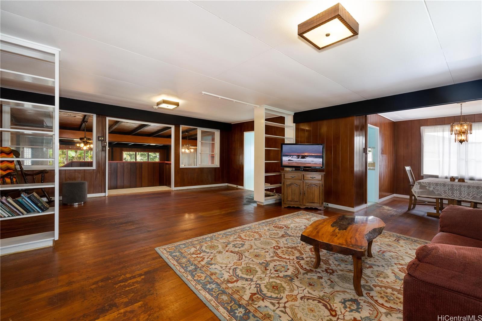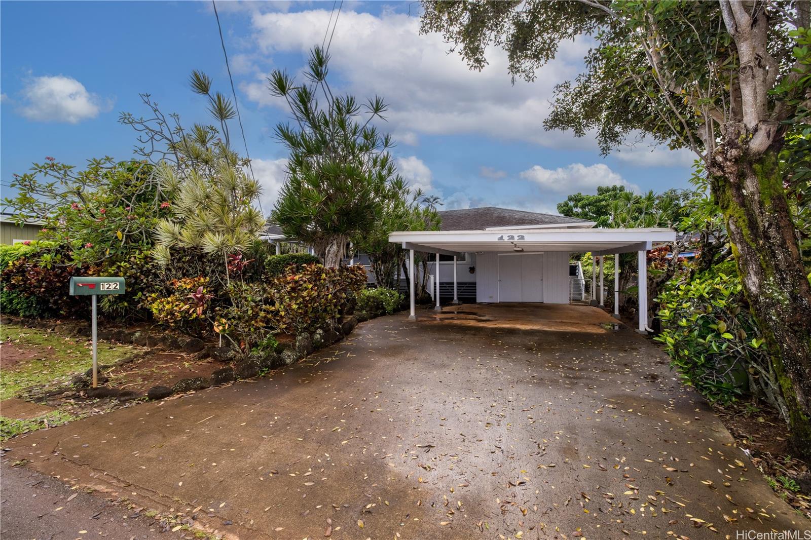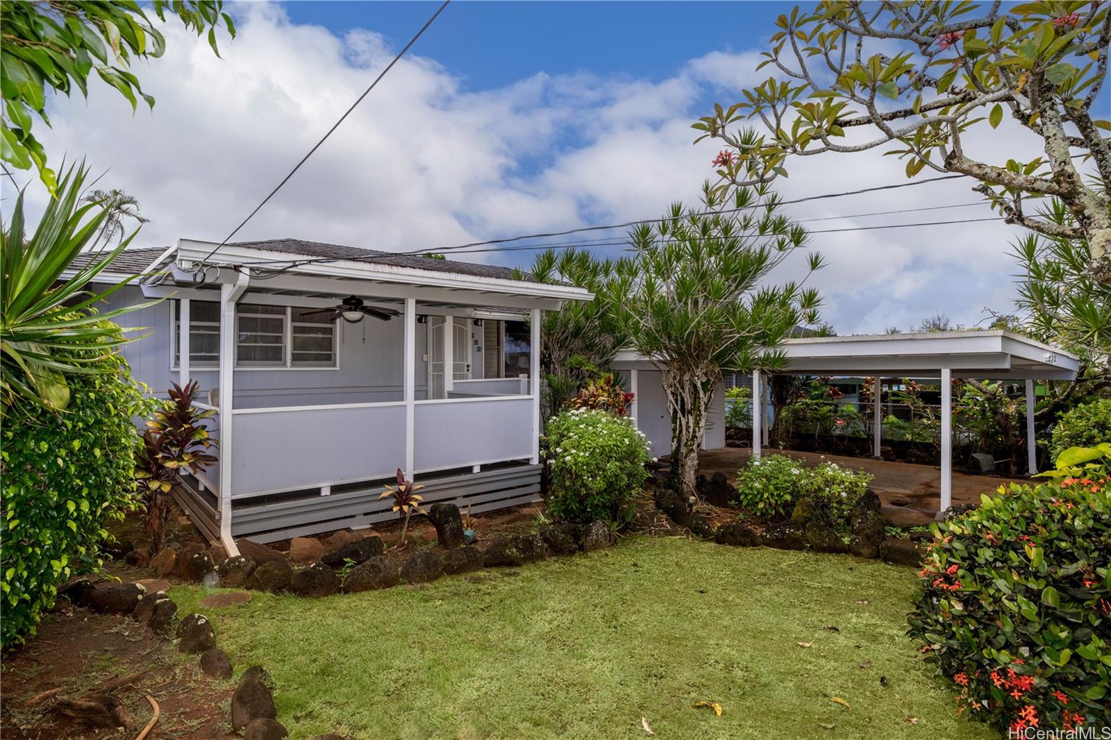 xperience a touch of yesteryear as you arrive at a beautiful carport drive overlooking a spacious front lawn, the size of which is just not seen often on Oahu. Entry opens to an expansive living area with original hardwood floors throughout. A wonderful vintage kitchen perfect for baking, a large bonus room for games, movie nights or guests! There is a separate, indoor laundry room area and plenty of storage throughout. Additional outdoor storage room behind the carport and a spacious backyard with mature trees. The property is optimally located in the historic Wahiawa town close to many shops and restaurants as well as Schofield Barracks. Historic Haleiwa town is only 20 minutes away and the big box stores in Mililani Town are just 12 minutes away. Based on current ADU standards this property is eligible for an additional 800 square foot unit rental unit! Buyer should complete due diligence to ensure architectural plans meet CC&Rs.