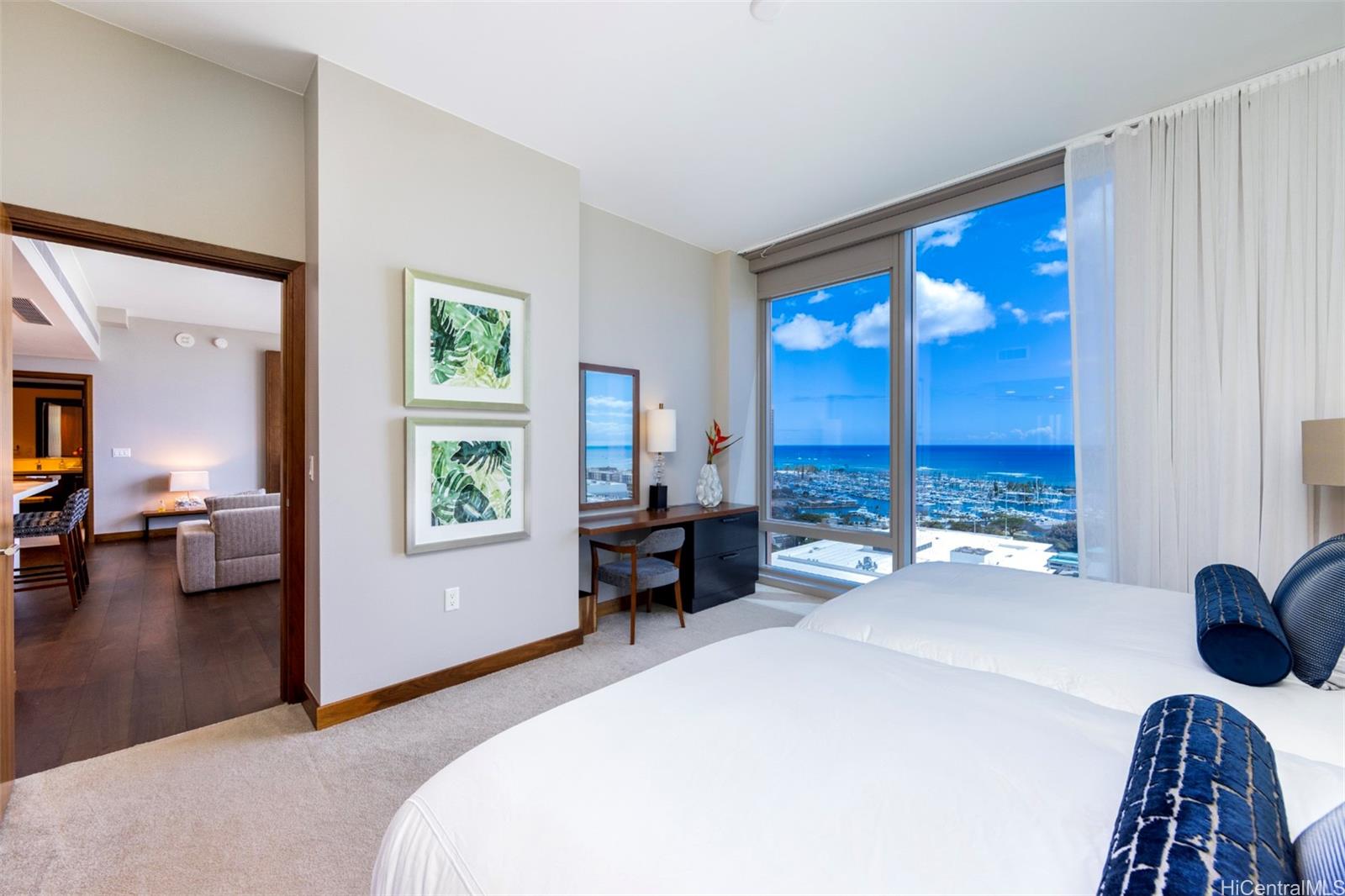 |  |  |  elcome home to one of Honolulu's most prestigious & established luxury residences, ONE Ala Moana. This high floor, rarely available 2 Bedroom + Den, 2.5 Bath home features 10-foot ceilings unique to only a handful of units; floor-to-ceiling windows look directly towards Ala Moana Beach Park, Ala Wai Harbor, & stunning Pacific Ocean panoramas. Inside you'll find high-end upgrades including built-in cabinetry, additional motorized shades, custom-built and professionally designed furniture and more, all sold with the unit. Bedrooms are situated at the opposite sides, adding privacy & flexibility to your lifestyle. True resort-style amenities await including an infinity-edge pool, kid's pool, & hot tub, multiple barbecue cabanas & seating areas, walking paths, a library/study, reserve-able meeting room, formal dining room, kitchen, movie theater & much more. Unrivaled location directly across from world-renowned Ala Moana Center & one block from Ala Moana Beach Park puts water sports, dining, shopping, entertainment & more just outside your doorstep. |  |  What will it cost to own? |  |  |  | MLS | Public |  |  | Condo/Townhouse | Condo | Property Type Sub Type