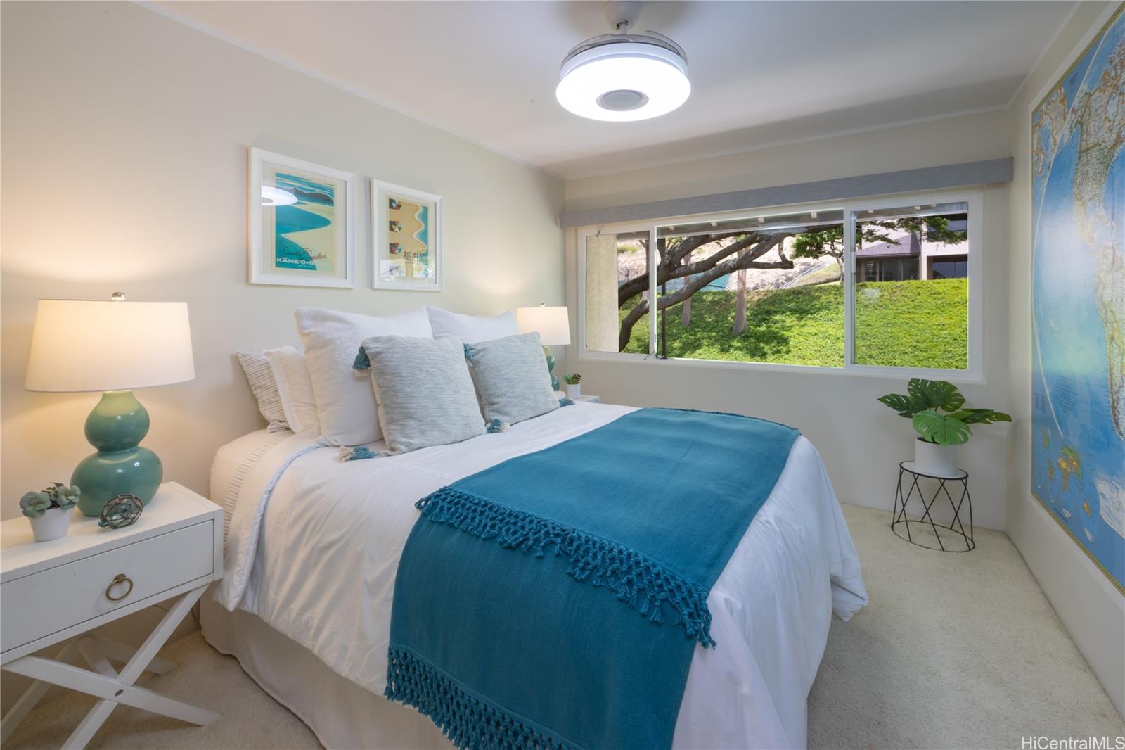 | ought after Bluestone location! This bright & airy 3 bdrm, 2.5 bath unit has vaulted high ceilings, fresh paint & tasteful upgrades throughout! Abundance of storage space inside w/ standing attic space upstairs. 2 parking spots located directly under the unit with a nice sized storage closet. Walk in closet with closet system in the primary. Gorgeous Ko'olau mountain views from both of the unit's lanais. Just outside the front door sits a giant Monkey Pod tree that helps maintain natural cool temperatures and the Windward breeze flows through the front entrance all the way to the spacious lanai on the other side of the home. The 358 building is special with its convenience of few stairs and an easy pull up to the unit loading zone. Gated entry, walking paths, tennis courts, swimming pool, hot tub, a clubhouse and guest parking are some of the great amenities Bluestone has to offer. The property landscaping stands out with the rainbow eucalyptus trees surrounding the driveways. Short distance down the road to Lanikai and Kailua beaches, Pillbox hike and into Kailua town! The Bluestone property fronts Mid Pacific Country Club, a first class golf course and private country club! | What will it cost to own? |