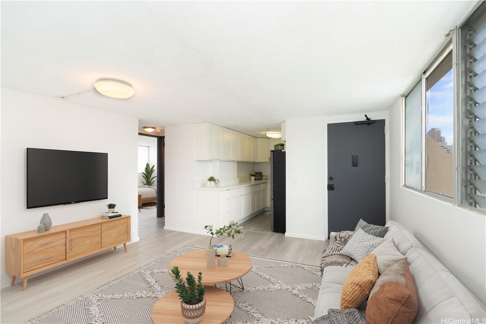 reat opportunity! Welcome to this newly renovated 2 bedrooms, 1 bathroom condo in the heart of town. New floor, new kitchen, and newer bathroom! Conveniently located near Pali Safeway/Longs Drugs, restaurants, Queen's hospital and freeway access. Washer/Dryer in unit. 1 assigned parking stall in secured parking garage. This unit come with a large rooftop area for private relaxation or storage. Easy to show and move in ready!