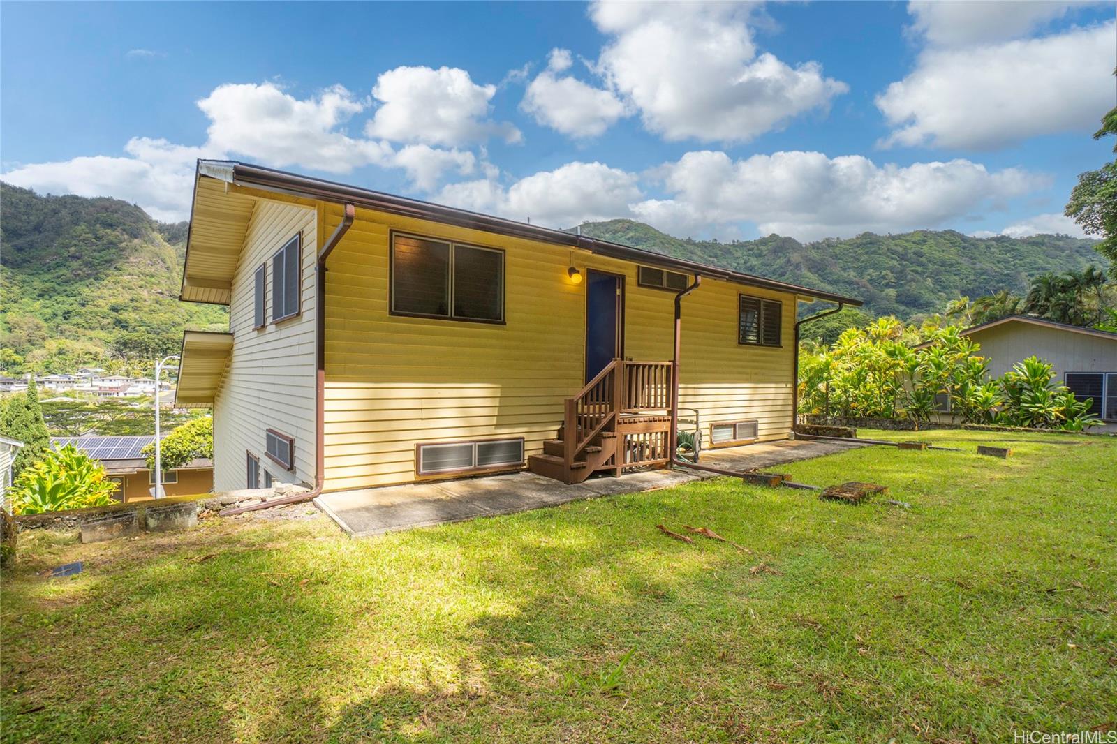 | alihi Valley home with ocean and mountain views! Lots of potential with this spacious 4 bedroom, 2 bathroom home sitting on an 8,496 sq ft terraced lot waiting for your renovation touches. Excellent location near the end of a cul-de-sac. 2 car carport on the 1st level. The main level features the kitchen, living room, dining area and half bath, plus an extra large storage room (unfinished basement). The top level is where the 4 bedrooms and 2 full bathrooms are located. Relax in your grassy backyard perfect for BBQ's and entertaining! Put this on your must see list! Some photos have been enhanced. | What will it cost to own? | |