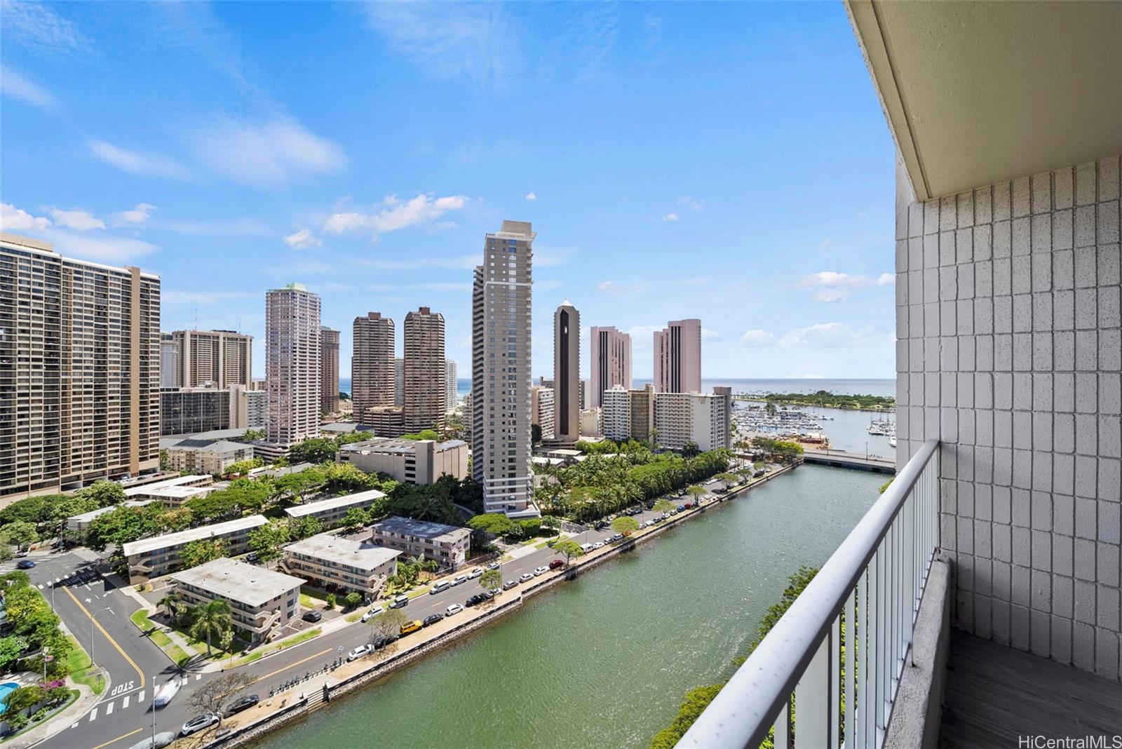 | OW - Turnkey ready, and perhaps the best unit in The Summer Palace. Fully remodeled, this corner unit has SPLIT A/C and-"Love of ownership" is clearly evident. Meticulously maintained, it has an abundance of natural light and breezy when the trades blow. You'll love the open floor plan. The updated kitchen w/ stainless steel appliances offers plenty of space to chef up a tasty meal. Enjoy dining on the covered, custom tiled lanai that offers incredible mountain, city, canal and ocean views. The bedroom is spacious and has a large closet, and the in-unit washer/dryer allows for convenient living. Other improvements are: smooth, popcorn free ceilings, upgraded electrical panel, and 2 ceiling fans. Also, the bathroom shower has beautiful custom tile. -The Summer Palace is pet friendly and located along the Ala Wai Canal. It-offers easy access to the Convention center, Magic Island, Ala Moana Mall, 24 HR Fitness, many quality restaurants, and much more. Amenities include a pool, sauna, BBQ area, secured entrance, guest parking, onsite manager and security. The AOAO dues are affordable and cover hot water, sewer, water and ELECTRICITY. Furnishings Negotiable | What will it cost to own? | |
