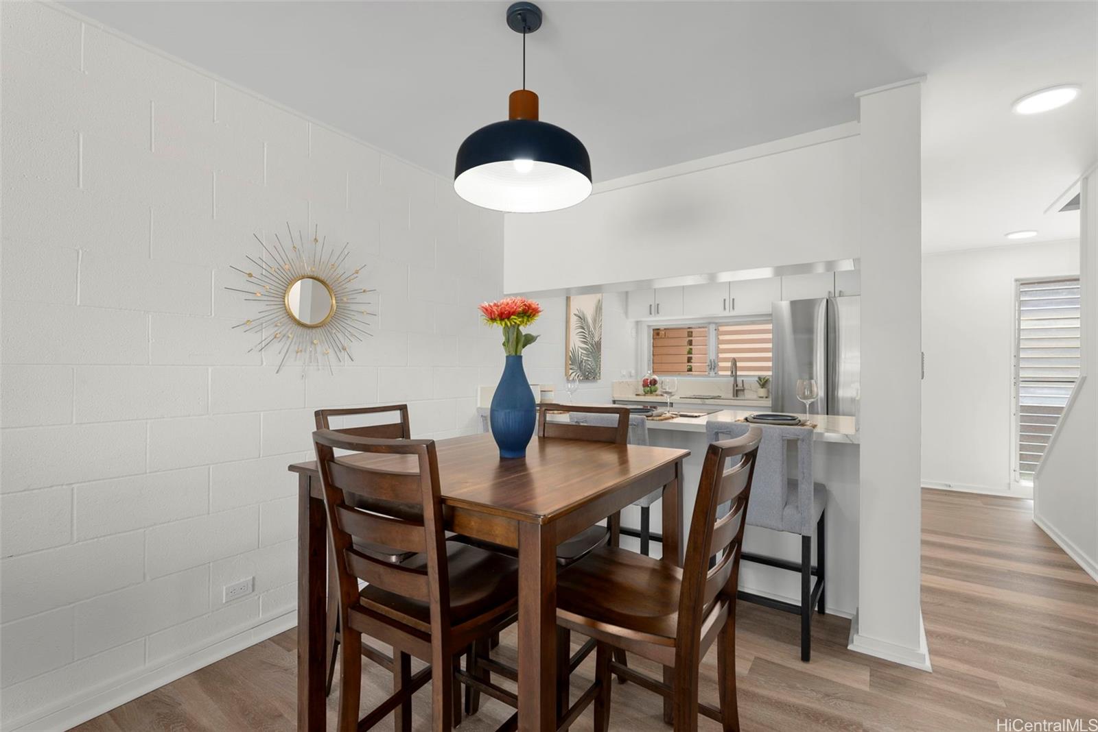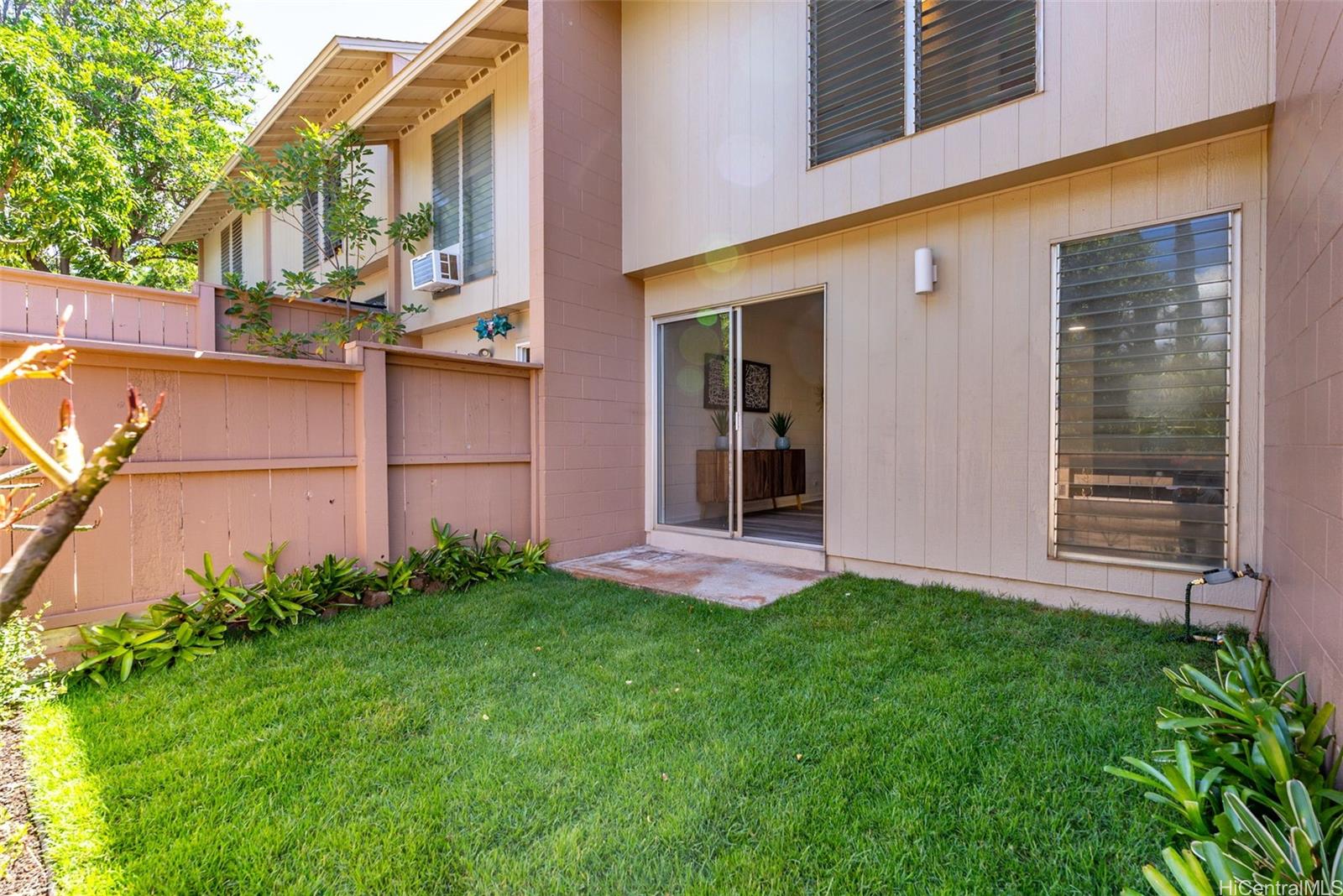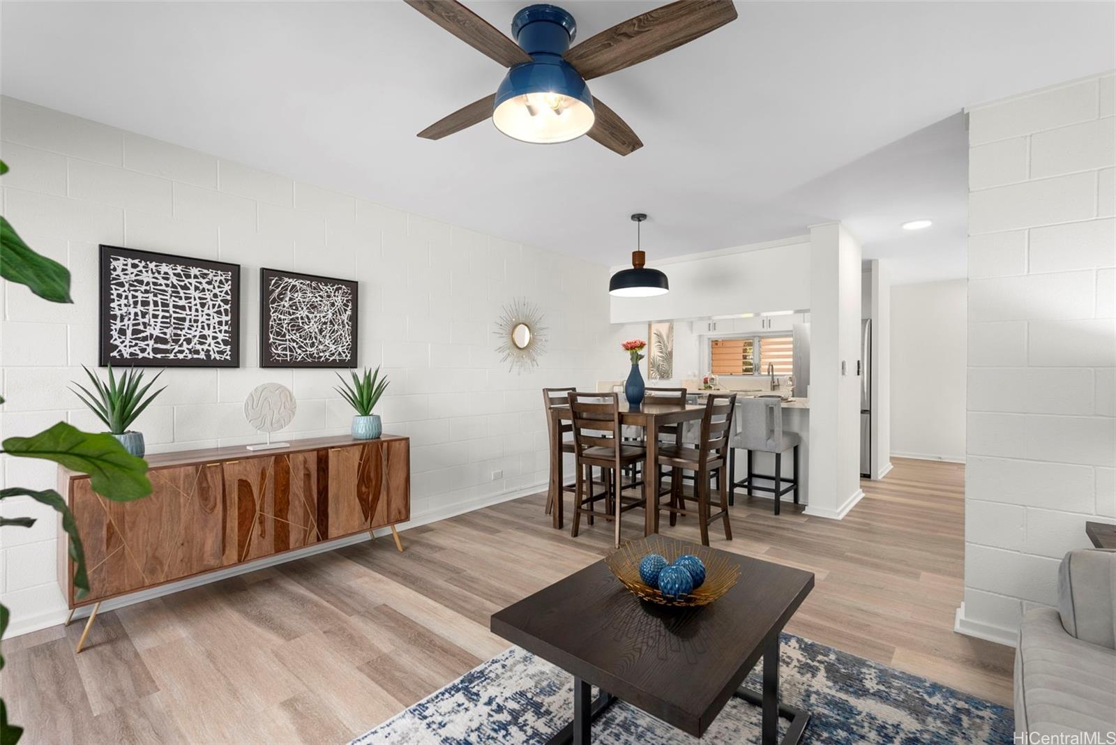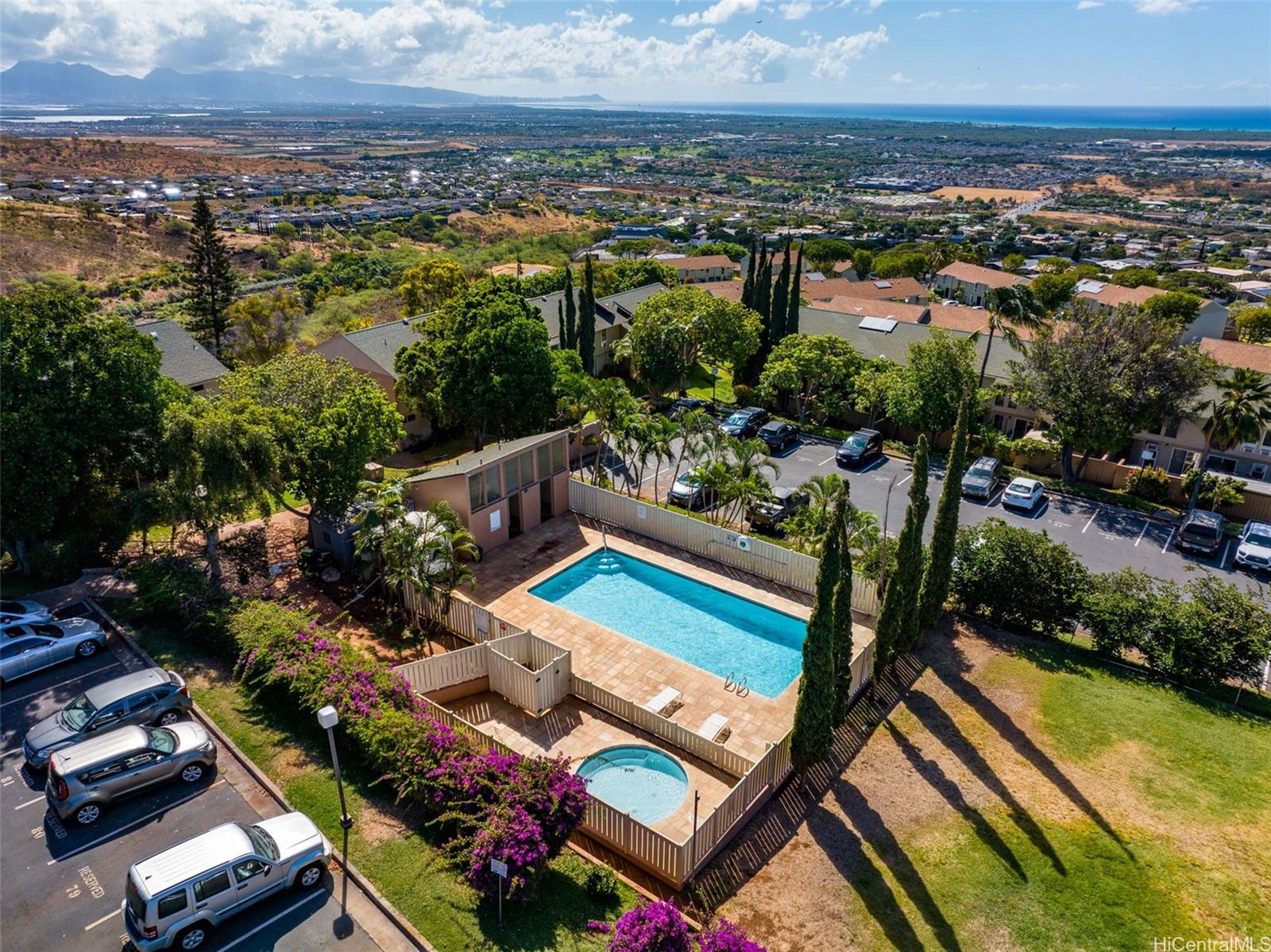 | RAND NEW, HIGH-END RENOVATIONS at this split-level 2 bed, 1 bath, and 1 pkg townhome in Makakilo! This modern renovation includes luxury vinyl plank, matte cabinets, quartz countertops, smooth ceilings, as well as new stainless-steel appliances. The kitchen flows nicely into the dining and living space, while still maximizing storage in the kitchen. Sliding doors from your living space flow out into a newly sodded enclosed yard space, perfect for entertaining, for kids, or for pets! Every renovation and fixture has been thoughtfully chosen, you won't want to miss this! The split-level nature of this unit provides extra privacy with no one else above or below you. Makakilo Gardens is an excellent complex with on-site resident manager, pool, & $.56/sq ft maintenance fees! | What will it cost to own? | |