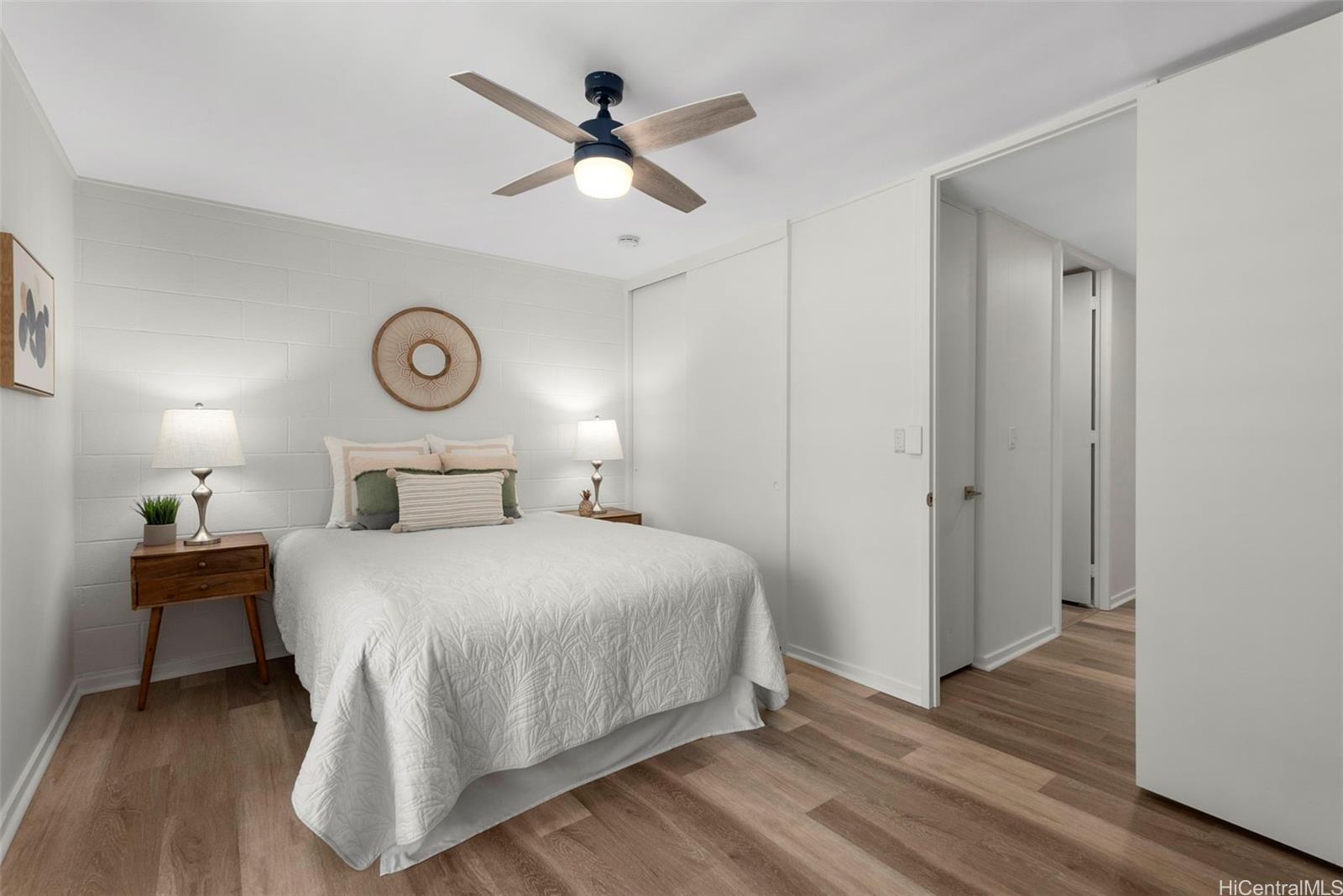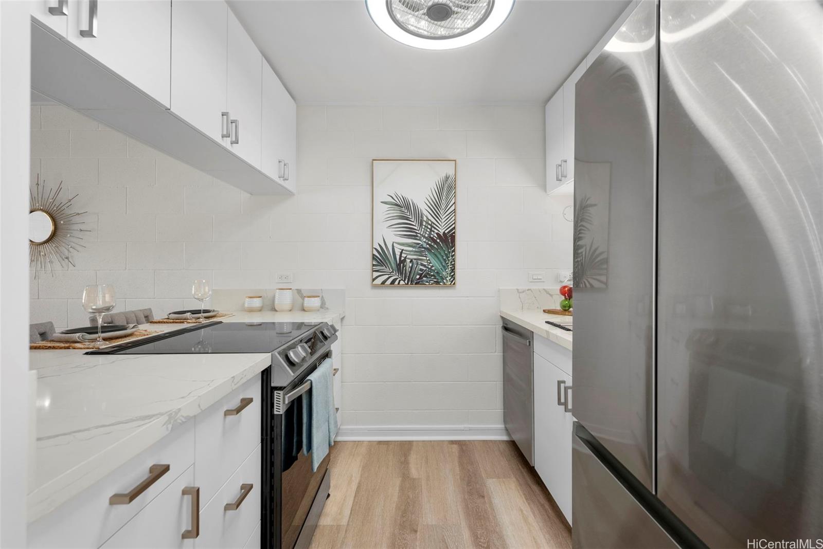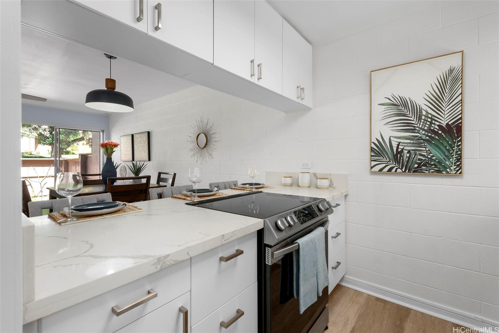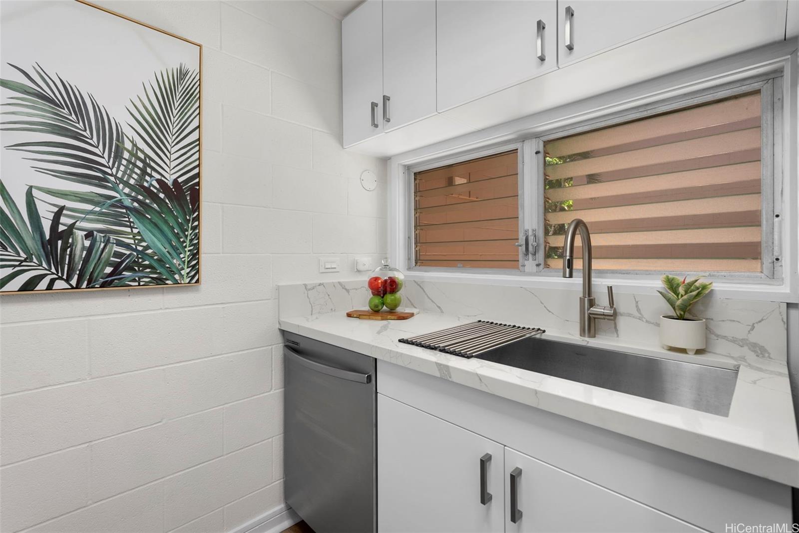 | RAND NEW, HIGH-END RENOVATIONS at this split-level 2 bed, 1 bath, and 1 pkg townhome in Makakilo! This modern renovation includes luxury vinyl plank, matte cabinets, quartz countertops, smooth ceilings, as well as new stainless-steel appliances. The kitchen flows nicely into the dining and living space, while still maximizing storage in the kitchen. Sliding doors from your living space flow out into a newly sodded enclosed yard space, perfect for entertaining, for kids, or for pets! Every renovation and fixture has been thoughtfully chosen, you won't want to miss this! The split-level nature of this unit provides extra privacy with no one else above or below you. Makakilo Gardens is an excellent complex with on-site resident manager, pool, & $.56/sq ft maintenance fees! | What will it cost to own? | |