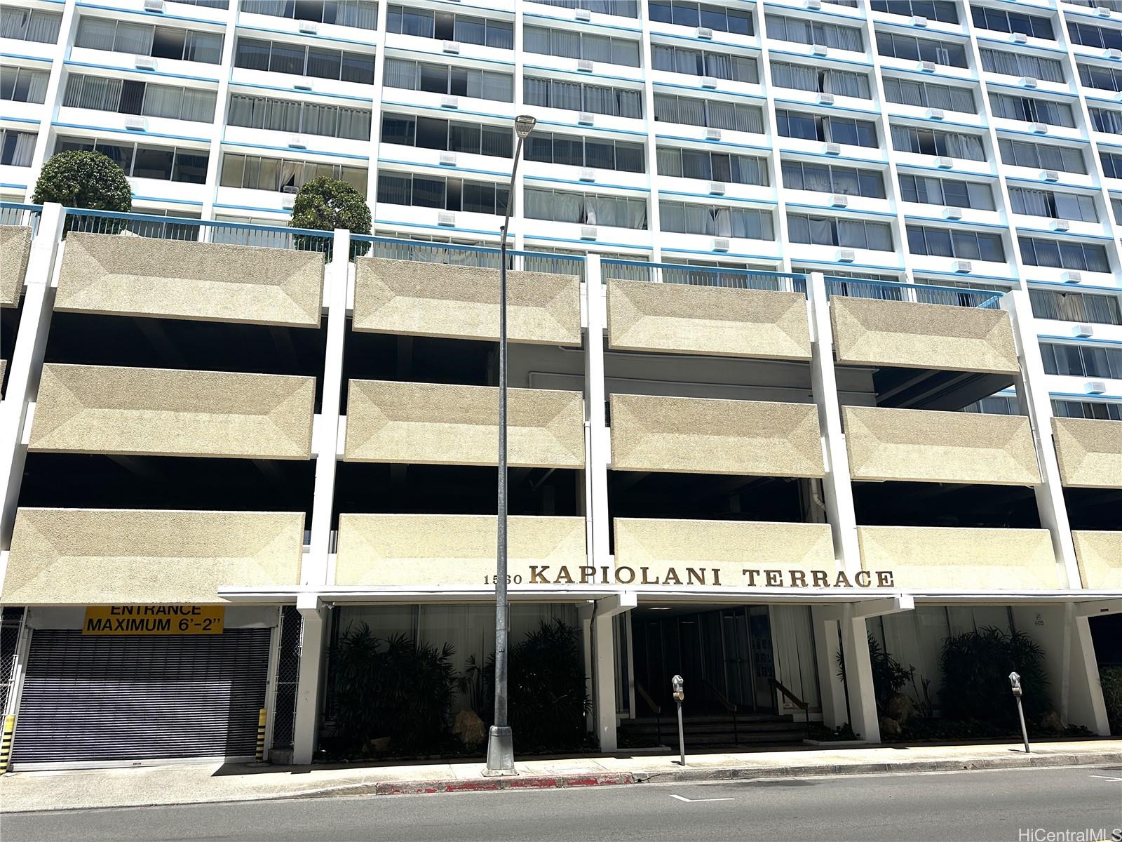 | | Sold price | | Fee Simple | Fee Simple | Tenure | | No | | Fractional | | 1973 | 1973 1973 | Year built | | na | | Conversion | | 0 na | | Remodeled | | 10 % | Biennial Reg, § 6. | Owner Occupancy | $ 0 $ 76 $ 348 $ 424 Includes: Special Assessment Other Common Expenses Sewer Water | | AOAO fee AOAO other Maint fee AOAO total fees | | 15 | 15 | Floor | | City | | View | | Land Court | | Recorded | | High Density Apt Mixed | AMX-3 | Zoning | | Zone - X | | Flood | | na | | Restrictions | | Above Average | | Condition | | Odd# Unit | | Features | | Vinyl | | Flooring | AC Window Unit Range Hood Refrigerator | | Inclusions | | na | | Exclusions | | Key | 0.00 | Security | Community Laundry Pool Recreation Area Resident Manager Trash Chute | | Amenities | | Other | | Frontage | | High-Rise 7+ Stories | Condo 17 Stories 266 Units | Architecture | | na | | Model | | Kapiolani Terrace | Skyscraper | Concrete Masonry/Stucco Slab | | Materials | | 15-20 | | StoriesType | | Disclosure Stmt | | Disclosures | | A-66 | | Parking stall ID  | | | | | | | | 0 | 298 | Public Report | | Assigned | | Parking | | 0 | Guest parking | | 3 | Passenger 3 Freight 0 | Elevators | | na | | AOAO Name | | na | | AOAO Ph | | Hawaiian Properties | Hawaiian Properties Ltd | Management Co Name | | 808-539-9777 | | Management Co Ph | | Conventional | | Buyer Financing | | Honolulu Homeloans Inc | 1st Mortgagor | | 100,000 | 1st Mortgage | | na | 2nd Mortgagor | | na | 2nd Mortgage | | No/na | | Foreclosure/Case# | | 2023 | 2020 | Property tax year | | $ 29,000 | $ 26,800 | Land assessed | | $ 246,300 | $ 234,900 | Building assessed | | $ 0 | $ 0 | Home owner exemption | | $ 275,300 | $ 261,700 | Total assessed RPAD | | $ 80 | $ 76 | Tax per month rates | | 0 | | Total rent | | | Building Permits | At Closing Subject to Rental Lease | | Possession | | None | | Special | Cash Conventional | | Financing | | na | | Furnished | | No | | New development | | Monthly | Cost to own estimate: | | $ 80 | Real Property Tax | | $ 424 | Association Fee | | $ 0 | Lease Rent | | $ 504 | Cost to own (ex Mortgage, Ins & Elec) | | 9/11/2023 | | Active | | 9/11/2023 | | Price change | | na | | Continue to show | | na | | Pending | | na | | Temp withdrawn | | na | | Back on market | | na | | Withdrawn | | 10/30/2023 | | Off market | | 10/30/2023 | | Status change | | na | | Advertise | | na | | Auction | | Locations LLC | Listing Brokerage Firm | | 9/11/2023 | | Photos uploaded | | na | | Supplement Mod |