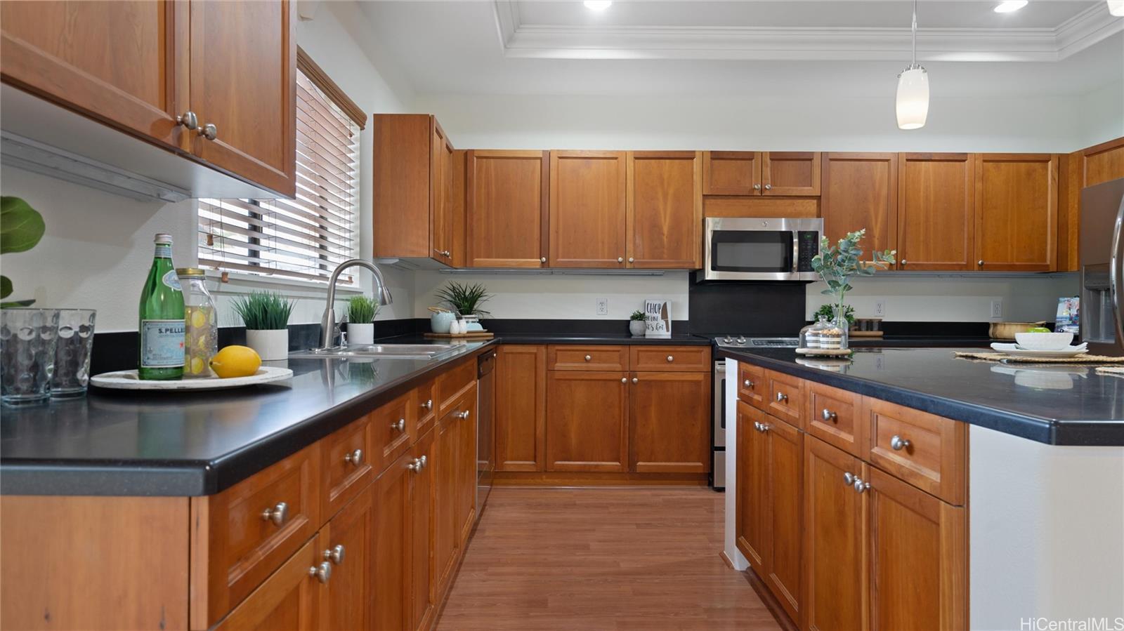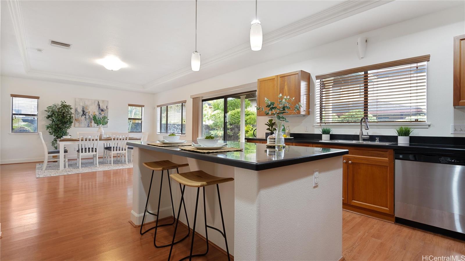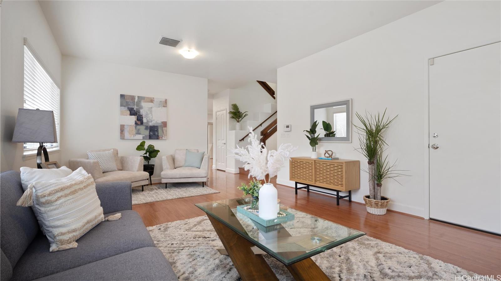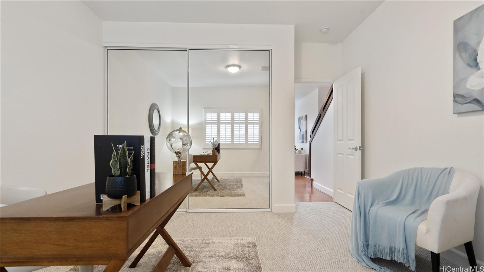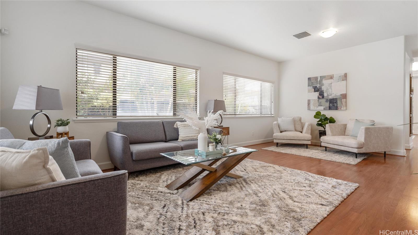 | ehold Mililani Mauka's newest American Classics (Plan 5) listing on a quiet and exclusive cul-de-sac. This newly painted, executive-style home features 4 bedrooms and 3.5 baths, with over 2,800sf of interior living space. The 1st level has a bedroom with an adjacent full bathroom, together with multiple living areas, an expansive kitchen w/island, and a huge pantry. The 2nd level with brand new carpeting is massive; featuring a spacious and comfortable family room that separates two of the three bedrooms upstairs, a dedicated laundry room with cabinets and clothes racks, and don't forget the coveted master bedroom, together with a brand new customized walk-in closet system and oversized master bathroom outfit with a shower and a tub. Additional features and benefits are; Central AC throughout, plantation shutters, beautiful landscaping, and 20 leased solar panels to reduce your electricity bill. Conveniently located near to schools, parks, shopping and a variety of dining options; call your realtor and schedule a tour of this must-see property before its too late. | What will it cost to own? | |