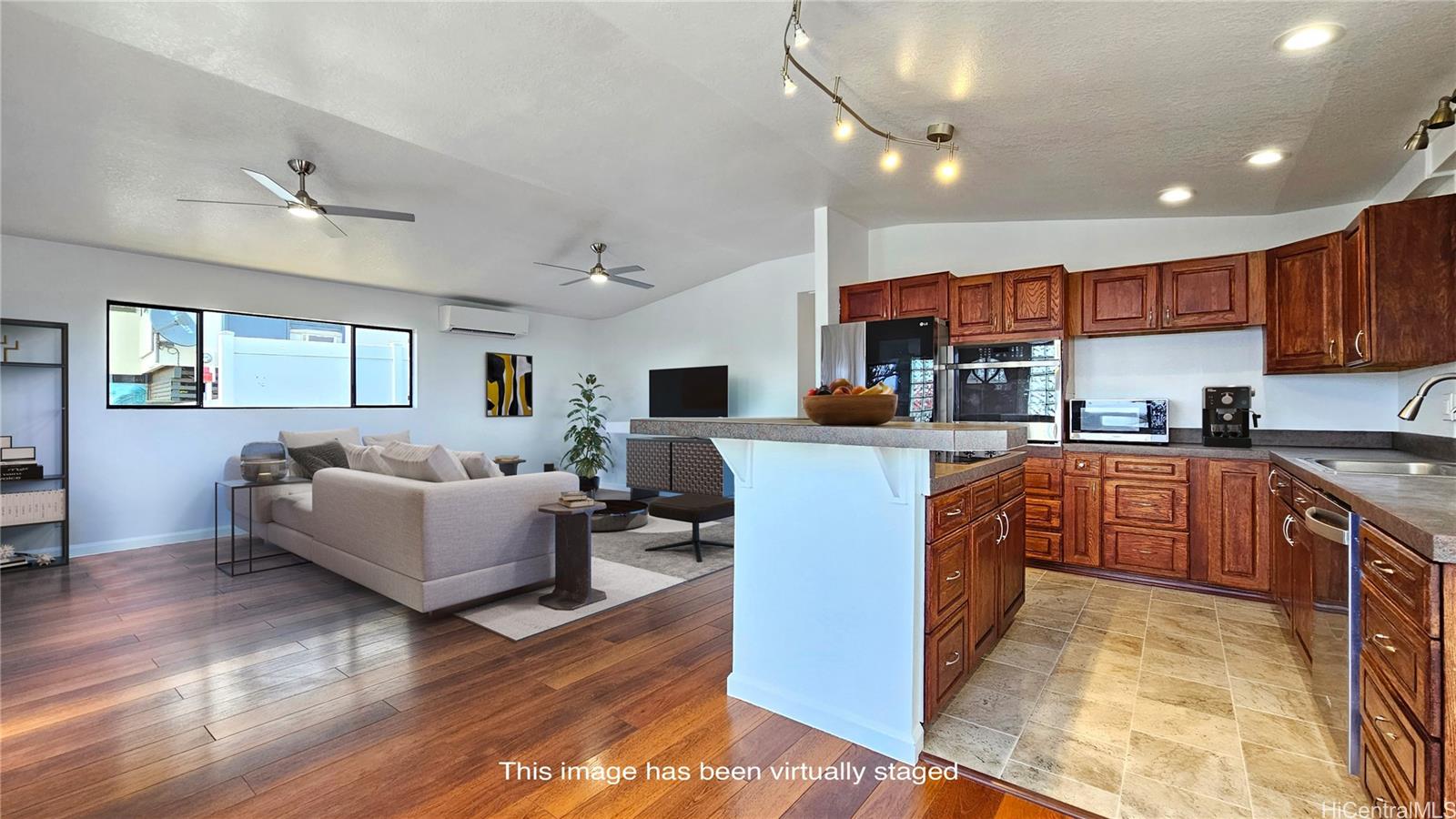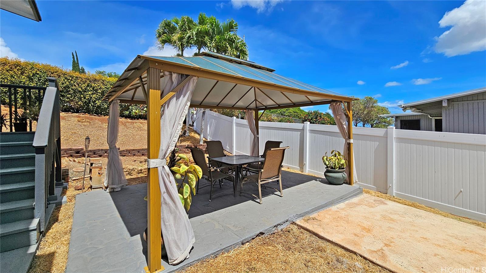 re you looking for a new home that is centrally located, dog friendly, and is completely renovated? This 3 bedroom, 2 bathroom single family home will make you feel warm and cozy as you enter into a beautiful open layout that has been completely renovated.. This unit is able to accommodate a large sofa to maximize space while still offering dining seating at the kitchen counter top. Enjoy peace and quiet in a neighborhood with no HOA, and be sure to relax in the newly built gazebo around back, or watch the sunset from the lanai. The home is equipped with solar units, a separate solar water heater, as well as split air conditioning throughout the entire home. After a long day, the jacuzzi tub in the master suite makes this home one that is perfect to relax in after a long day of work.