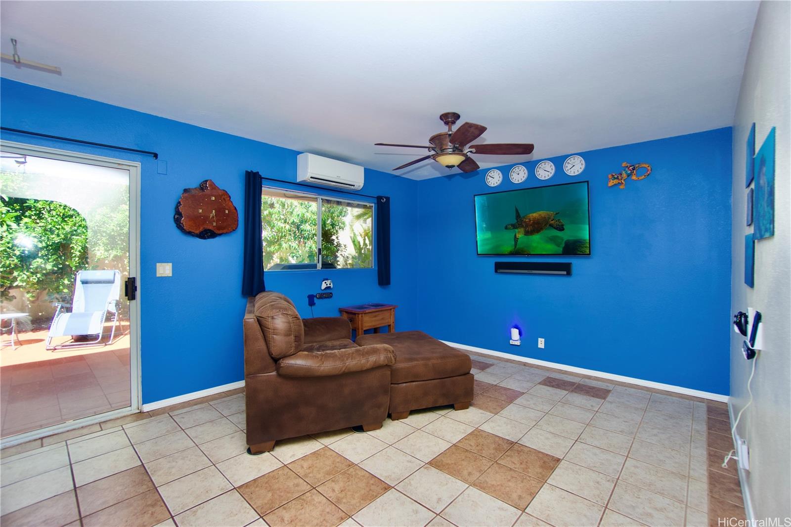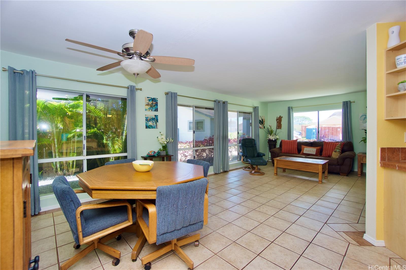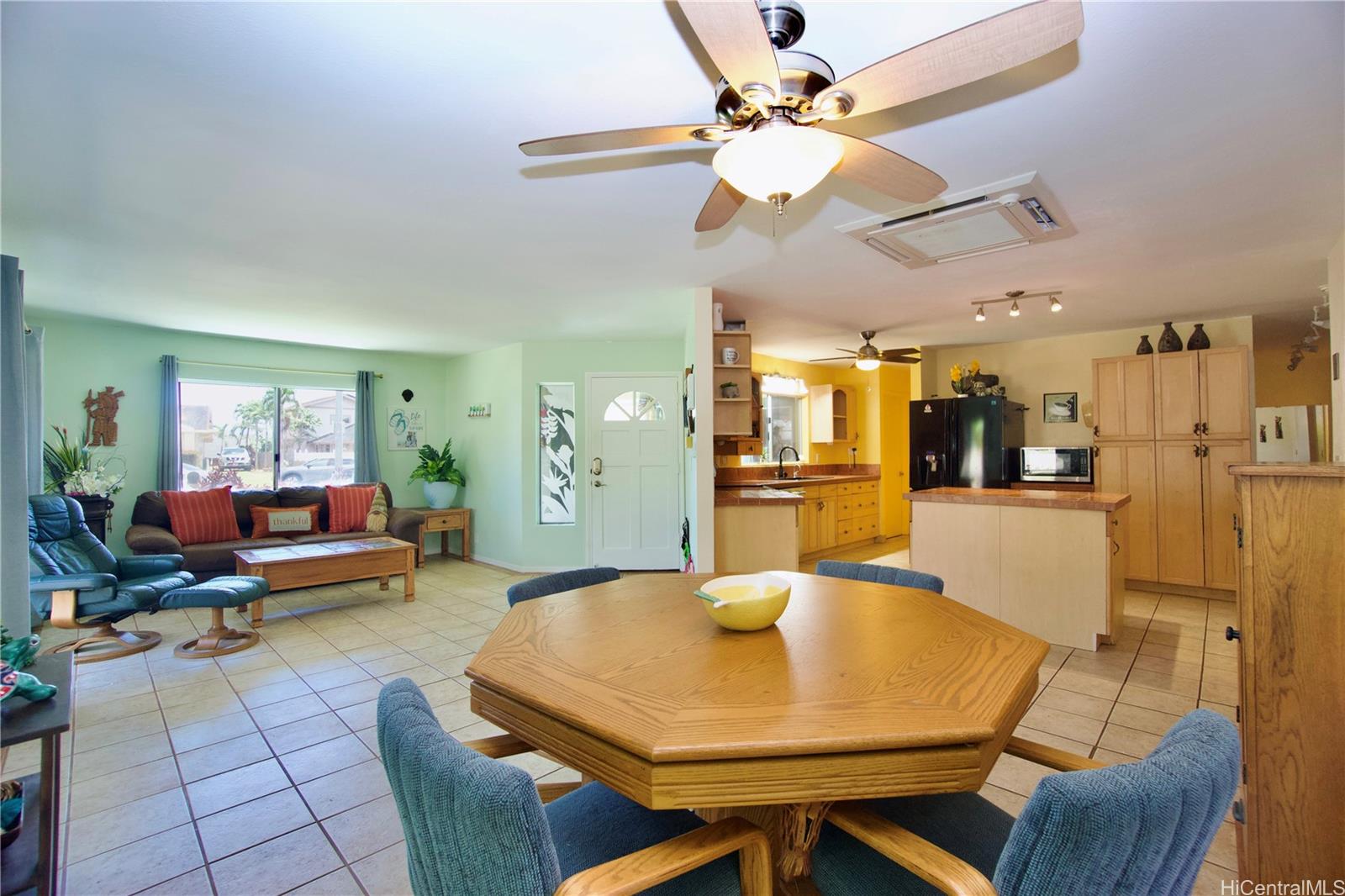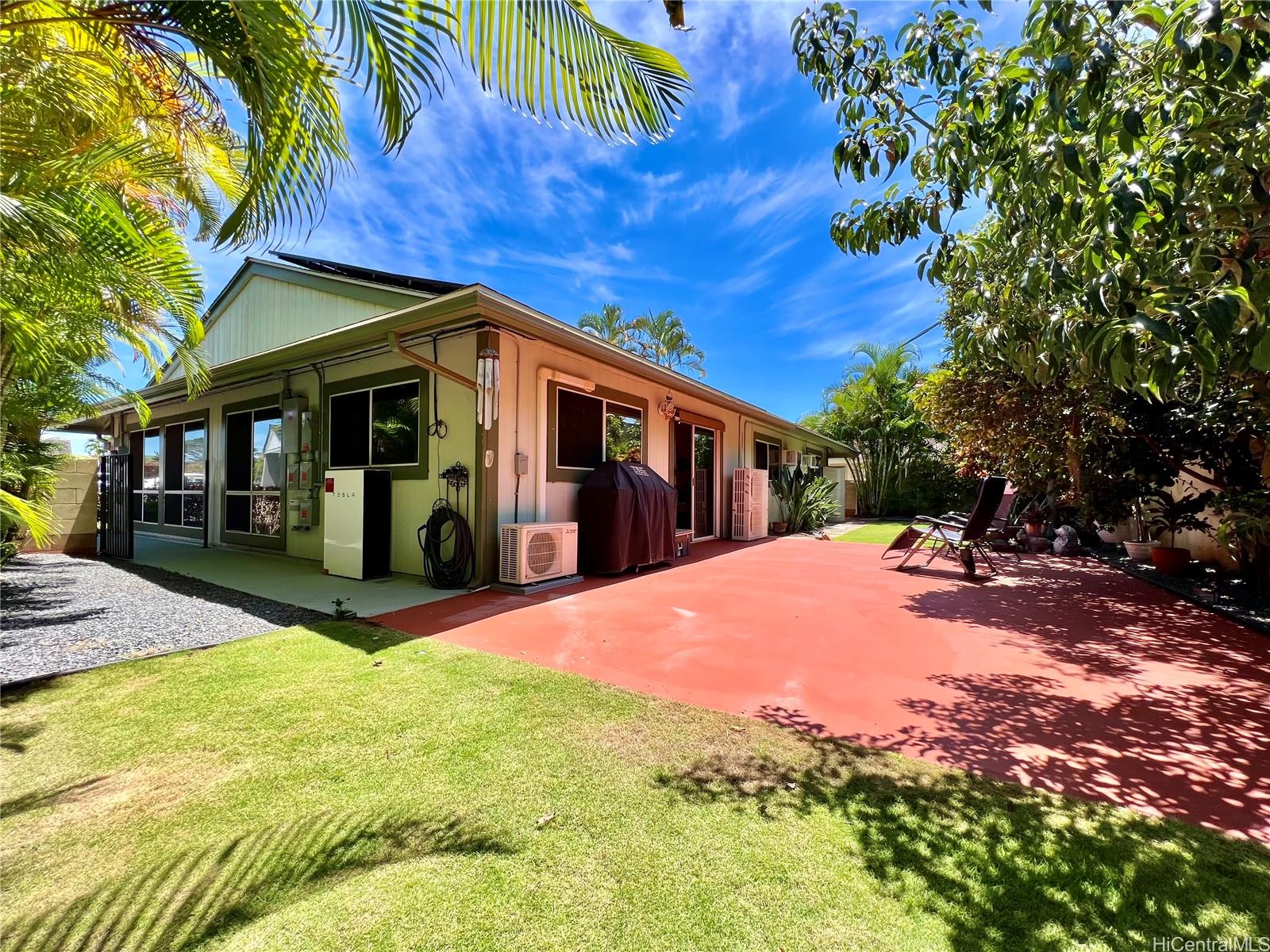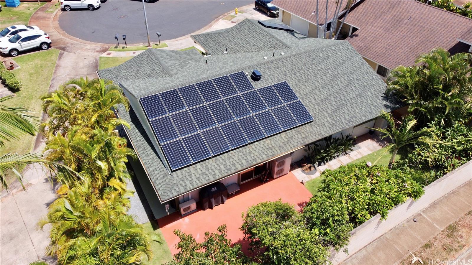|  |  |  elcome home to Royal Kunia. This highly sought after SINGLE LEVEL 3 bedroom, 2 bath home located in a quiet, safe cul-de-sac features an open floor plan with spacious living and dining areas, open kitchen with extra large sink and instant hot water dispenser, and a BONUS ROOM that could be used as formal dining, home office, kids playroom, family room or possible 4th bedroom. Luscious landscaping and private fenced in yard with fruit and flowering trees, no neighbors in the back. Energy efficient with fully owned solar PV System (22 panels), solar Hot Water System and insulated attic. Split AC Systems for living areas and window AC for all bedrooms. Garage features epoxy floor, ample storage space and built-in fold-away work table. Includes built-in entertainment system with TV and SONOS surround sound. Just blocks to Kunia Neighborhood Park and private access to Royal Kunia Community Center. Conveniently located near shopping, eateries, the Royal Kunia golf course, military bases and easy freeway access. A must see! *CLICK ON VIRTUAL WALKTHROUGH LINK* |  |  What will it cost to own? |  |  |  | MLS | Public |  |  | Single Family Single Family