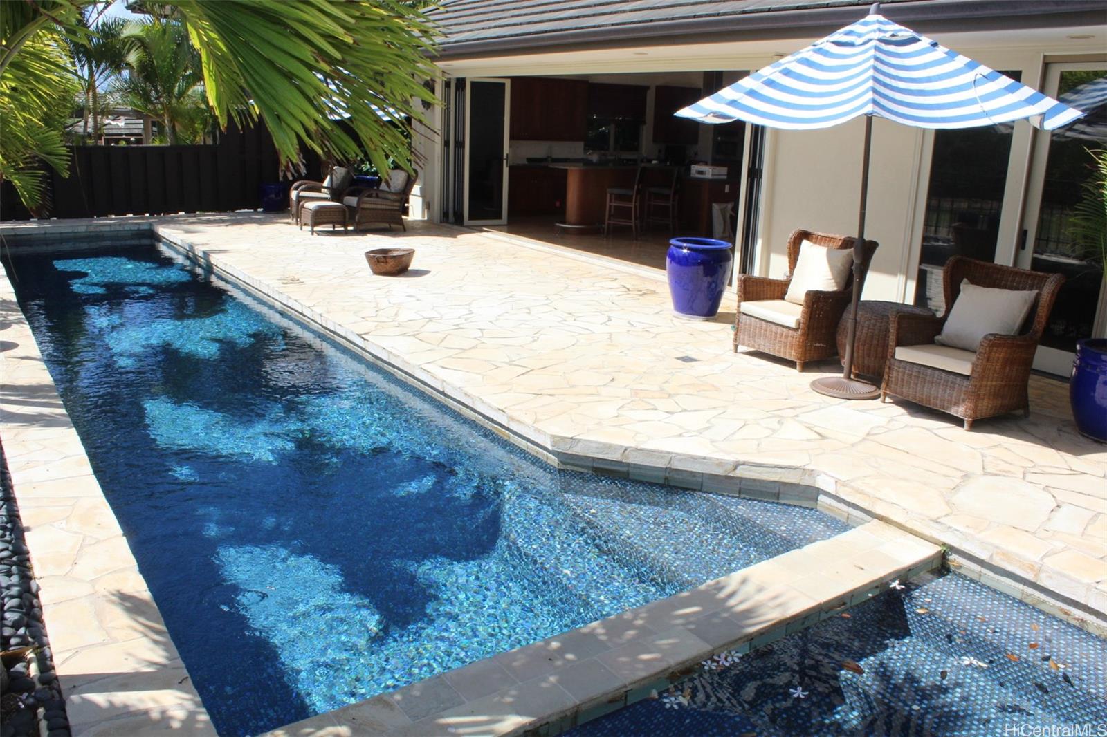 | esirable Koko Villas in quiet neighborhood: this particular home offers superior custom features such as a special custom architectural steel beam reinforced "Nanawall '', which provides a sweeping outdoor space for open living. Home has the largest single level floorplan in the neighborhood and is professionally landscaped. Enjoy Overlooking Hawaii Kai Golf Course while doing laps in the pool or relaxing in the heated jacuzzi. The flagstone decking flows seamlessly into the open Kitchen Island, gas grill, hood, double oven and subzero fridge with Travertine tile flooring in Kitchen and living area, high ceilings, Central A/C and much more. Wow your guests with the home theater which features six large theater chairs and stunning built-in audio, special lighting and insulated walls. Large master bedroom, with newly installed hardwood flooring, features a double walk-in shower, walk in closet and vanity sitting area. The home features a tile roof with added insulation and weather barrier for the best temperature control. Even the garage offers additional overhead storage and Double Epoxy Floor. | What will it cost to own? | |