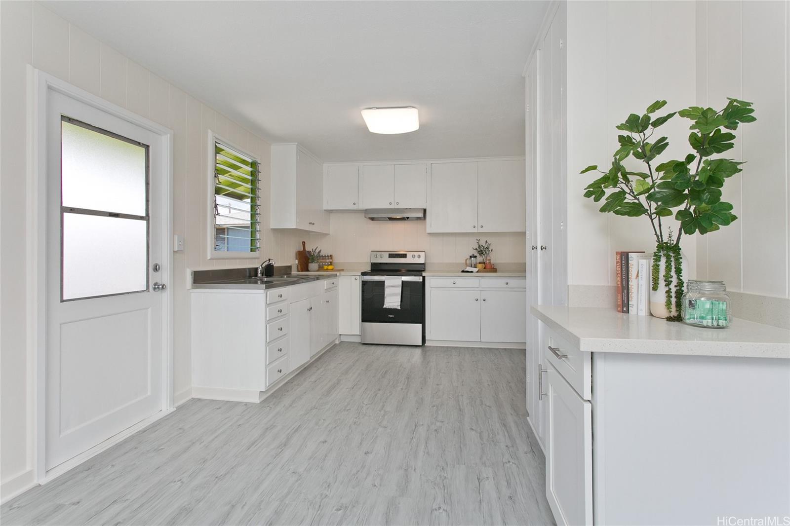 | orner lot in Lower Kalihi containing a 4-bdrm/2-bath dwelling (2/1 on 1st and 2nd level) with separate entrances. Recent renovations completed in 2023 include fresh interior paint, new appliances, vinyl plank flooring, w/w carpet in bedrooms and more! Wide street frontage easily parks 6 cars (3-car carport). Large, concrete lanai above carport provides opportunity for even more living area. Convenient location off Kam IV Road, close to bus lines and freeway. Move right in! | What will it cost to own? | |