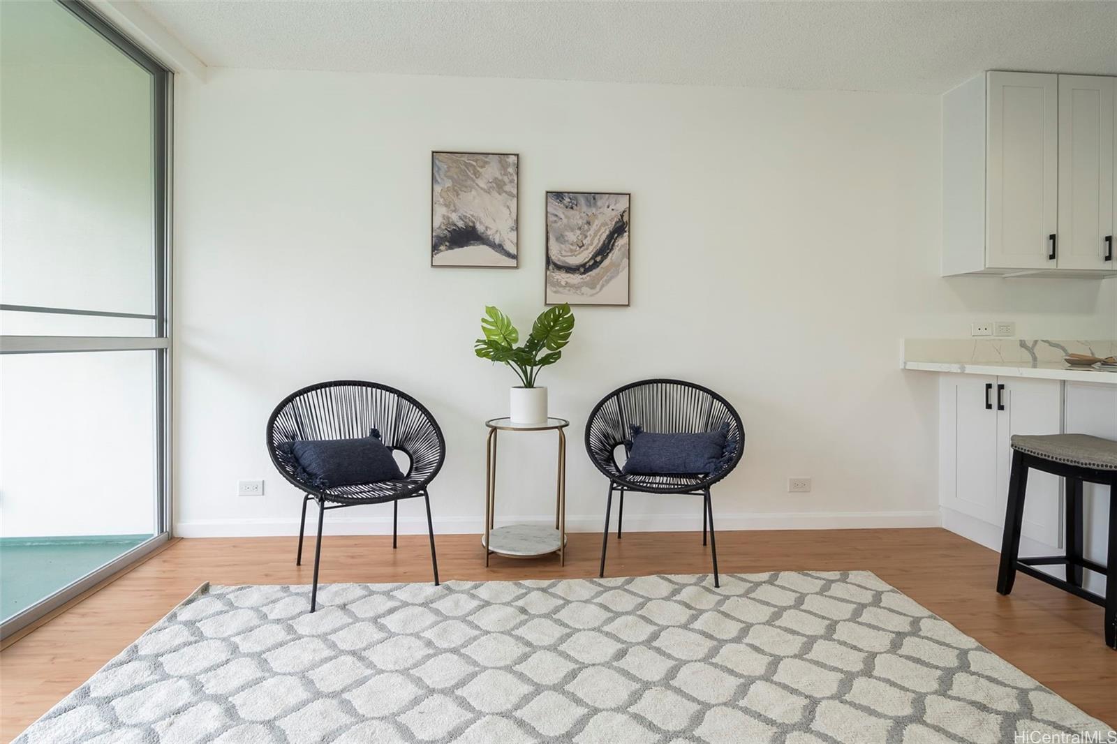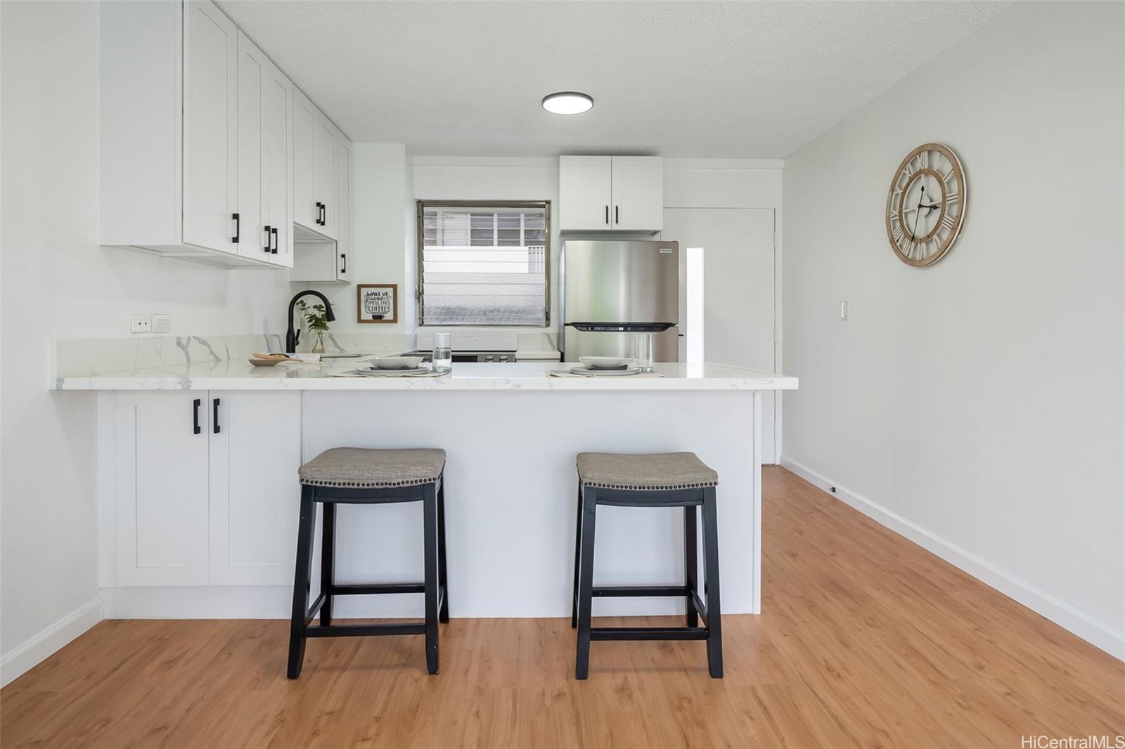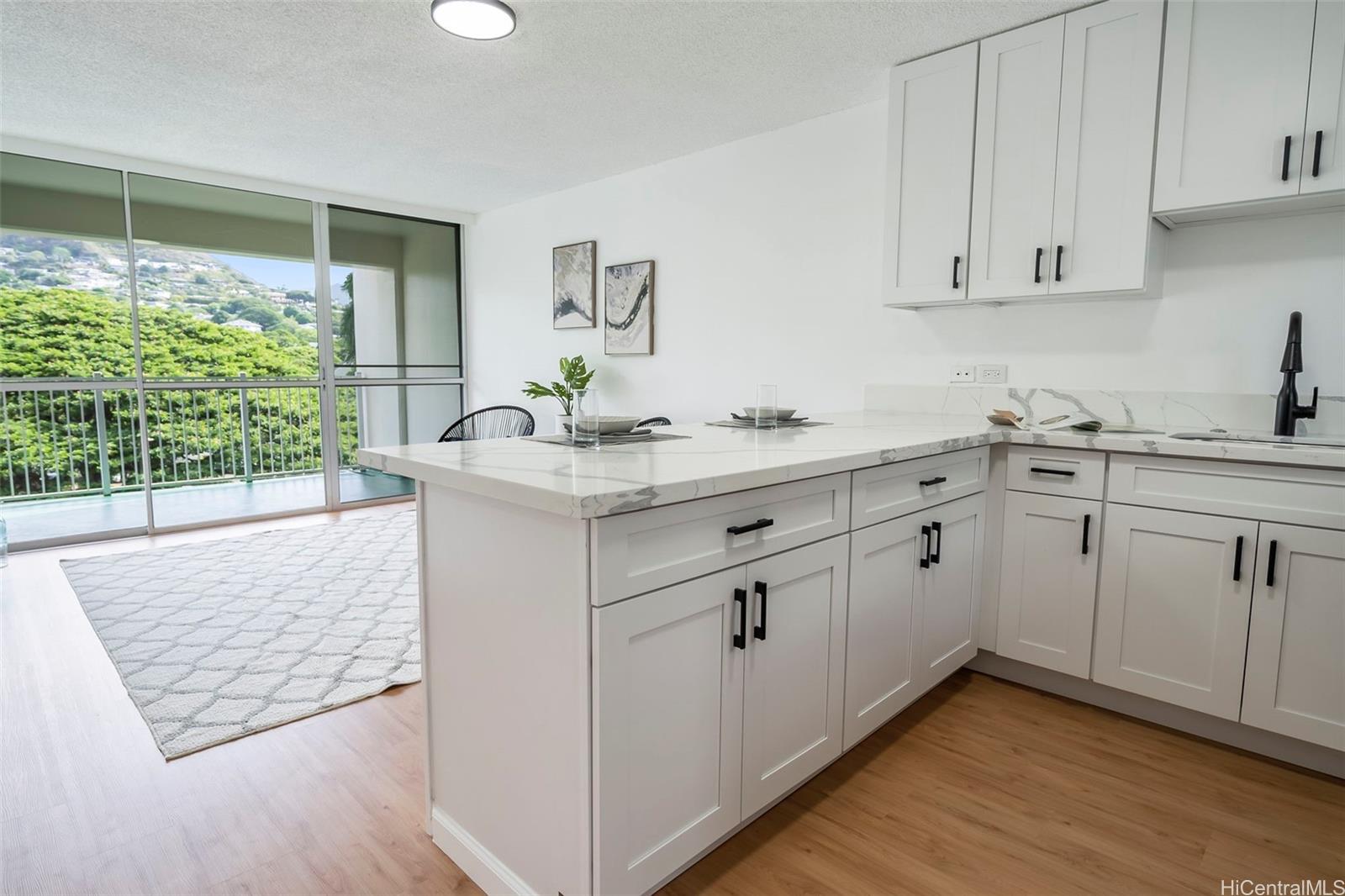 | iscover urban elegance in the heart of Honolulu. Nestled in Punahou Wilder, this 2 bed, 1 bath condo marries modern living with central convenience. Undergoing a meticulous transformation in 2023, this unit's sleek design is highlighted by its open spaces featuring luxury vinyl wood floors juxtaposed against tasteful black accents. The chef-inspired kitchen boasts calcatta quartz counters, new appliances and white shaker cabinets, leading to a spacious peninsula island - a culinary enthusiast's dream. Continuing the modern motif, the bathroom exudes opulence with a contemporary shower and a cascading waterfall head. Step out to your sizable covered lanai for the lush backdrop of the Manoa mountains and experience the comfort of cool valley breezes in this well-ventilated haven. Finally, enjoy the building's amenities, secure access, and prime location as you're situated moments away from the freeway and popular points of interest in Honolulu. Don't delay and miss your chance at this coveted gem! | What will it cost to own? | |