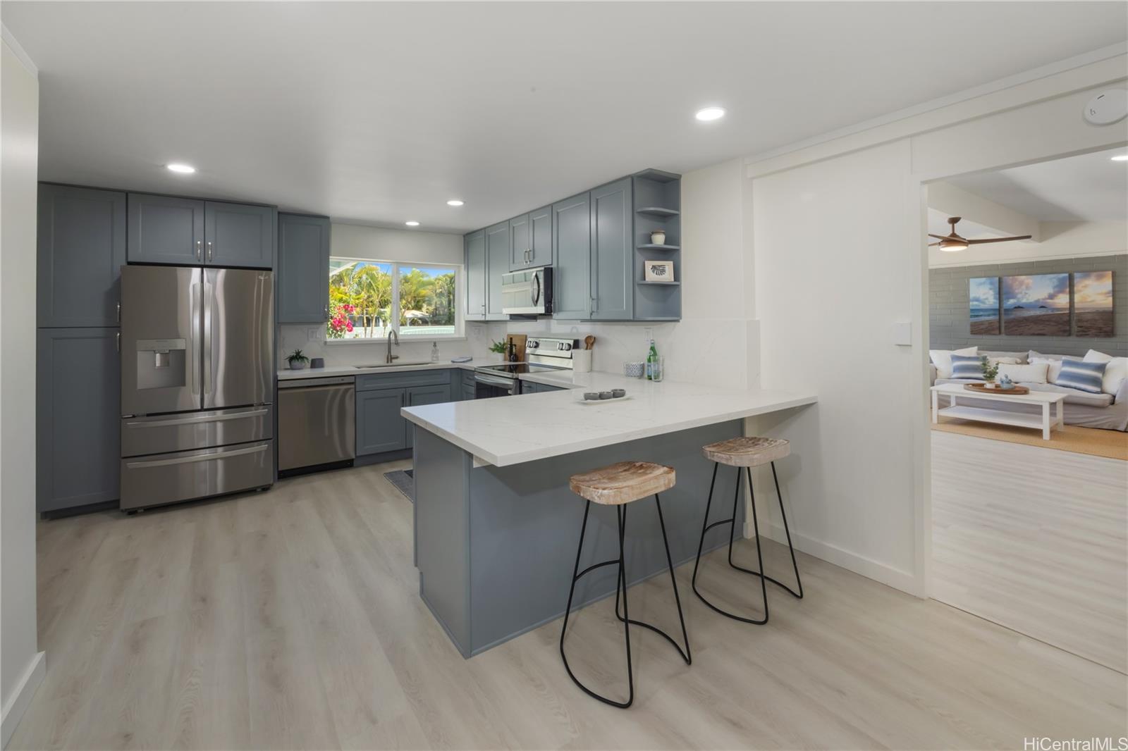 | xquisite Luxury Estate with Unparalleled Elegance! This extraordinary home offers a lifestyle, combining the utmost in luxury with privacy & convenience. Prepare to be captivated by this impeccably remodeled single-level home that boasts an array of upgrades & new modern touches throughout. Revel in new luxurious vinyl flooring, exquisite quartz countertops and soft-close cabinetry that exemplify modern luxury. The kitchen is a culinary masterpiece, featuring top-of-the-line stainless steel appliances that make meal preparation a delight. Natural light abounds the interior, creating an inviting & airy ambiance that flows effortlessly from room to room. With new split AC units throughout, this home ensures a comfortable climate year-round, while the new roof and gutters provide peace of mind for years to come. Custom-designed front gate is the entrance to your masterpiece. This residence offers the perfect fusion of elegance and comfort. The home's heavenly proximity to Kailua's immaculate white sandy beaches that truly distinguishes it. A mere stone's throw away, these stretches of paradise beckon with the promise of endless sun-drenched days & tranquil moonlight nights. | What will it cost to own? | |
