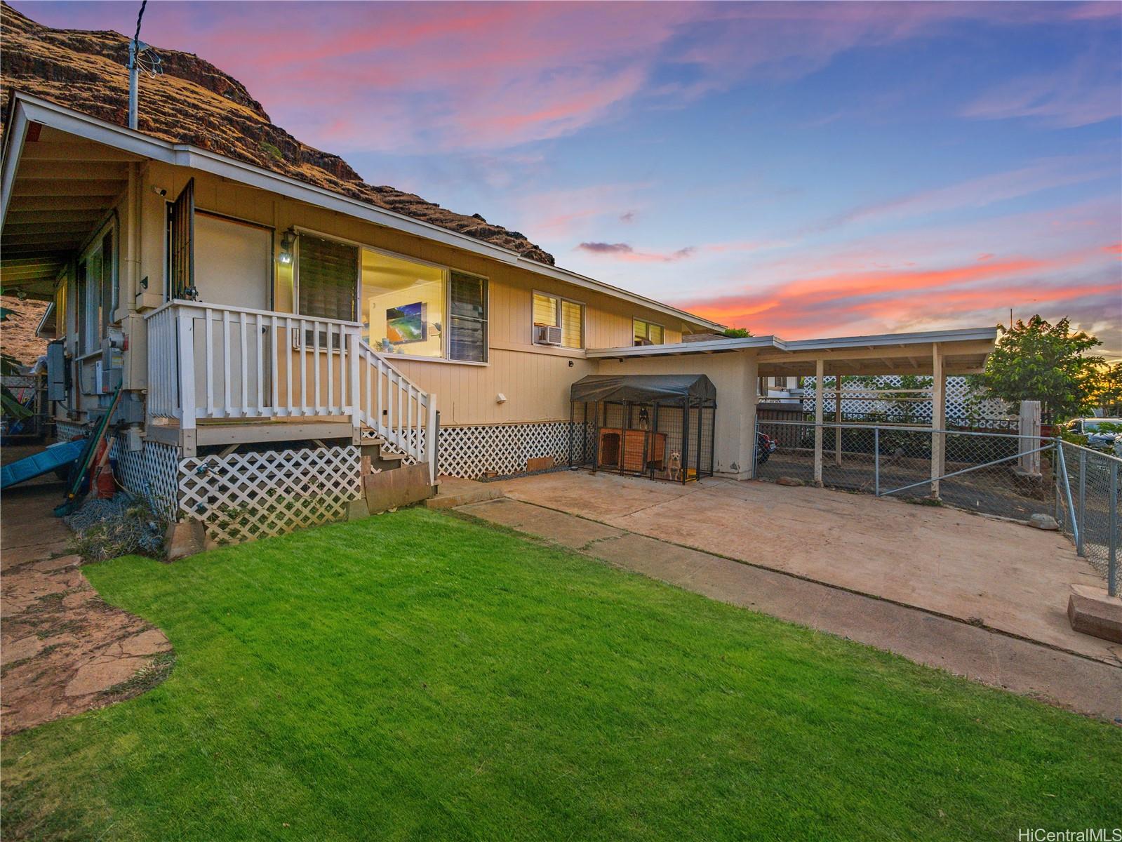 | awaii's Newest Affordable Listing for a Single Family Home nestled at 87'243 Heleuma St. NOW OFFERING A $10,000 Seller Credit with NO HOA or Maintenance Fees! You will love Driving Past the Beach everyday to come home & entertaining your guest in the Front Yard or Back Extended Covered Patio! Large Living Room with Open Concept Kitchen provides Comfort & Country Style Living! Gorgeous Mountain View that Glistens at Sunset from your Picture Window! With 3 Generously Sized Bedrooms, there's ample room for family, guests, or even a home office. Imagine preparing your favorite island dishes while taking in garden views from the kitchen window. Create an Outside Oasis with your very own Private Backyard Patio Sanctuary, complete with space for gym equipment, storage, play area or dinning area under the covered lanai. Convenience is key, with nearby access to beautiful beaches, hiking trails & shopping centers. Don't miss the opportunity to make 87'243 Heleuma St. your own piece of paradise in Waianae. Contact us or your agent today to schedule a viewing & experience the country lifestyle that awaits you!