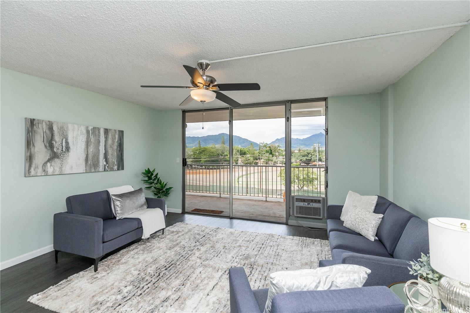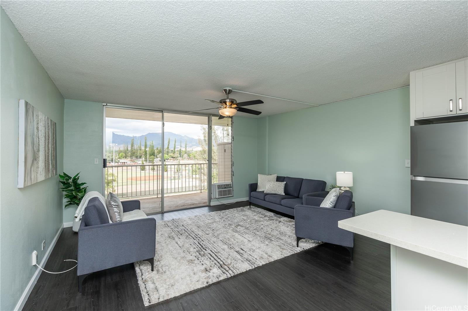 | reat opportunity for 1st time homebuyer or investor! Located across from Schofield Barracks, and a short drive to Wheeler Army Airfield and the beautiful beaches of the North Shore, with easy access to H-2. Experience stunning mountain views and beautiful sunsets from your spacious lanai. This updated 1 bedroom, 1 bathroom condo offers open concept living, newer LVP flooring and new interior paint, stainless steel appliances, as well as updated counters and finishes in the kitchen and bathroom. In-unit washer and dryer are a definite bonus you won't want to live without! Extra storage off the lanai provides space to store your beach accessories. One assigned parking space and plenty of visitor parking for your guests. Don't wait! This condo won't last long! | What will it cost to own? | |