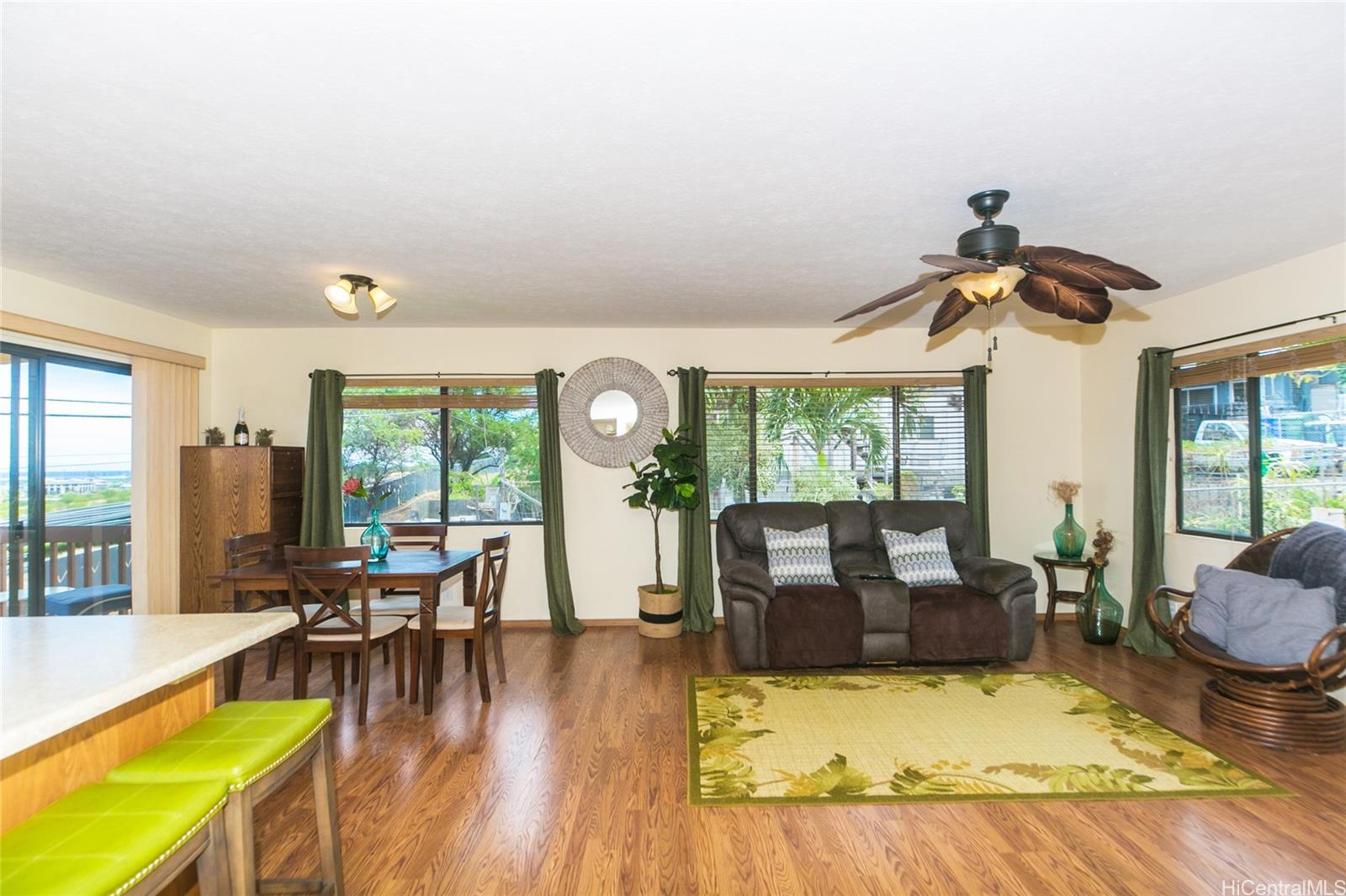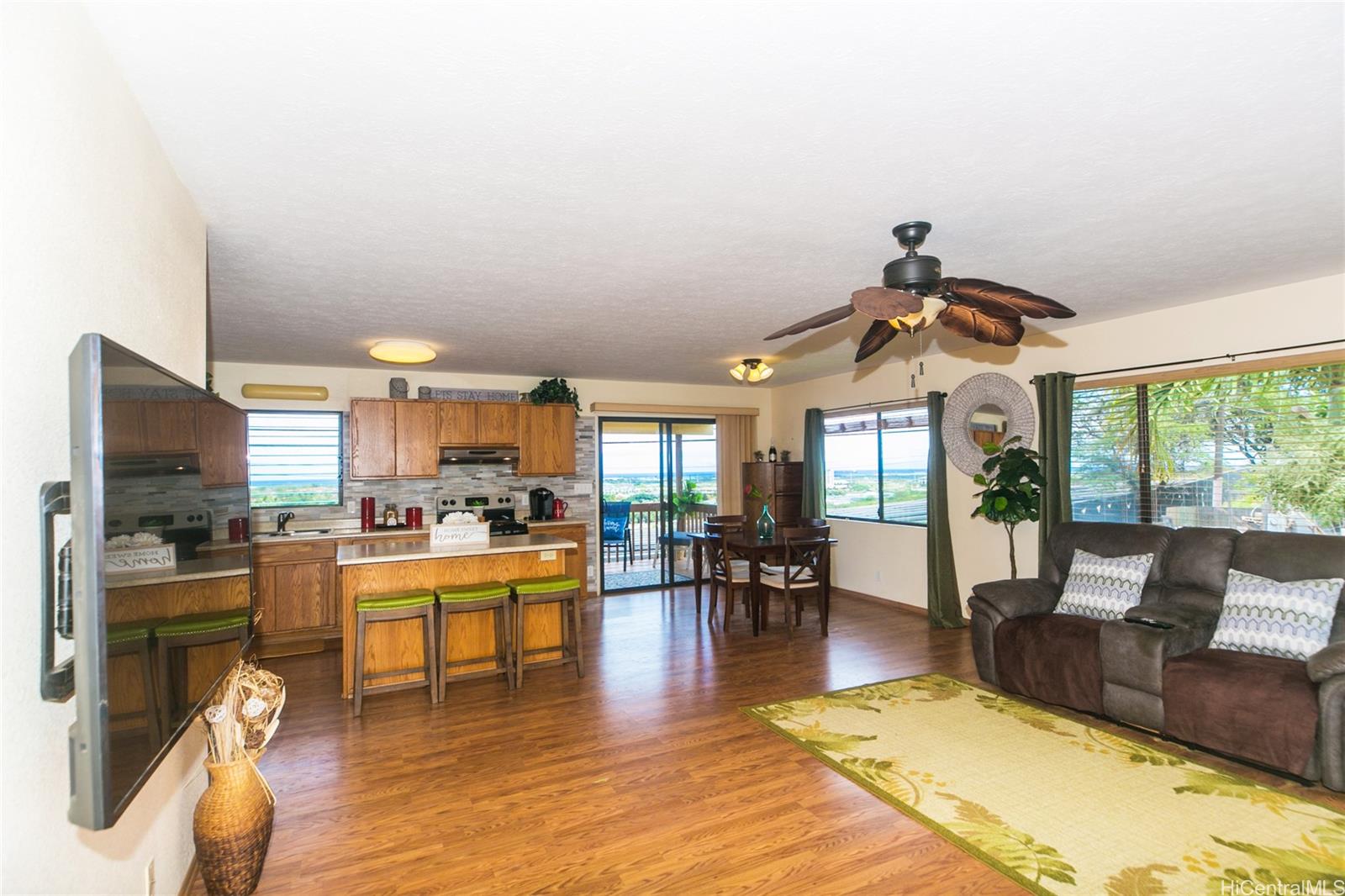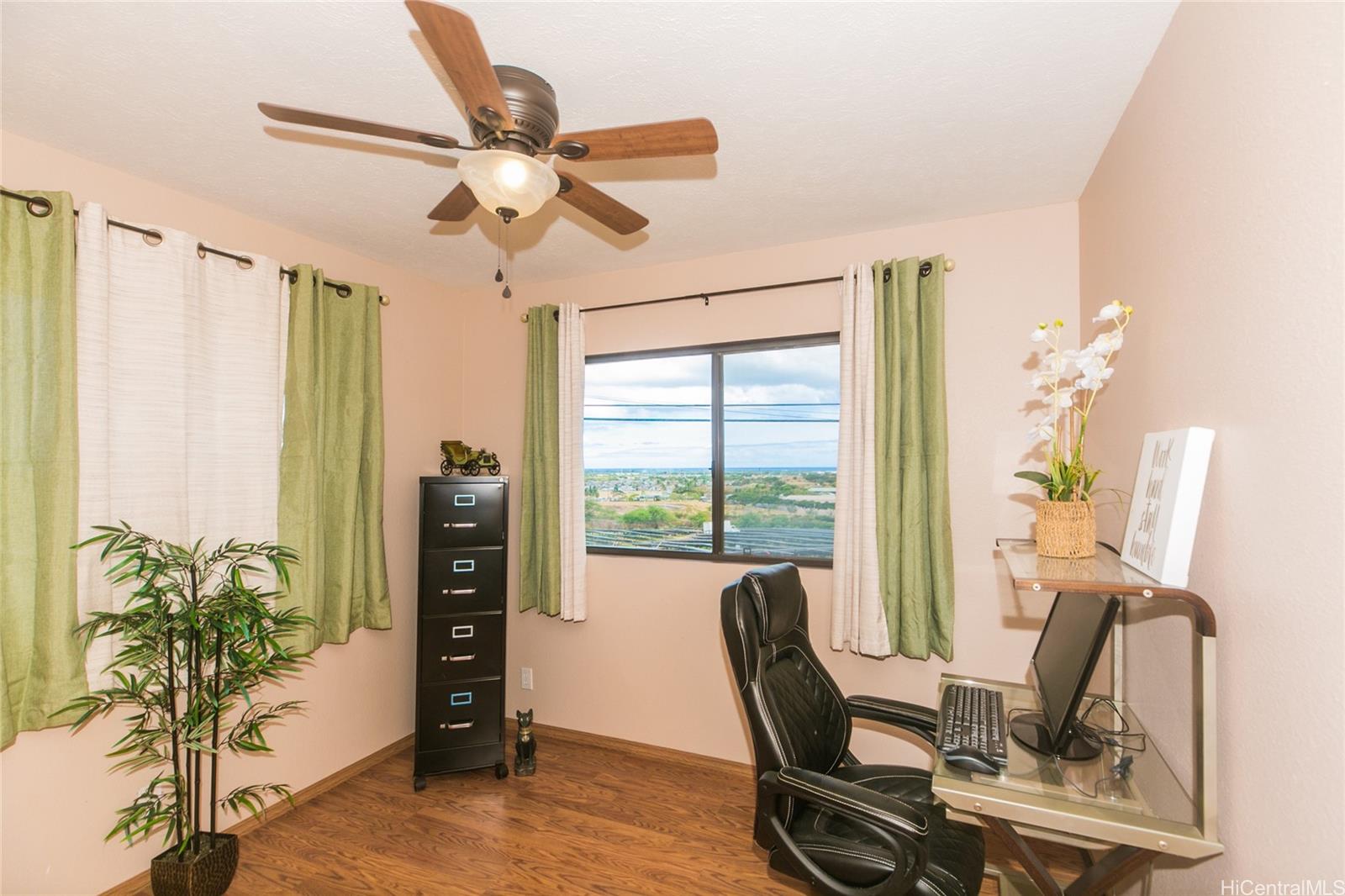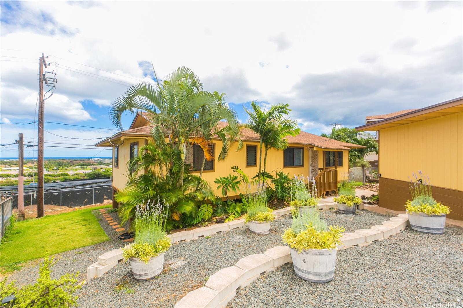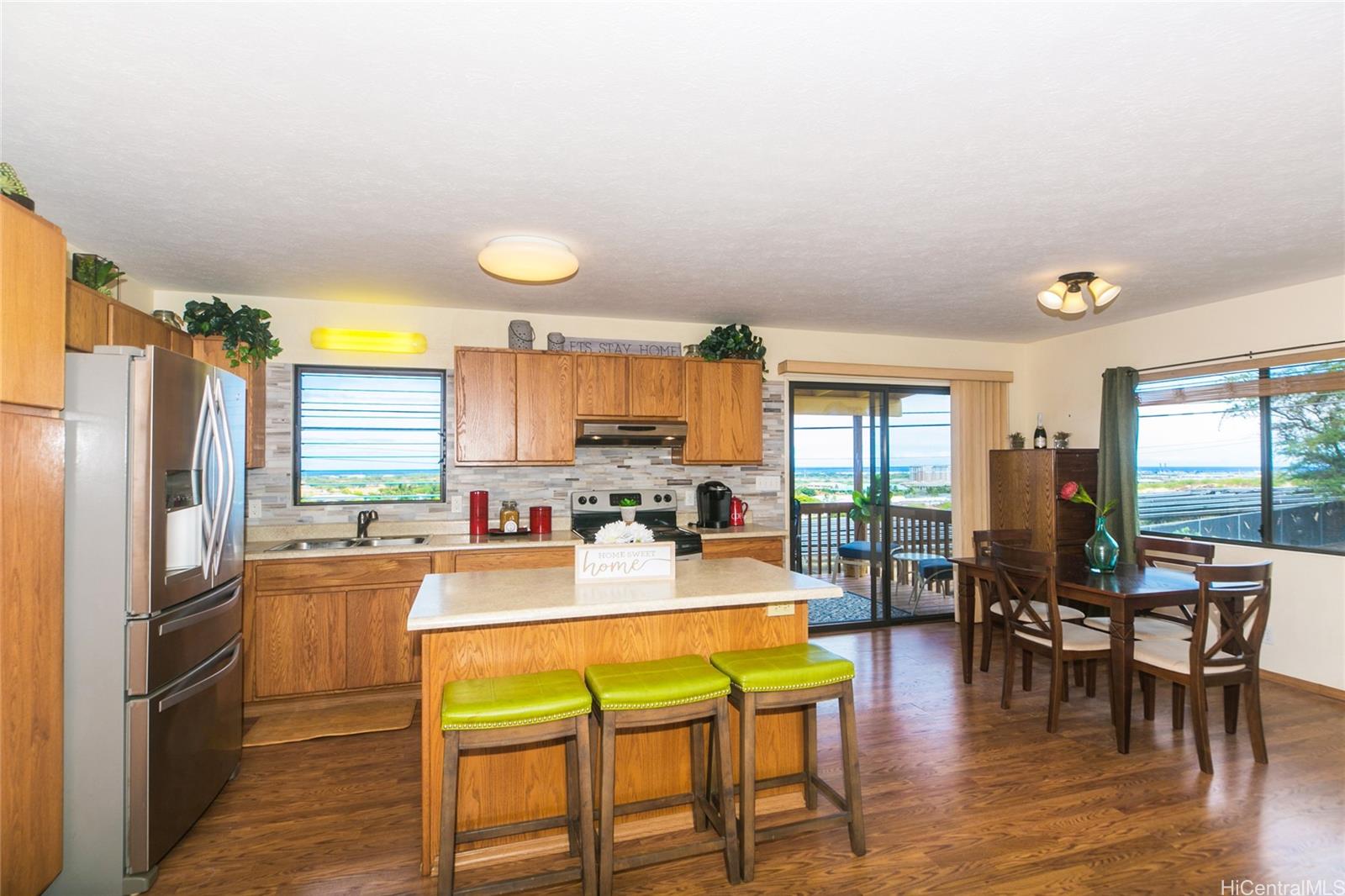 | otivated Seller ! Watch the holiday fireworks to Diamondhead from your elevated lanai! Act now and move in before the holidays. Expansive views of the ocean shoreline from multiple rooms! Makakilo close to the freeway ' This 4-bedroom, 2-bath home was built in 2007 and is just 16 years old and sits on a 7,291SF rim lot. Exceptional craftsmanship quality solid wood kitchen cabinets along with an oversized kitchen island for cooking or crafts. A stainless fridge, newer stove, and tankless water heater to save energy costs. Laminate flooring throughout all living/dining, kitchen, and bedroom areas. Turn on the ceiling fans to move the great cross breeze just by opening the windows. The laundry area is located outside, and you'll love the storage galore under this elevated home. But wait, there is another view from the large, covered lanai to relax and enjoy the sunrise with your coffee. | What will it cost to own? | |