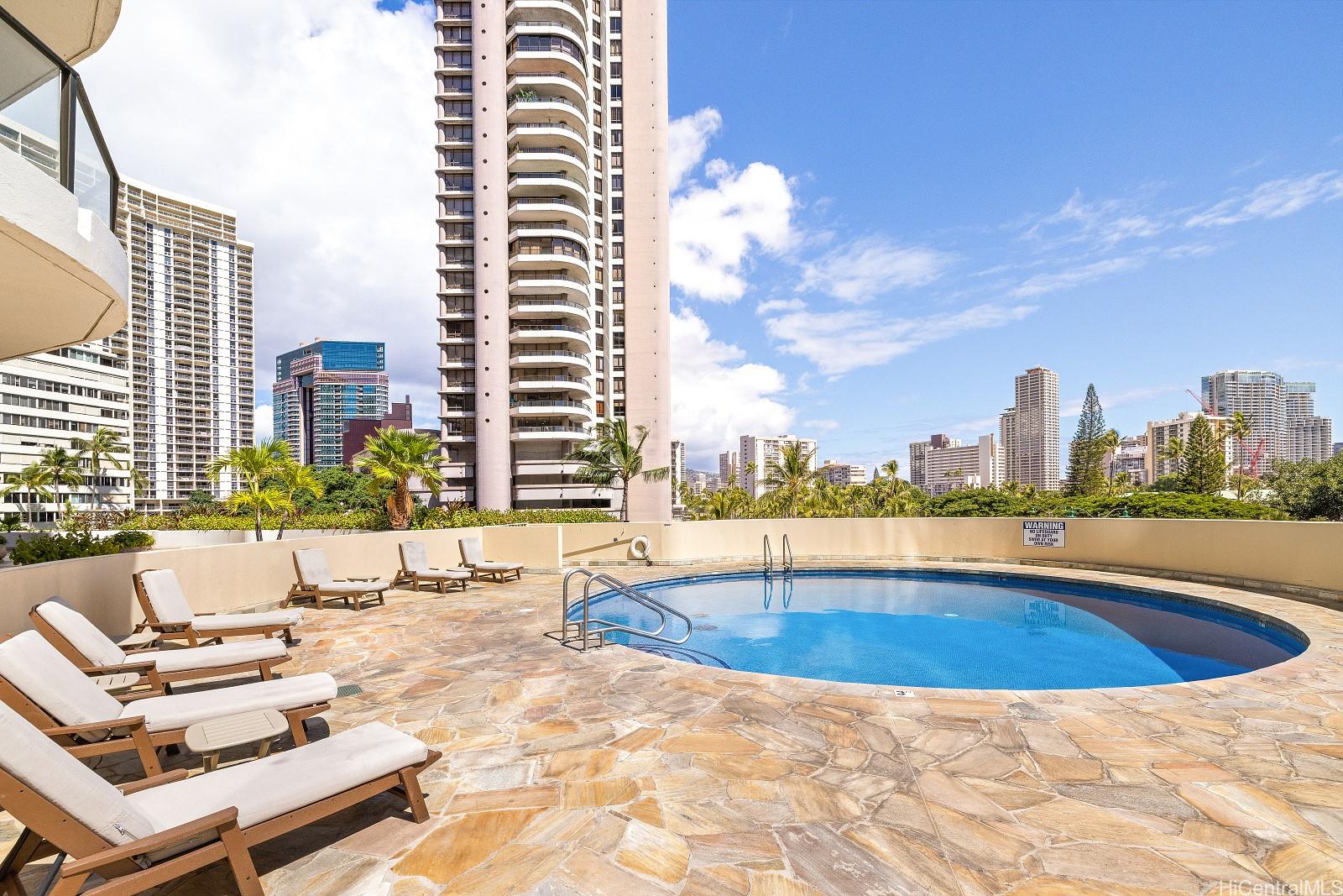 | elcome to this stunning 2-bed, 2-bath condo in the sought-after Upper West Side of Waikiki. This rarely available high floor leasehold unit with breathtaking views of Waikiki, Fort DeRussy Park, and the ocean, has been beautifully renovated in 2012 with modern elegance. Illuminated with natural light, the open concept kitchen features stainless steel appliances and granite countertops, and flows effortlessly into a spacious, airy living area. Enjoy a tranquil primary bedroom with spectacular views and an ensuite bath, while the second bedroom is nicely separated and perfect as a home office or guest room. Property features a covered, secure, assigned parking spot for convenience. Building amenities include a manager, security, library, pool and barbecue area. The incredible location of The Wailana allows for access to internationally acclaimed restaurants and shopping, and Waikiki's golden beaches and glorious turquoise waters are located moments away. Don't miss out on this incredible opportunity at an unbelievable price! | What will it cost to own? | |