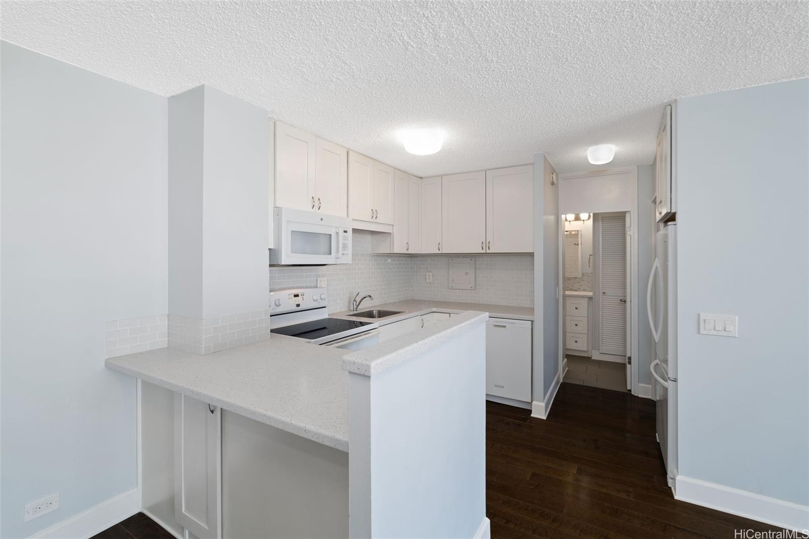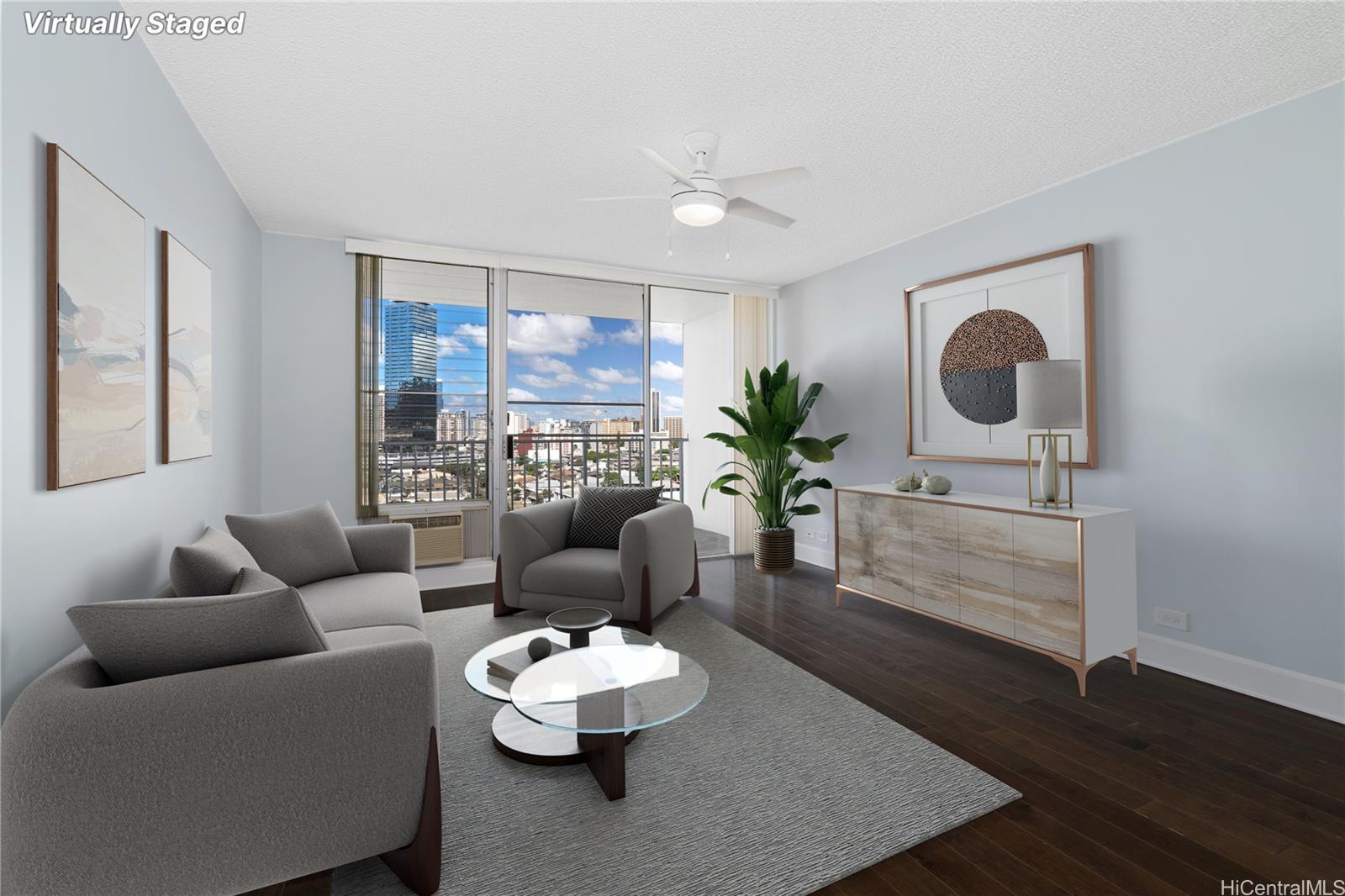 | ack on the market. Don't miss it a second time! Bright, breezy, and clean corner penthouse unit is move-in/rent ready! Just unpack your bags and start enjoying the cool Manoa Valley breezes as well as city and peek-a-boo ocean views from your spacious top floor lanai. Window AC and fans keep things cool and comfortable during the hottest days. Unit upgrades include laminate and ceramic tile flooring, white shaker cabinets, white quartz counters, and newer white appliances. The Lime Tree welcomes furry family members who can enjoy the Frank Judd Mini Park (half block away) and the Ala Wai Community Park (two blocks). This location can't be beat. McCully Shopping Center and bus stop are just one block away. There are many other shopping, dining, recreation and entertainment options within a four block radius. Just a short drive to the Hawaii Convention Center, Ala Moana Center, Waikiki, UH Manoa as well as public schools, hospitals, great beaches, and popular surf spots. Maintenance fees under $1 per square foot includes water, sewer, and basic cable. Don't miss out on this great value!