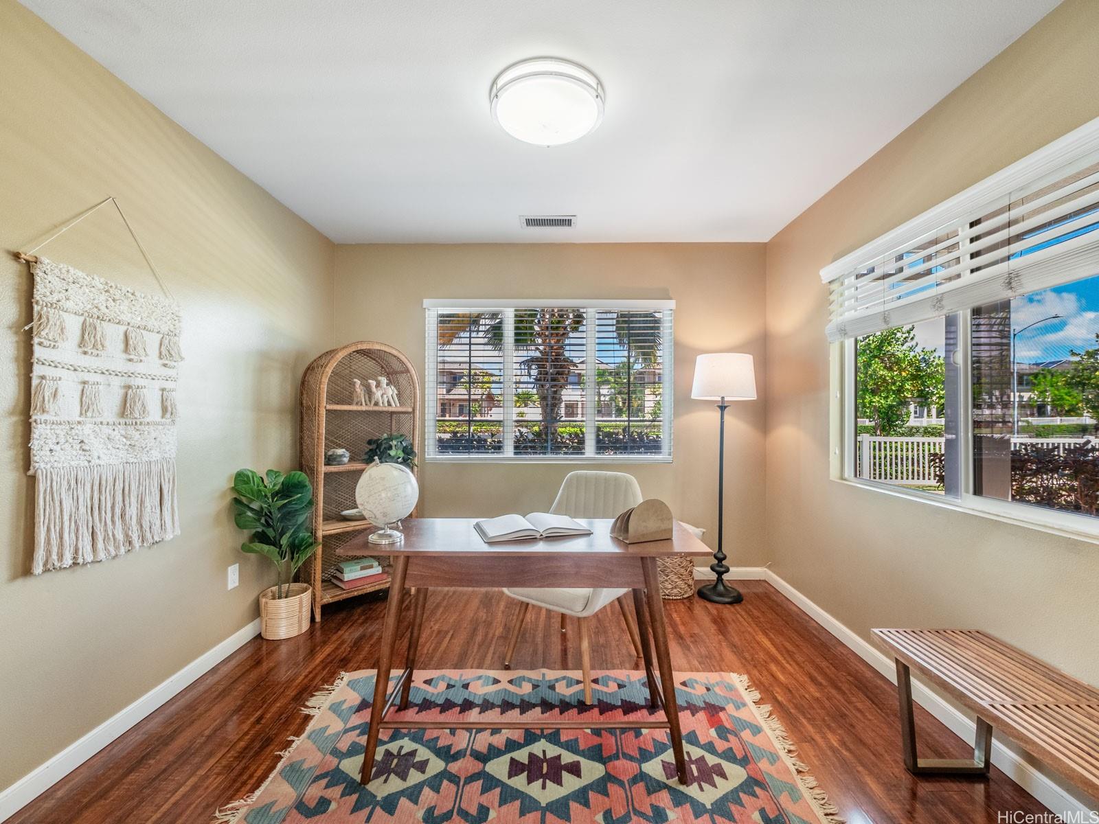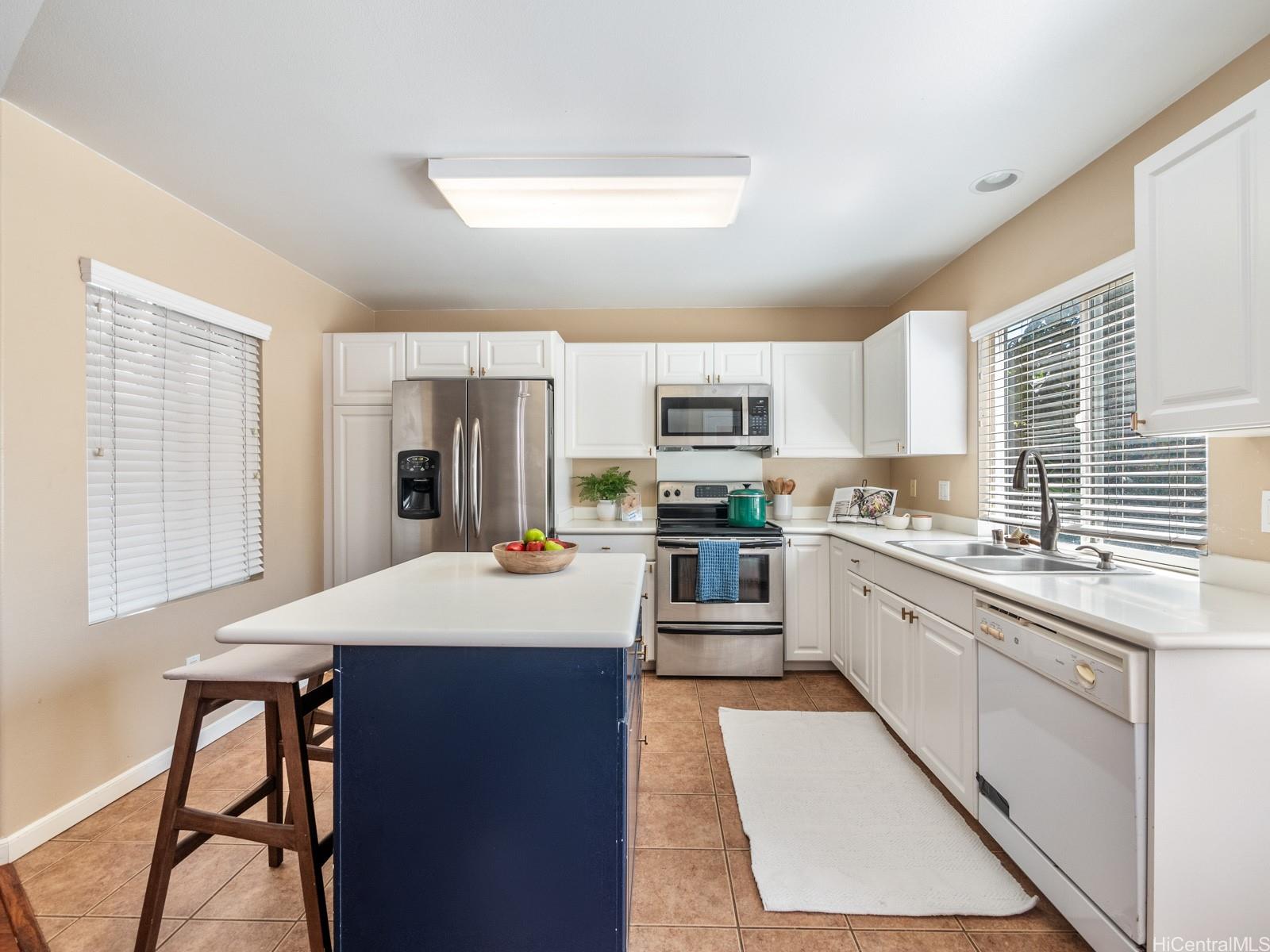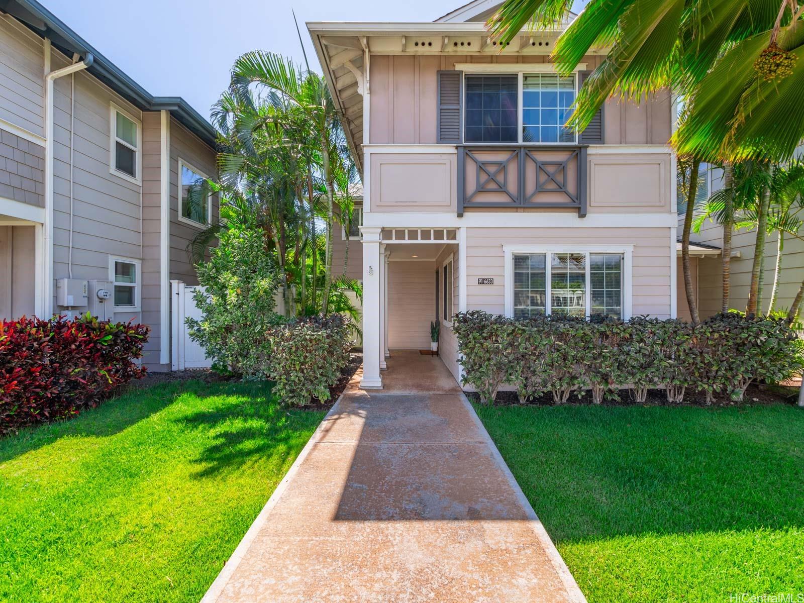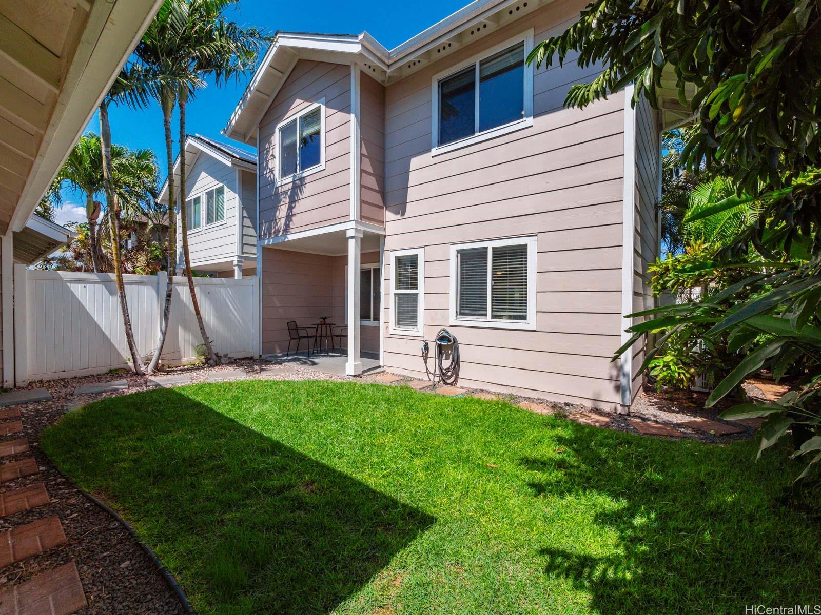 | his single-family gem boasts 3 bedrooms, 2.5 bathrooms, and the ultimate in comfort with central AC with leased PV panels for electric bill savings. The first-floor features a spacious den/office, ideal for remote work or relaxation. You'll love the open concept kitchen that seamlessly connects to the dining and living areas, perfect for entertaining. Step outside to the enclosed yard, beautifully landscaped with lush lawns, making it a pet-friendly haven and a fantastic spot for outdoor play and entertaining. Convenience is key, with guest parking available at the back driveway. Additionally, this home offers a leased PV system with the option to buy, ensuring energy efficiency and sustainability. Ocean Pointe in Ewa Beach is a vibrant community with parks, schools, shopping centers, and beaches just moments away. Embrace the relaxed Hawaiian lifestyle and make this fantastic Ocean Pointe property your new home. Schedule a showing today and experience the best of Ewa Beach living! **Seller is offering a $500 credit towards new dishwasher.
