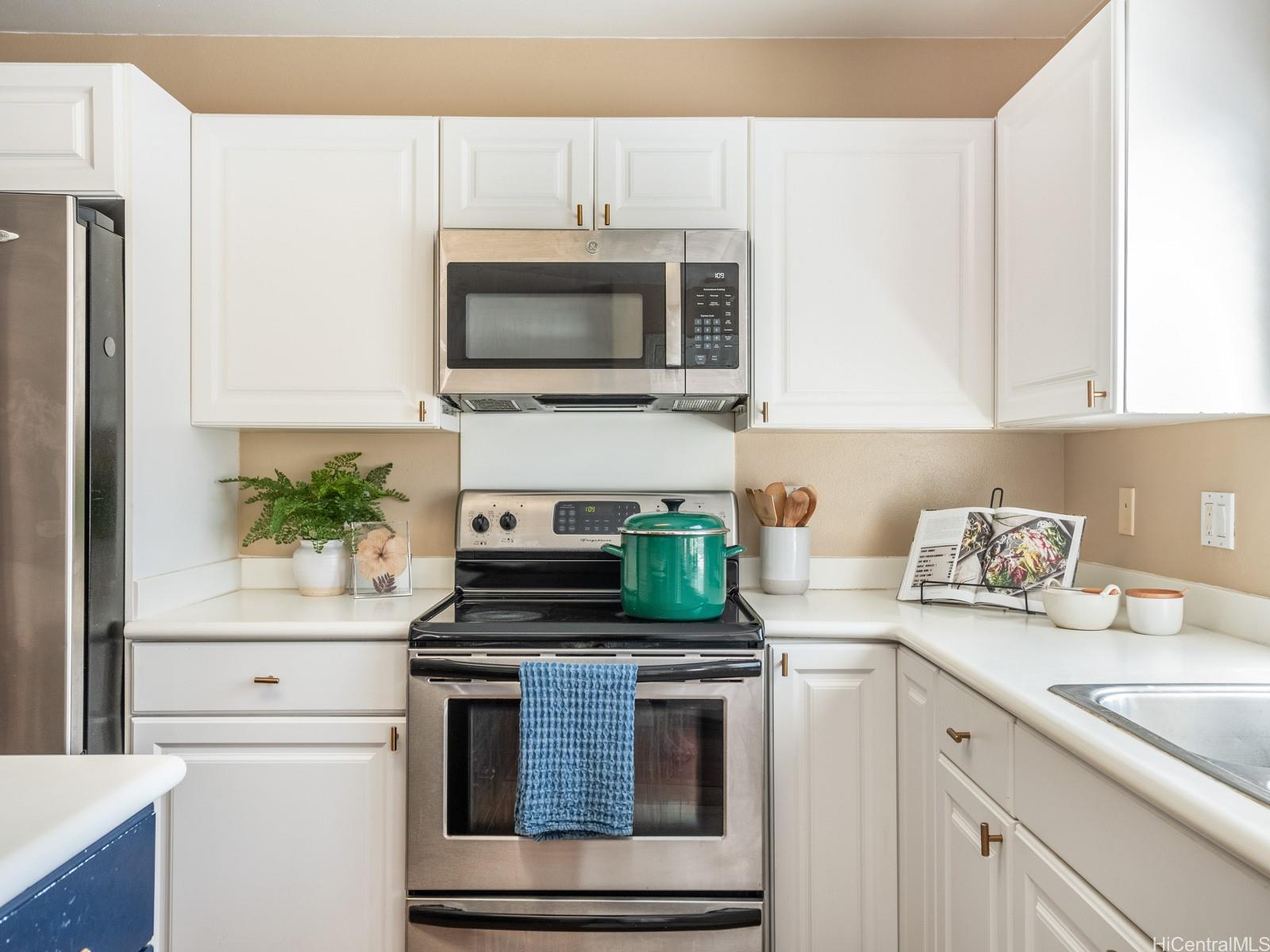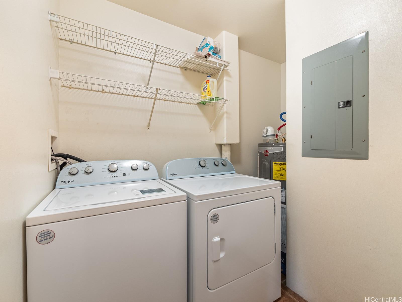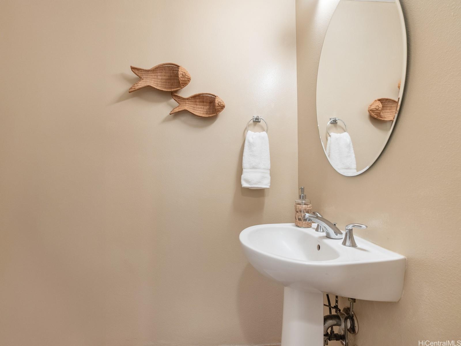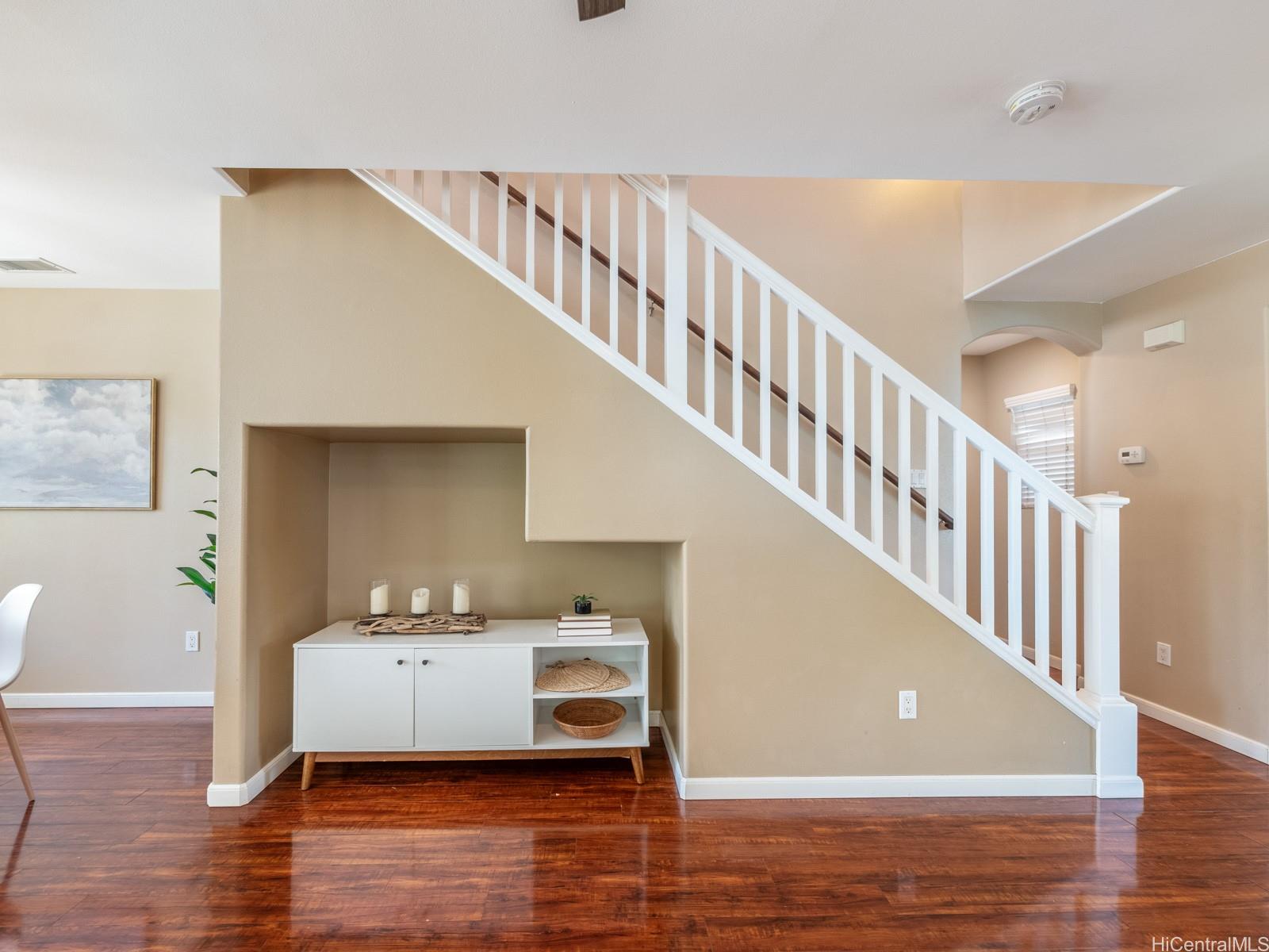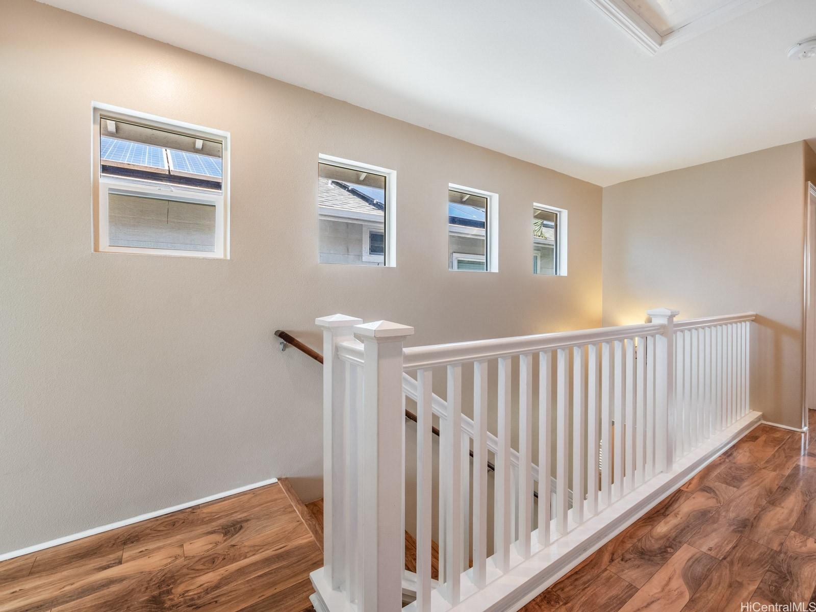| his single-family gem boasts 3 bedrooms, 2.5 bathrooms, and the ultimate in comfort with central AC with leased PV panels for electric bill savings. The first-floor features a spacious den/office, ideal for remote work or relaxation. You'll love the open concept kitchen that seamlessly connects to the dining and living areas, perfect for entertaining. Step outside to the enclosed yard, beautifully landscaped with lush lawns, making it a pet-friendly haven and a fantastic spot for outdoor play and entertaining. Convenience is key, with guest parking available at the back driveway. Additionally, this home offers a leased PV system with the option to buy, ensuring energy efficiency and sustainability. Ocean Pointe in Ewa Beach is a vibrant community with parks, schools, shopping centers, and beaches just moments away. Embrace the relaxed Hawaiian lifestyle and make this fantastic Ocean Pointe property your new home. Schedule a showing today and experience the best of Ewa Beach living! **Seller is offering a $500 credit towards new dishwasher.
