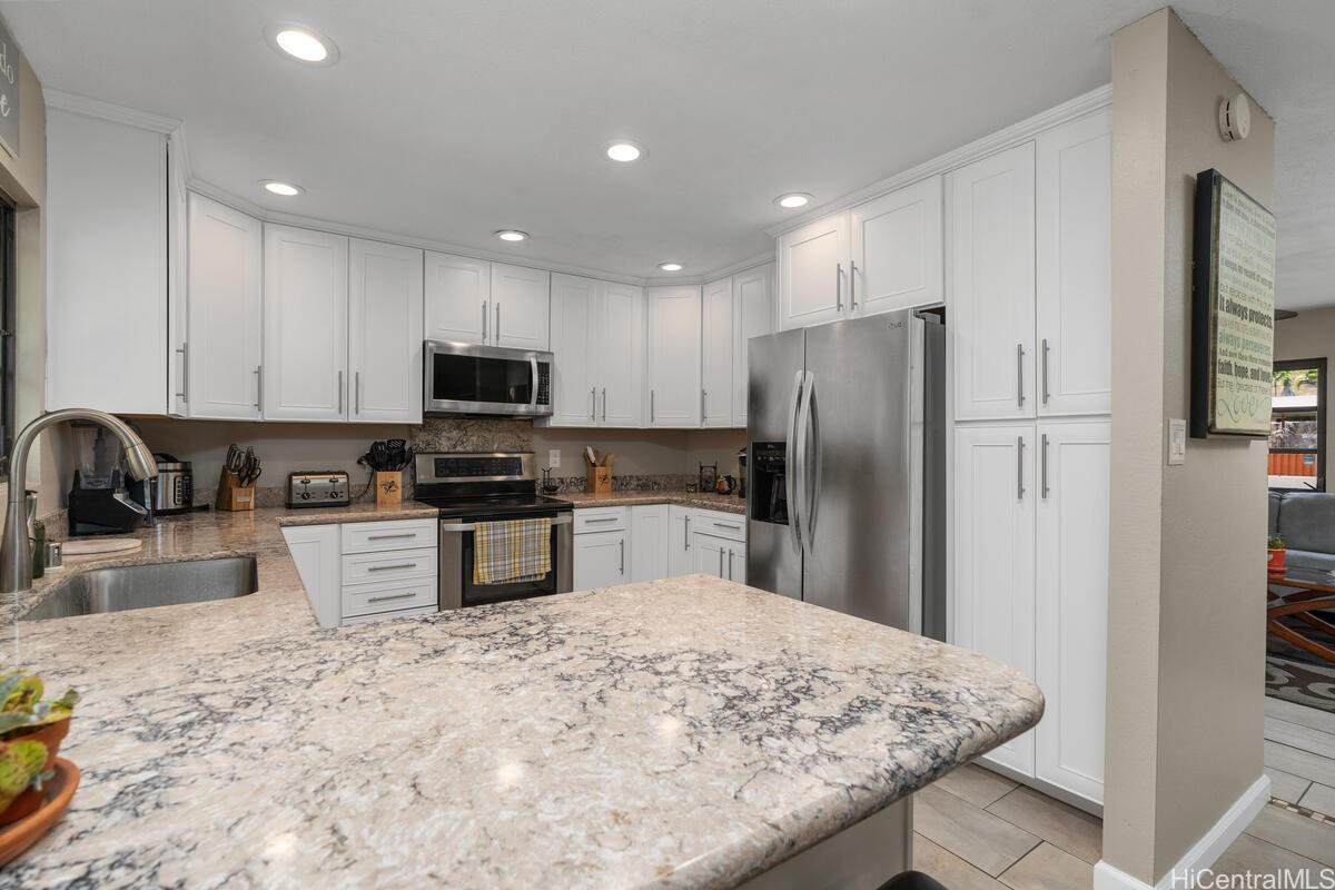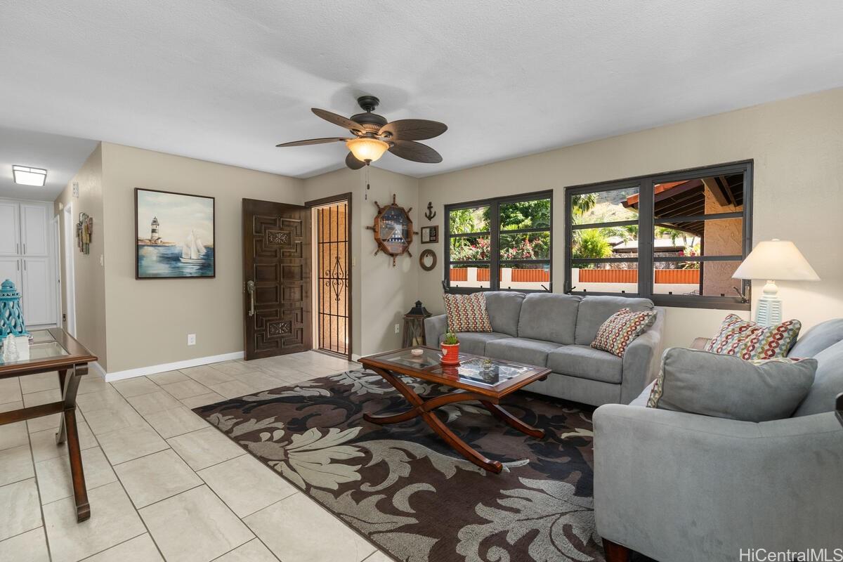 ll VA Buyers this is an assumable loan at 2.25%. Stunning Westside Property! This is the perfect home for your retirement, if not quite there, then it is excellent for those who work from home! Impeccably maintained single level home is a short distance from famous Makaha Beach. The home boasts stunning views of Mount Ka'ala and the beautiful Waianae Mountain Range. Your next home features a well designed kitchen with stainless steel appliances, quartz countertops, split ACs throughout the home, and it features upgraded tile floors. Come home and relax in your landscaped tropical paradise featuring Tahitian limes, starfruit, lilikoi, papaya, peach, tangerine, coconut, a noni tree, and various tropical plants. After a long day at work sit in your covered lanai and listen to the waves crashing against the shore or take a leisurely stroll through the deeded right-of-way to enjoy fishing or watching the sunrise and sunset. The home includes an extra large garage with a work bench and plenty of storage and can accommodate parking for 2+ cars and a boat. Furniture is negotiable. Make an appointment to see your next home!