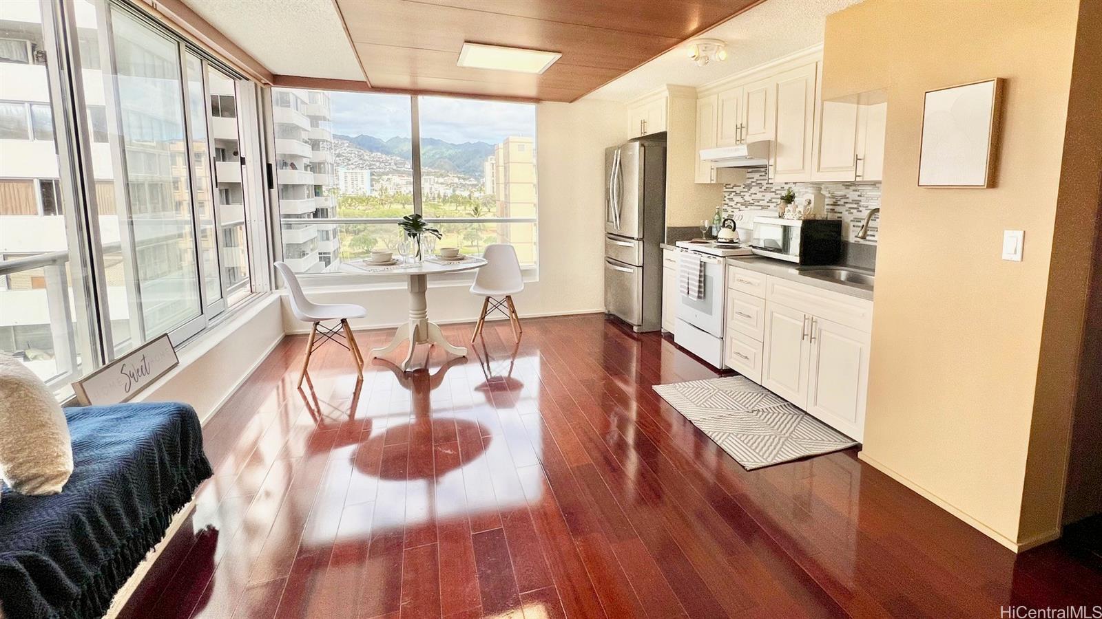 | elcome home to Waikiki Townhouse! This 1 bedroom, 1 bathroom unit is located in the heart of Waikiki. A short distance to Waikiki Beach, International Marketplace, shopping, dining, and more! Enjoy your spacious 590 square feet unit, in-unit Bosch washer and dryer, with cool cross-breezes and golf course, mountain, and canal views. Fee simple, secured boutique building, rooftop sundeck, and surfboard and bike storage. Only 4 units per floor! There is a short waitlist for parking and once assigned, it's free of charge. 2 guest parking available. Special assessment (windows/railings) of $199.74/month till January 2039. This one is a must-see! | What will it cost to own? |