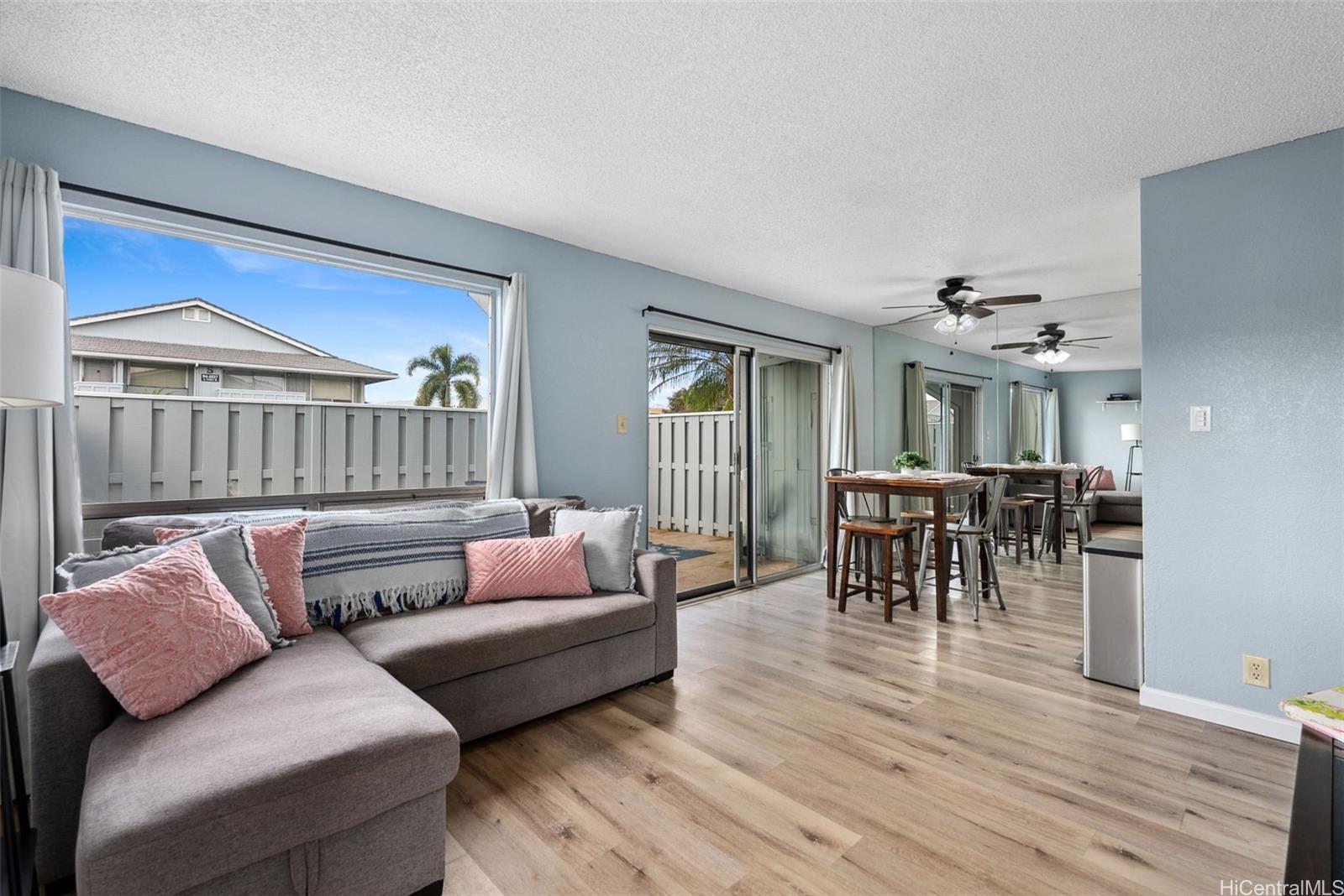 | his unique ground level, 2 bedroom condo is a must see! A fabulous pet friendly home centrally located near a variety neighborhood parks, pathways and the Waikele Golf Course and dog park. Whether you enjoy an active lifestyle or relaxing for sunsets on the lanai you will appreciate the convenience of having Premium Outlet shopping, Foodland, Safeway, Costco and a variety of restaurants just minutes away. Centrally located on island provides quick access to H1 & H2 freeways making commutes to UH West Oahu, Schofield Barracks, JBPHH, Wheeler and Barbers Point military bases easy. Updates were made to flooring and countertops in 2021. New appliances installed this year include a hot water heater, and washer/dryer. Schedule a showing today and see why so many people love living in Waipio. | What will it cost to own? | |