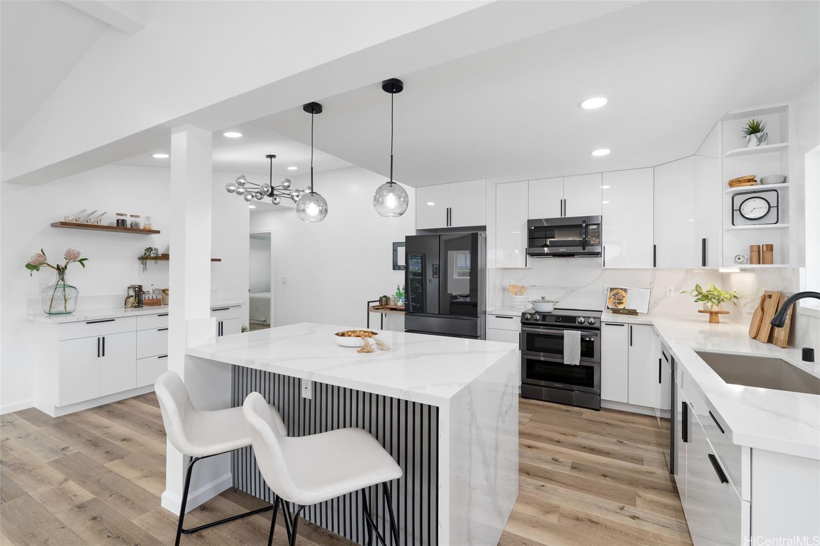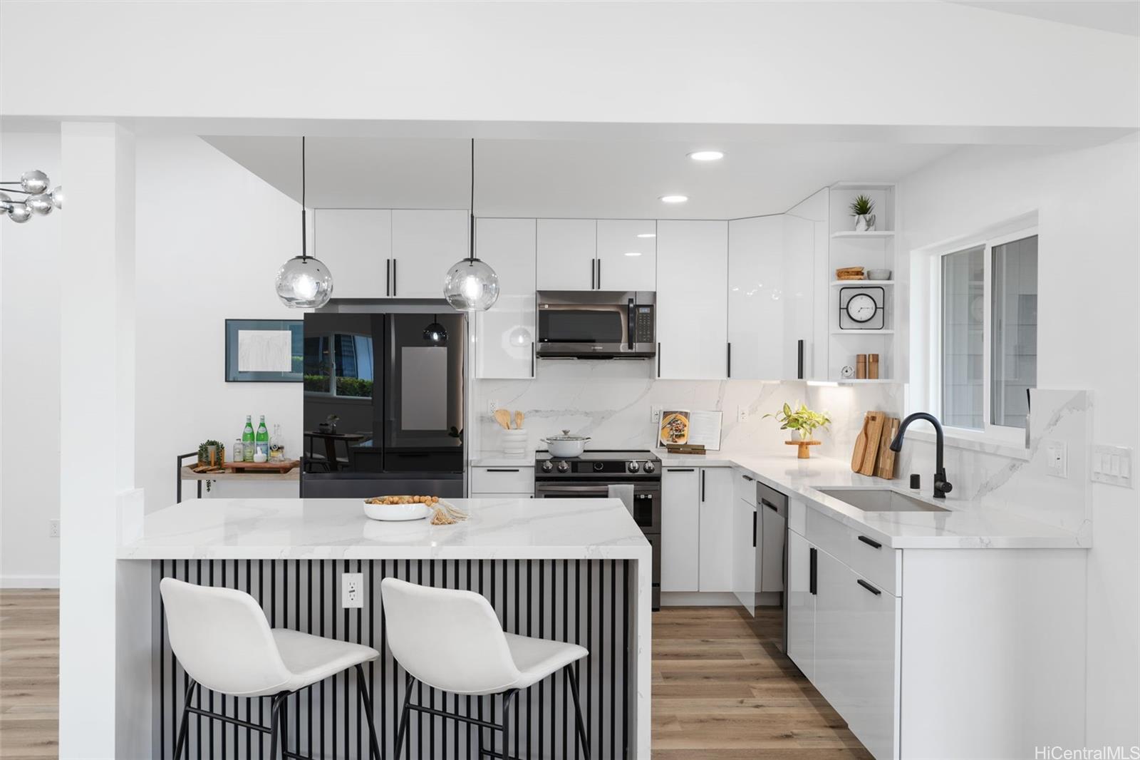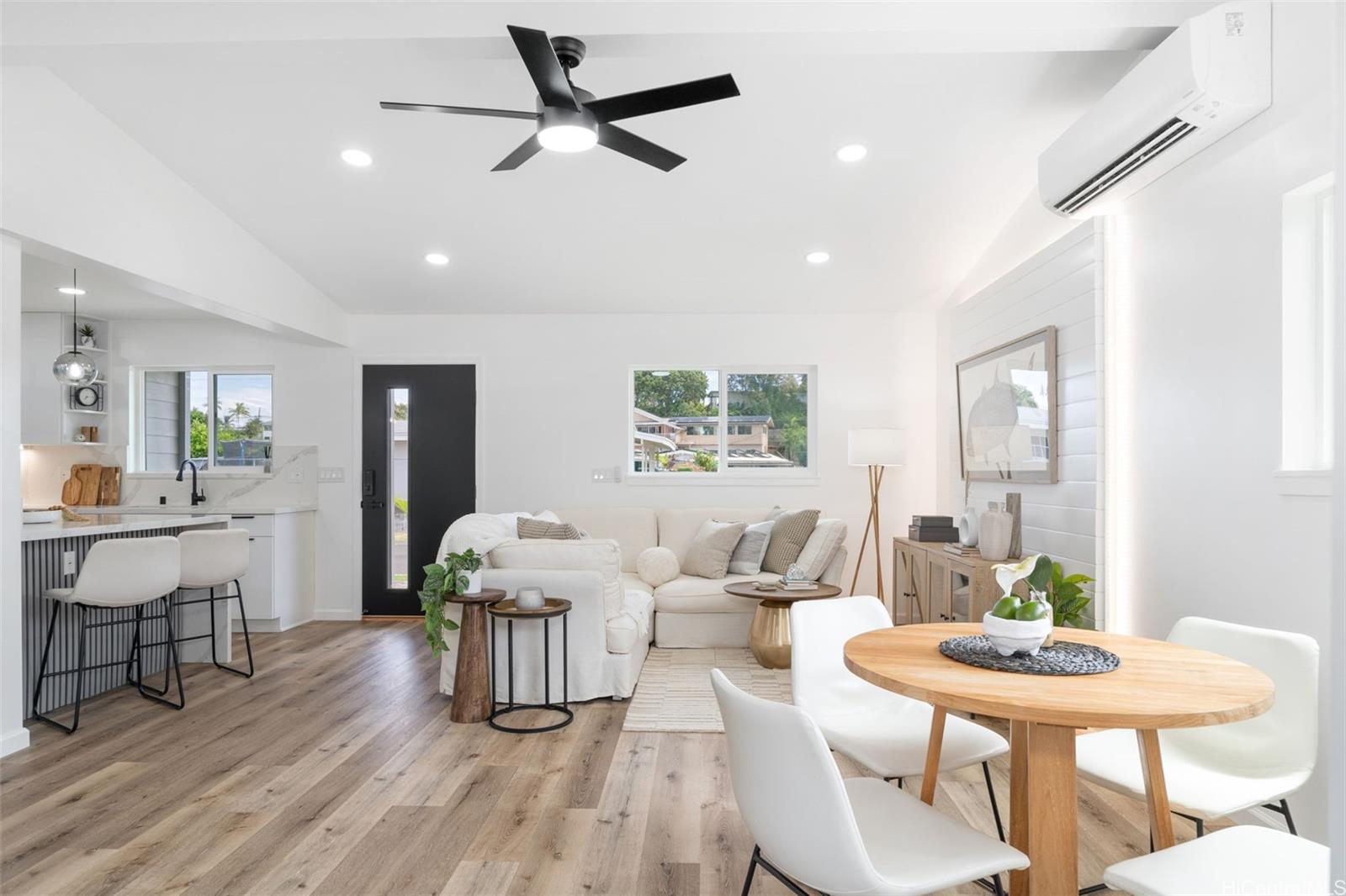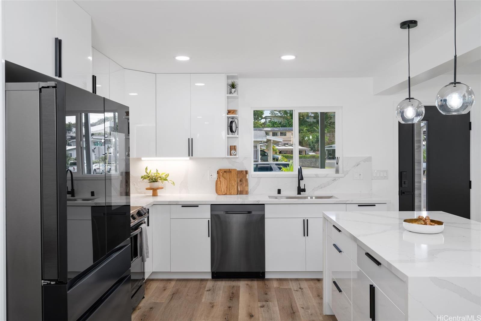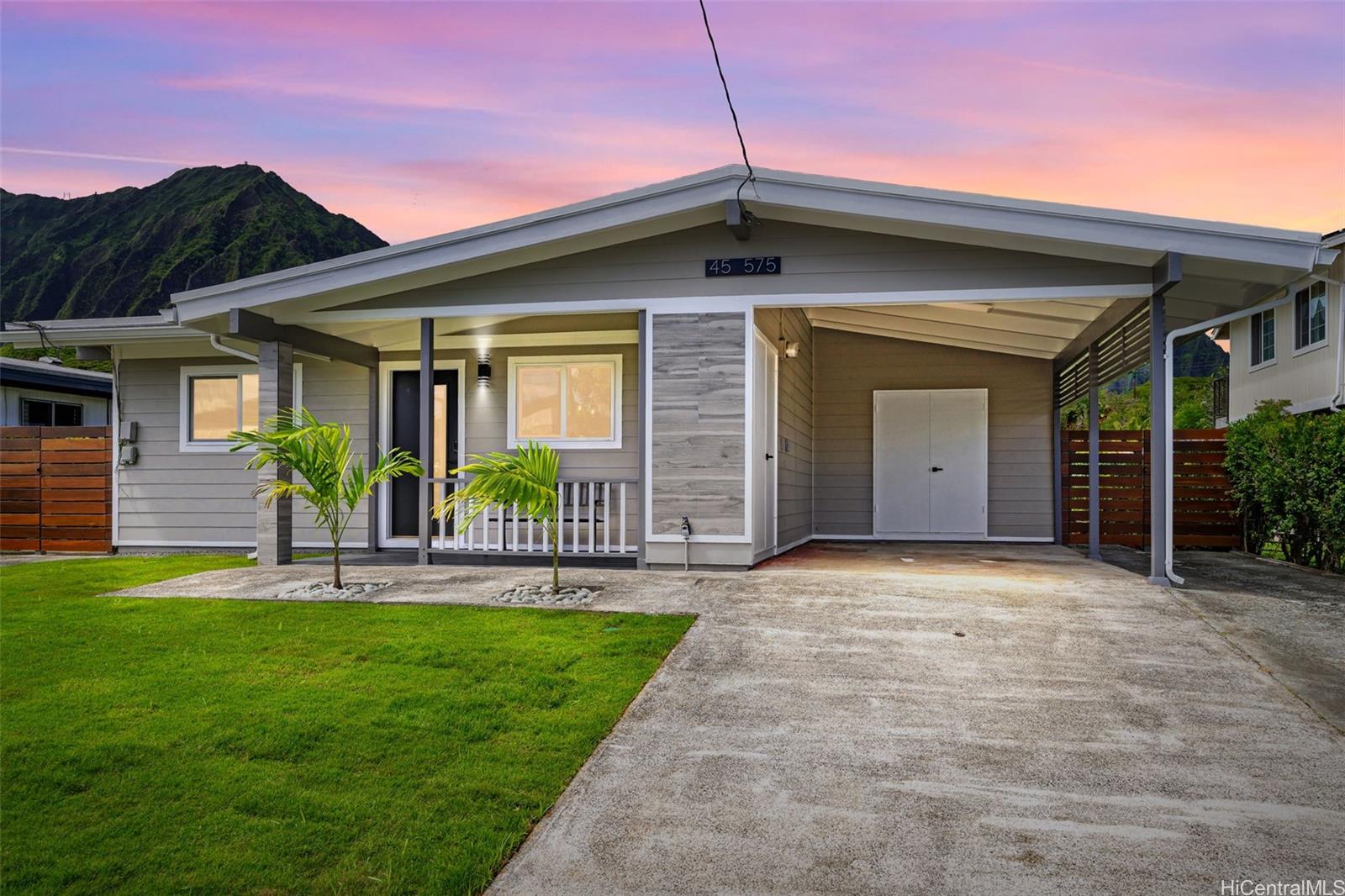 | elcome Home to this meticulously renovated property with the Ko'olau mountain views in the highly sought-after Kaneohe neighborhood. The Full Renovation includes all new modern fixtures and finishes, black stainless steel appliances, quartz countertops with a waterfall edged island, luxurious white acrylic cabinets, split AC units, new vinyl plank flooring throughout, custom interior LED backlit TV wall, solid wood fence entrance to a fully landscaped spacious backyard, and a large patio space built for entertainment with a natural quartz bar top and a TV wall. This home also features a separate open parking area to accommodate a boat for those who love to explore the nearby waters or it provides additional parking space for guests. This is a prime location which is conveniently located near shopping centers, restaurants, and it has easy access to H3 and Likelike Hwy. This beautiful house is a testament to both luxury and natural beauty, and you can enjoy this peaceful retreat brought to you every day when you return Home. Seize the opportunity by scheduling a showing Today! Or stop by the First Public Open House: Saturday 1-4PM and Sunday 10/22, 2-5pm | What will it cost to own? | |