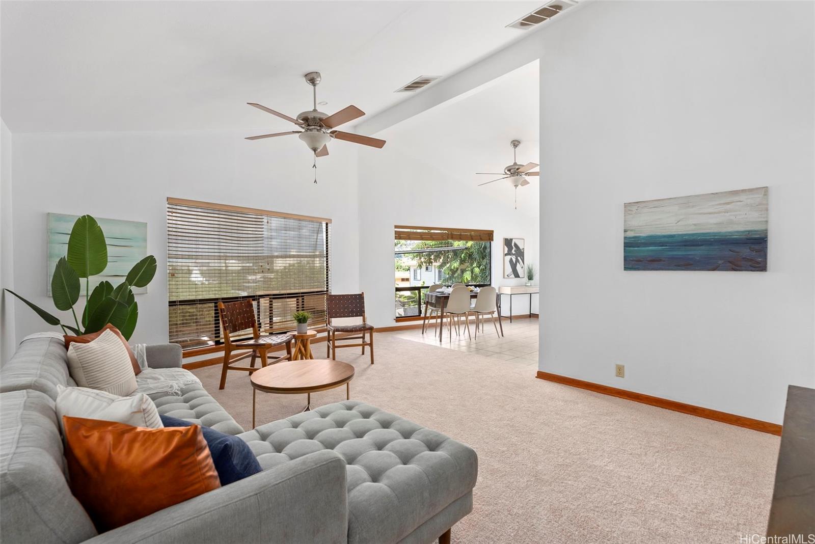 | hy buy a condo when you can buy a detached stand alone home in town at an affordable price and NO MAINTENANCE FEES! Built in 1996, this 3 bedroom 2 bathroom two story home in Punchbowl has separate entrances for flexible living. Upstairs are the living room, kitchen, 2 bedrooms and 1 bath and downstairs there is 1 bedroom, 1 bath and a wet bar area. There is also a connection on the interior of the house as well to keep everyone connected or a door can separate the living areas. High ceiling and large picture windows bring lots of light into the upstairs area. Updates include: split a/c upstairs, ceiling fans, new solar attic fans, brand new interior paint, brand new carpet and newer roof (2020). You can park 3 cars in the driveway and still find lots of street parking. The yard is fully fenced in for those pet lovers and goes all around the house. This location cannot be beat! Access to the freeways and downtown Honolulu are just minutes away!Please ONLY park in the driveway out front or across the street. | What will it cost to own? | |