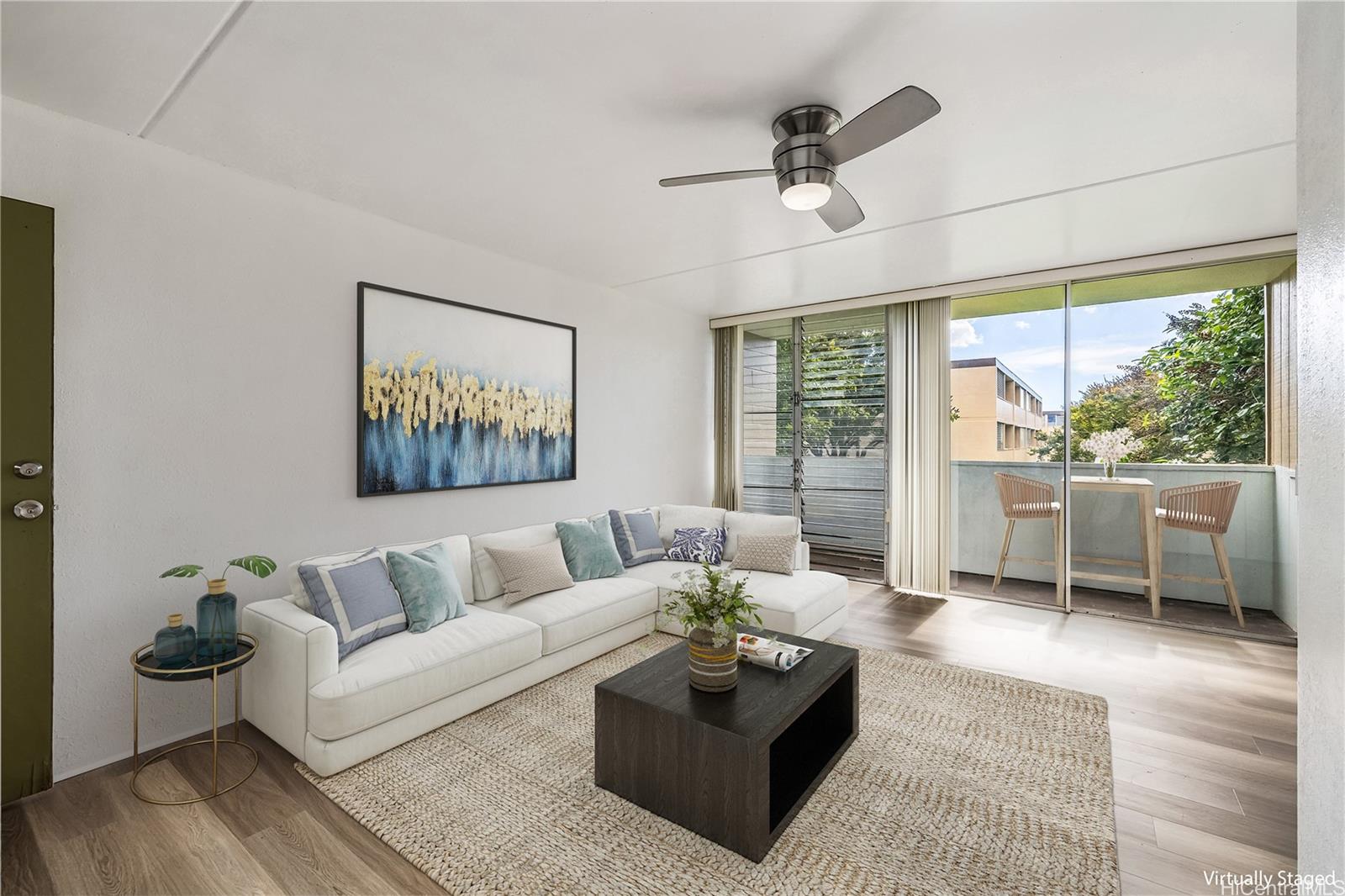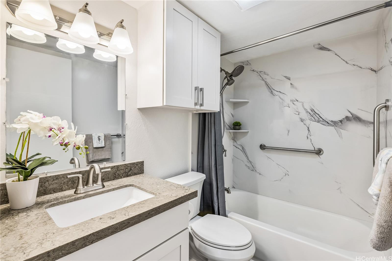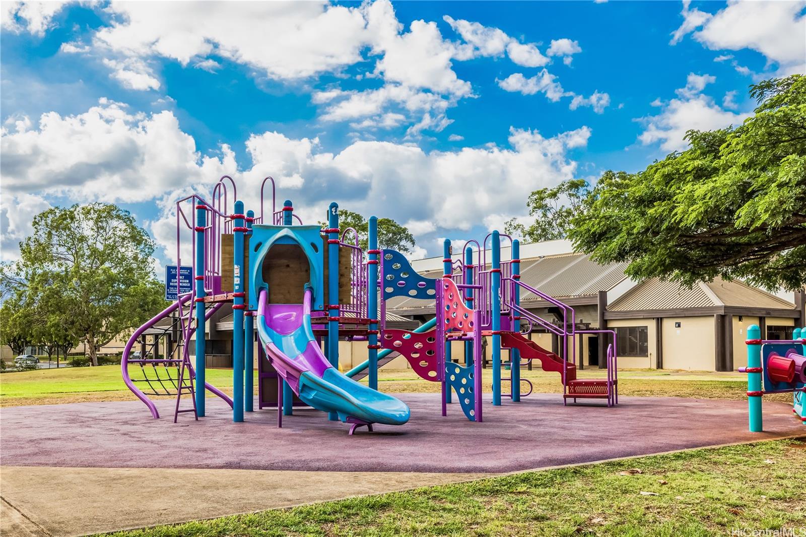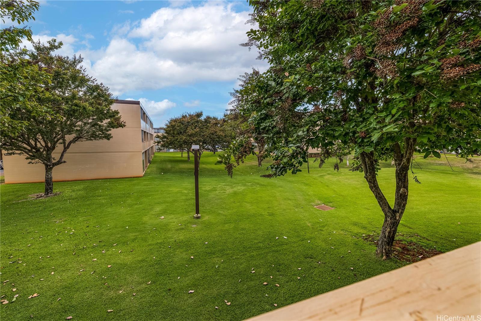 his charming 2 bedroom, 1 bath home is move-in-ready and located in the desirable community of Mililani. You will love the open concept kitchen with upgraded cabinets, quartz countertops, stainless steel appliances, tankless water heater, new luxury vinyl plank flooring, washer/dryer, assigned parking and additional guest parking for visitors. Enjoy cool evenings sitting on your lanai overlooking the grassy courtyard. Hokuahi Apartments is pet friendly, VA eligible, convenient to Safeway, Longs, schools, shopping, theater, and restaurants. Your association fees include access to the Mililani Neighborhood Recreation Centers! The photos have been virtually staged. Please watch the video!