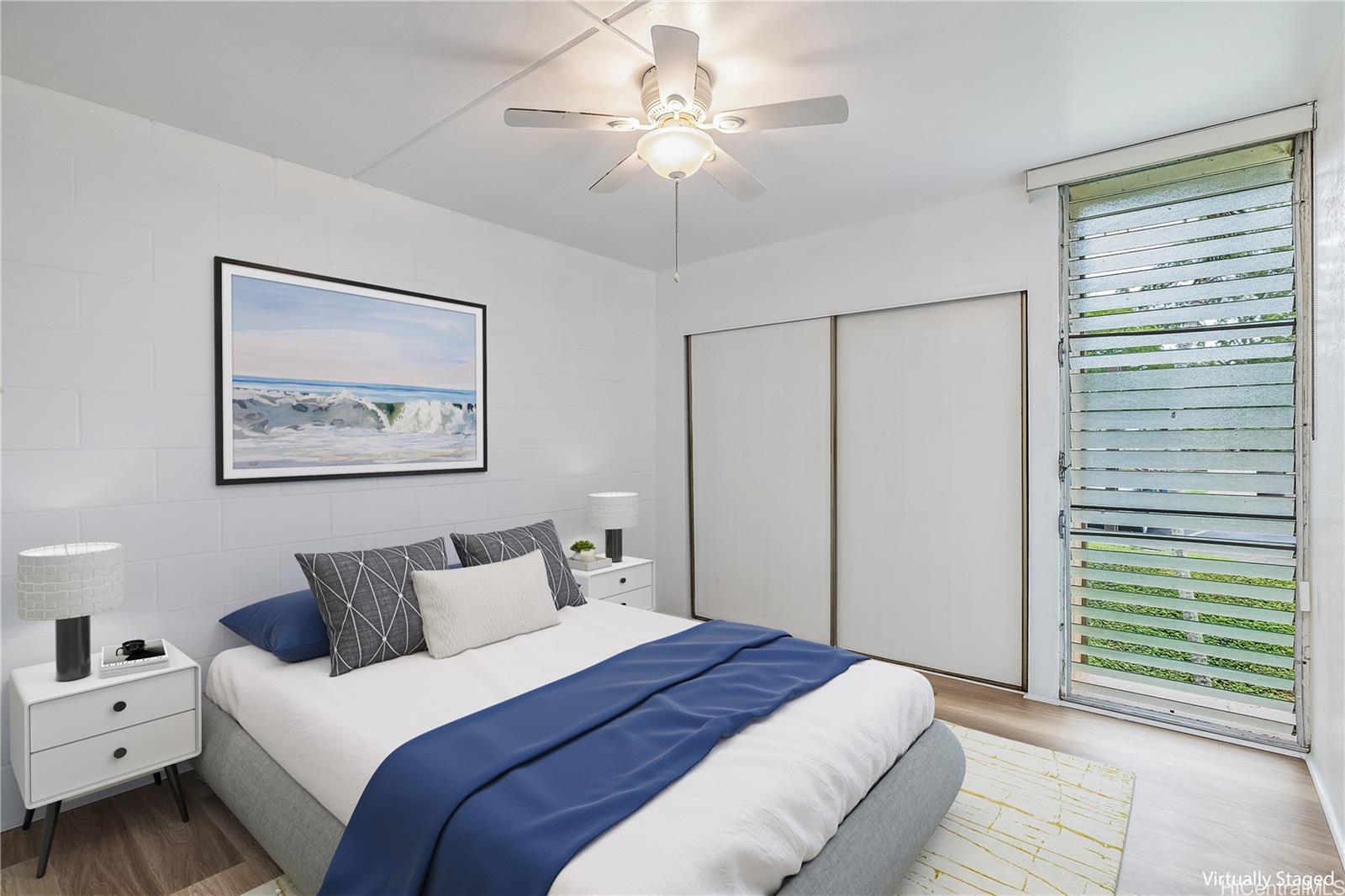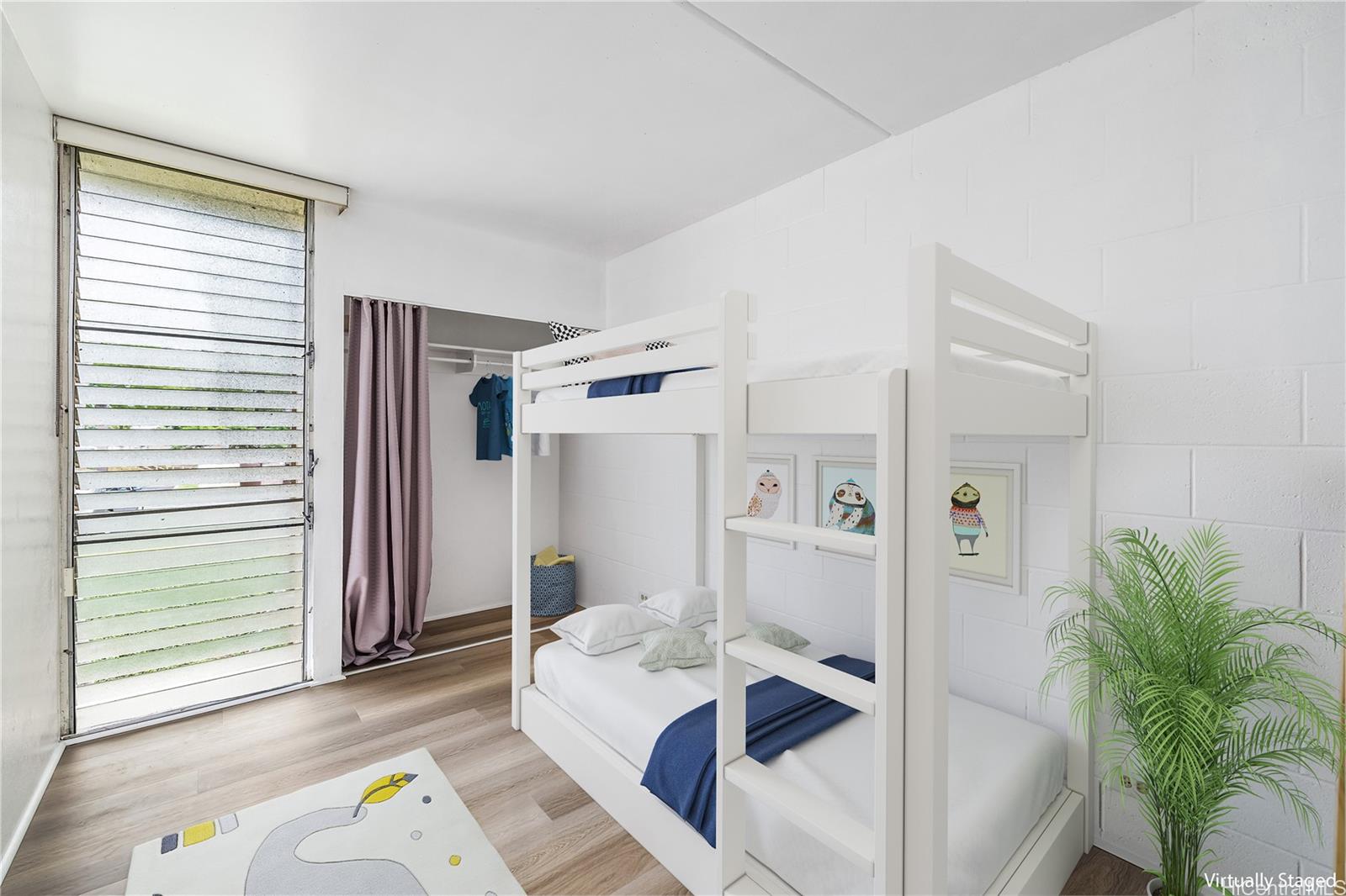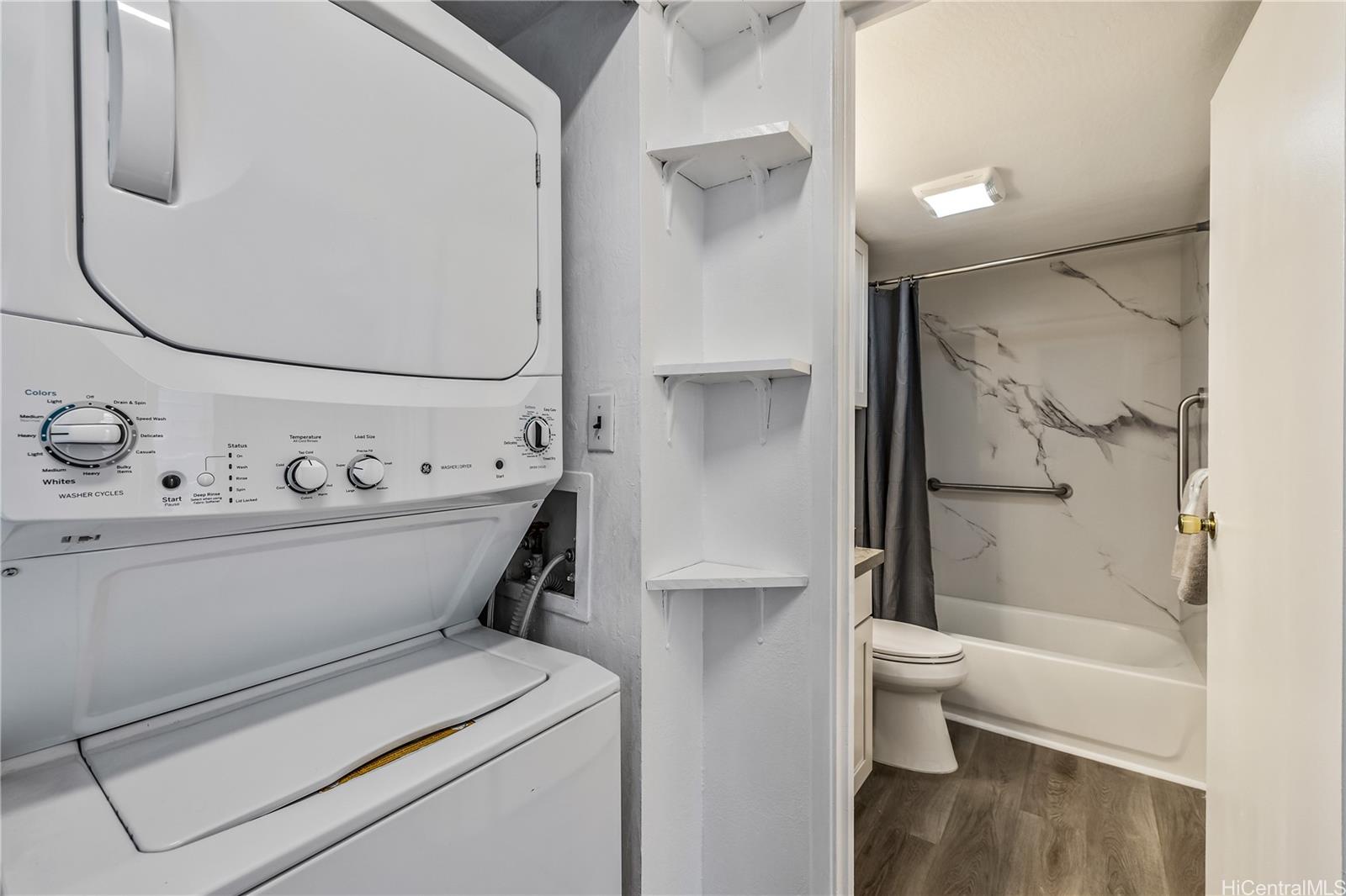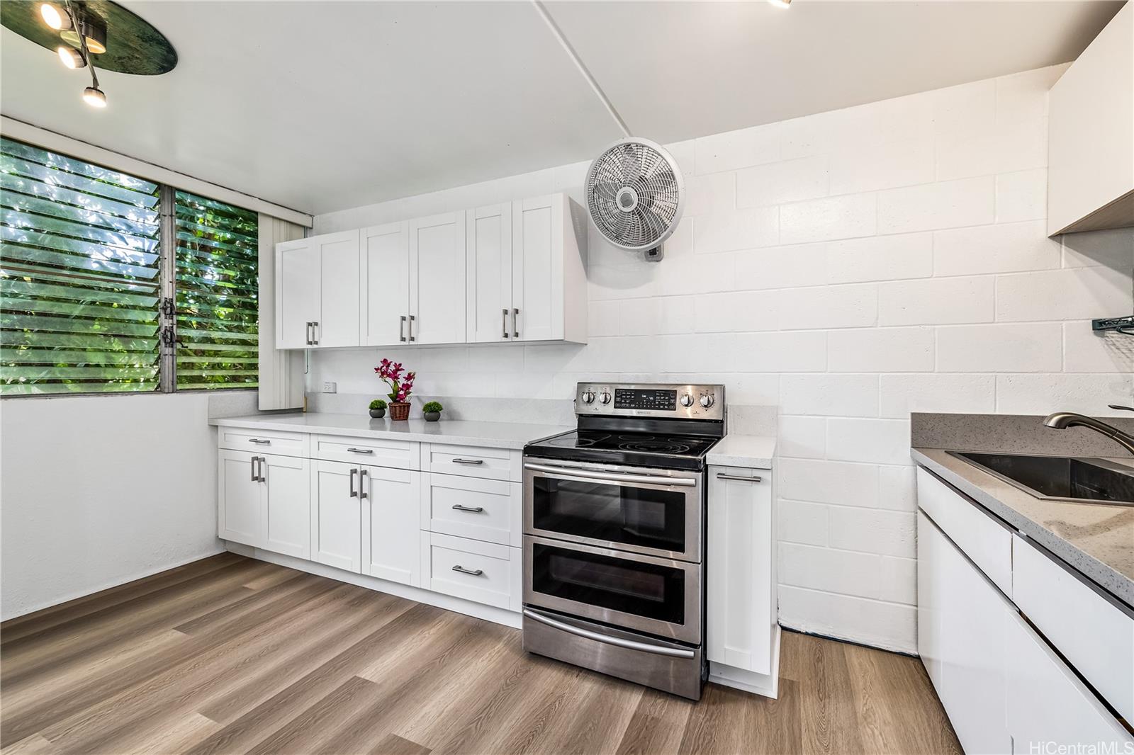 his charming 2 bedroom, 1 bath home is move-in-ready and located in the desirable community of Mililani. You will love the open concept kitchen with upgraded cabinets, quartz countertops, stainless steel appliances, tankless water heater, new luxury vinyl plank flooring, washer/dryer, assigned parking and additional guest parking for visitors. Enjoy cool evenings sitting on your lanai overlooking the grassy courtyard. Hokuahi Apartments is pet friendly, VA eligible, convenient to Safeway, Longs, schools, shopping, theater, and restaurants. Your association fees include access to the Mililani Neighborhood Recreation Centers! The photos have been virtually staged. Please watch the video!