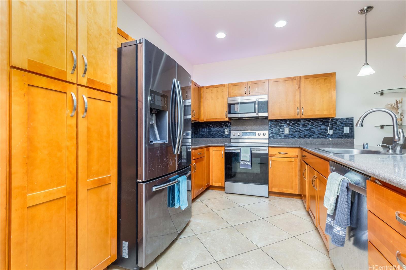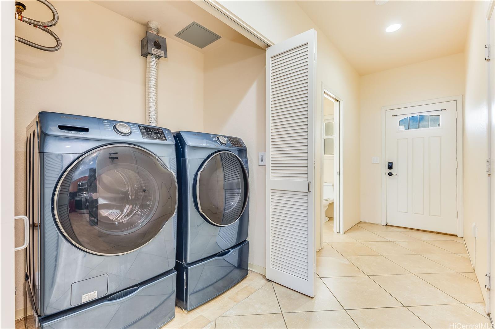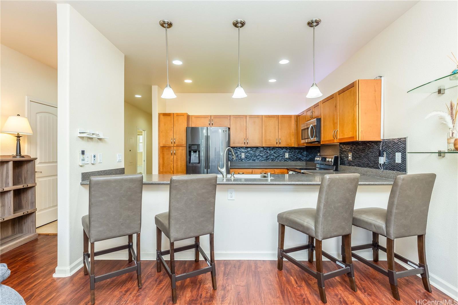 | elcome Home to Pulewa at Mehana Built in 2011, this multi-level 3 bedroom 2 full and 1 half bath townhome offers the comforts of an attached garage with driveway parking, covered ground floor entries, full-sized front loading high efficiency washer dryer in unit, a ground floor half bath, an open concept kitchen dining and living areas - perfect for entertaining, a covered lanai off of the primary bedroom and split ACs throughout the home. Nestled on a tree lined street with parking, this home is situated near many conveniences - there is a designated guest stall facing the unit; Mehana MAC center with a pool and an exercise room is about a block away; Mehana Sundial Park is about a half block away; and numerous local businesses are located throughout the neighborhood in close proximity; Ho'okele Elementary is approximately a block away and lastly across Fort Barrette Road is Kapolei High School.