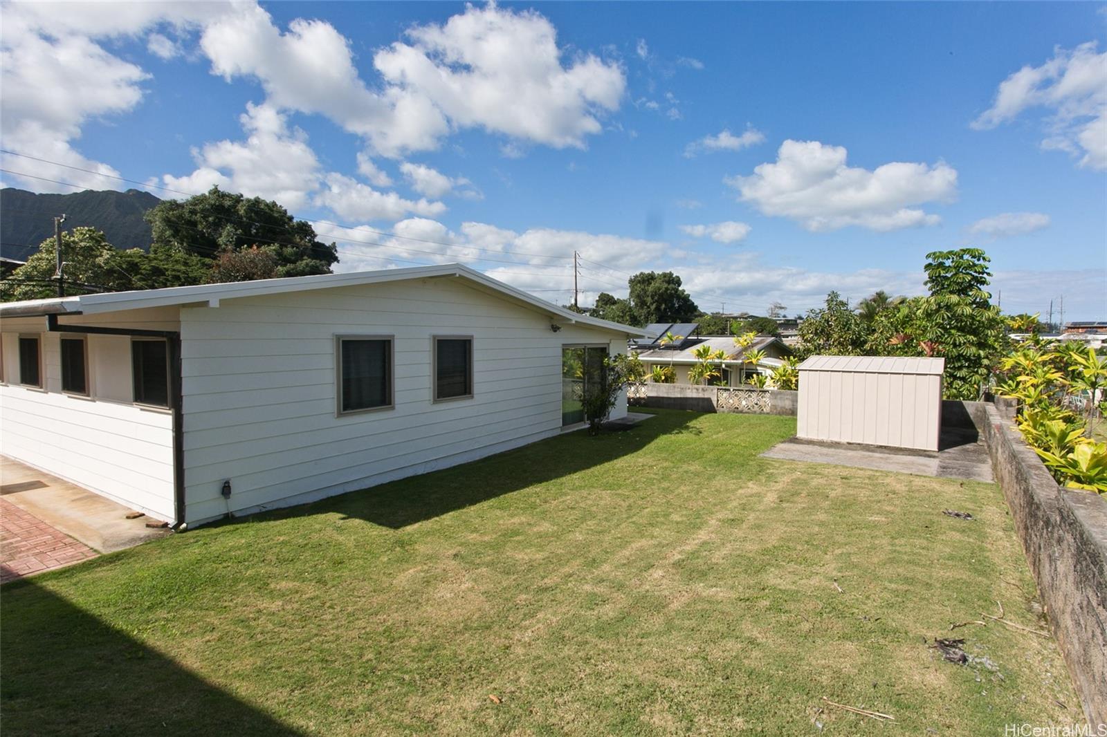 | ou don't want to miss this single-level, 3-bedroom, 2-bath home in the heart of Kaneohe on a large lot. Great views of the beautiful Koolau Mountains and minutes walk to the lush Hoomaluhia Botanical Gardens. Easy access to Likelike Highway, H-3 and Pali Highway. Newly painted exterior of the home. There is a built-in storage unit in the backyard. Indoor laundry room with washer, dryer and wash basin. Short drive to restaurants, grocery stores, and Windward Mall. | What will it cost to own? | |