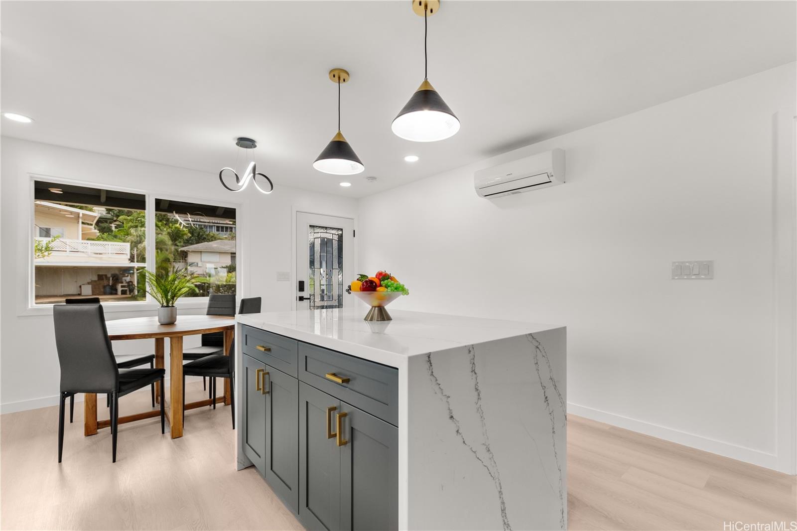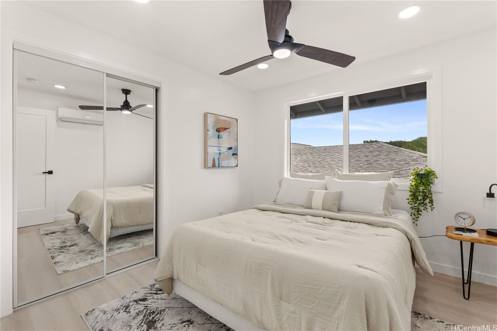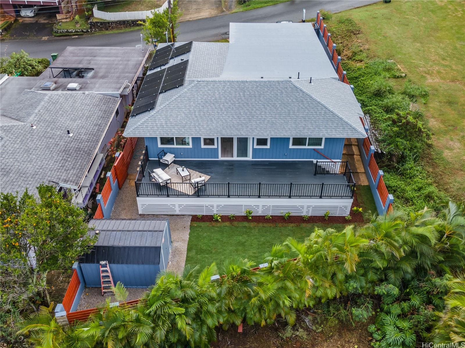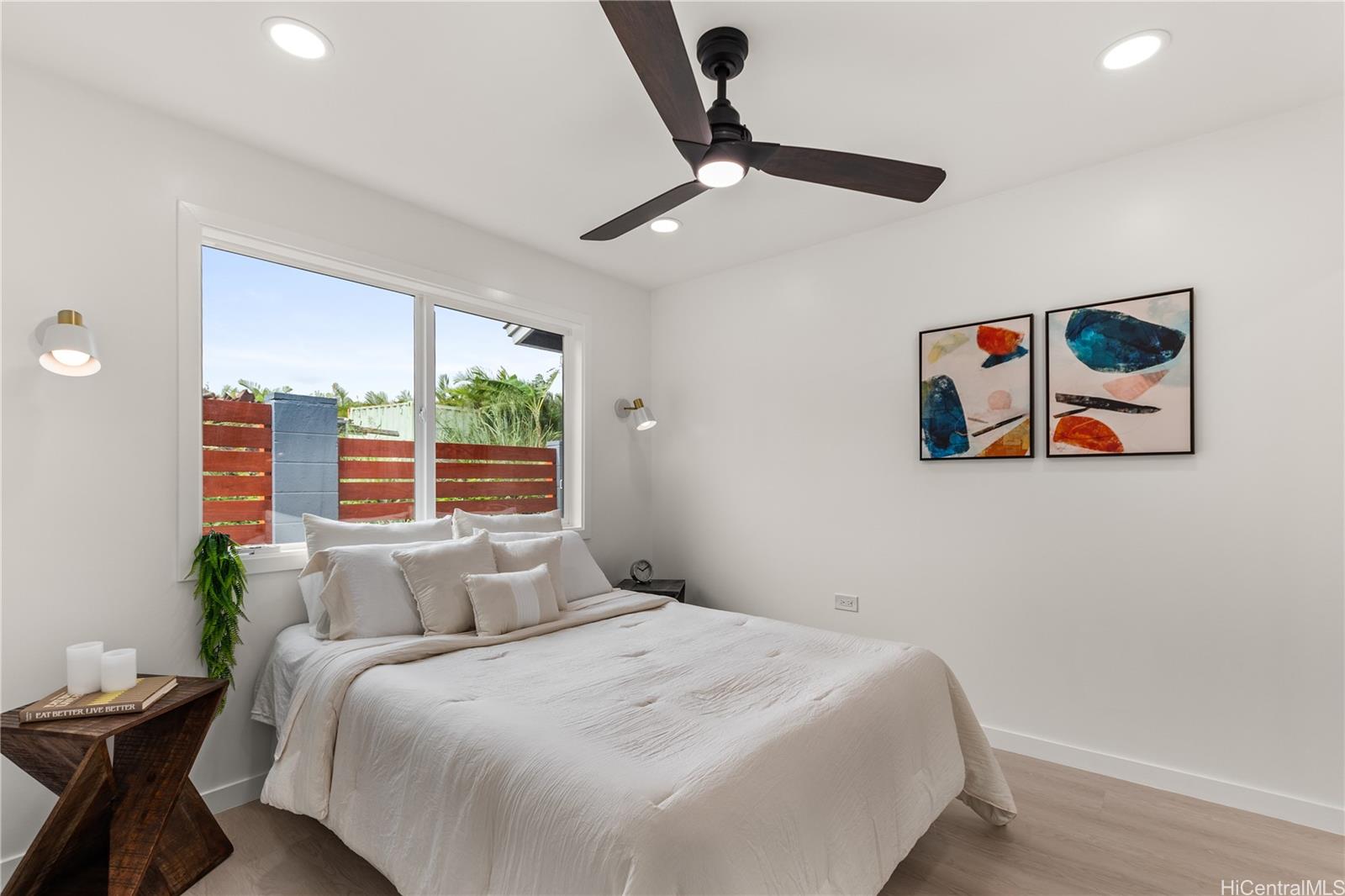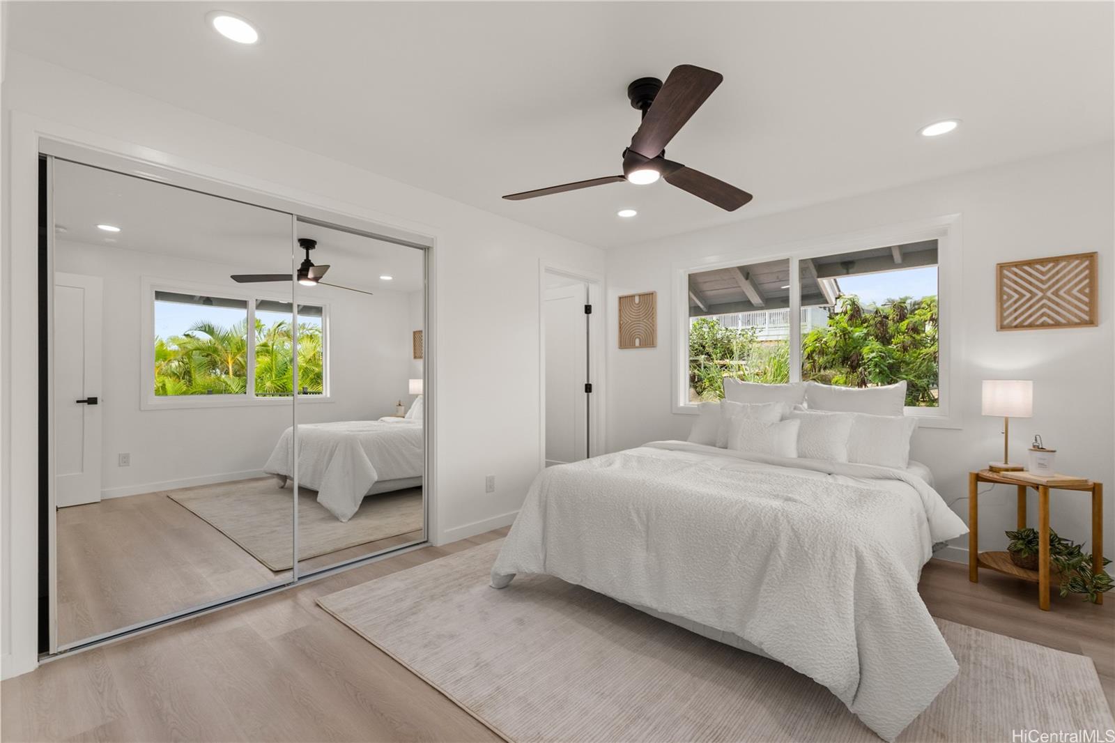 ULTI GENERATIONAL LIVING IN KANEOHE! Nestled into the Mikiola Hillside and designed for exceptional Kaneohe Bay & ocean views from virtually every room, this meticulously cared for home has been beautifully updated. This impressive layout includes a (3) bed / (2) bath in the main house & (1) bed / (1) bath in the attached unit, perfect for extended Ohana or added rental income. The home also has a brand new roof, 16 leased solar panels with brand new solar framing to keep your utility bill low, brand new luxury vinyl flooring and an abundance of natural light enhances this wonderfully open floor plan. Greet your guests into the open gourmet kitchen with a grand Quartz island, brand new windows in the spacious living room that opens up to the custom designed 400+ sqft lanai (perfect for morning coffee, making indoor and outdoor living a breeze)! All new appliances (toilets with bidet), split A/C system in every room, custom designed accent walls, and open concept layout perfect for entertaining friends and family. This impressive home was created for family enjoyments as well as the option to separate the (2) units for added rental income.