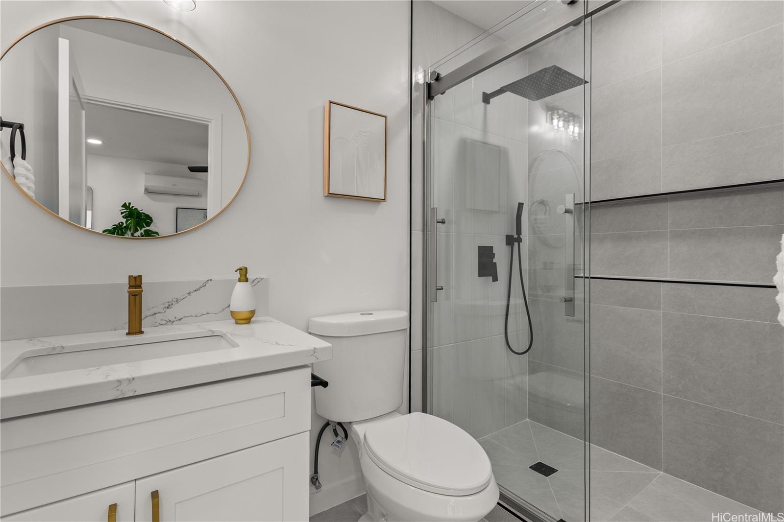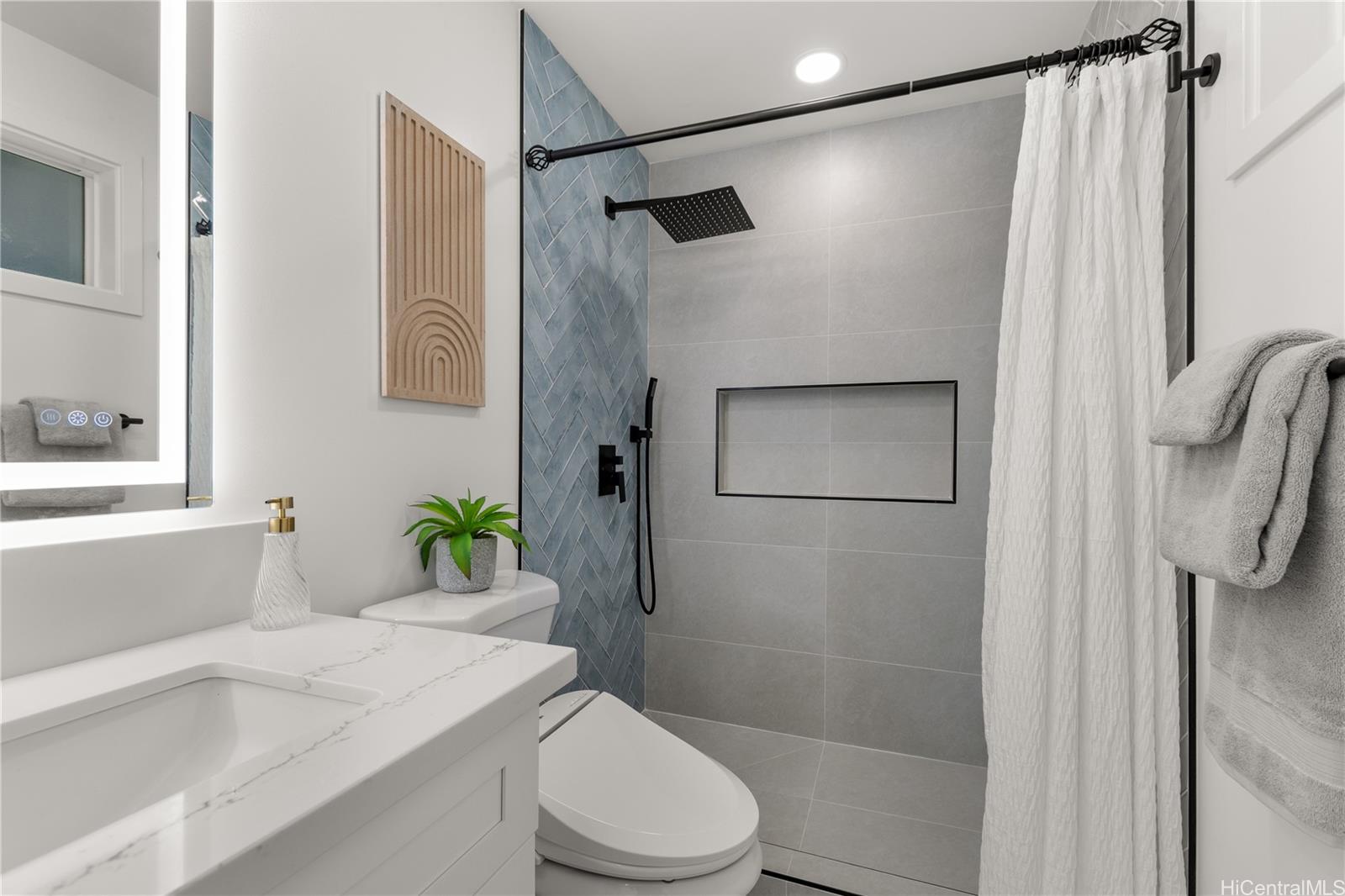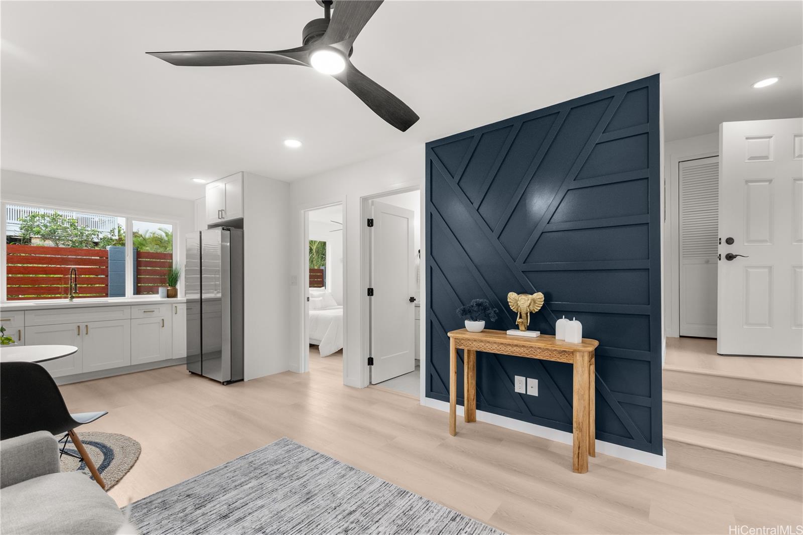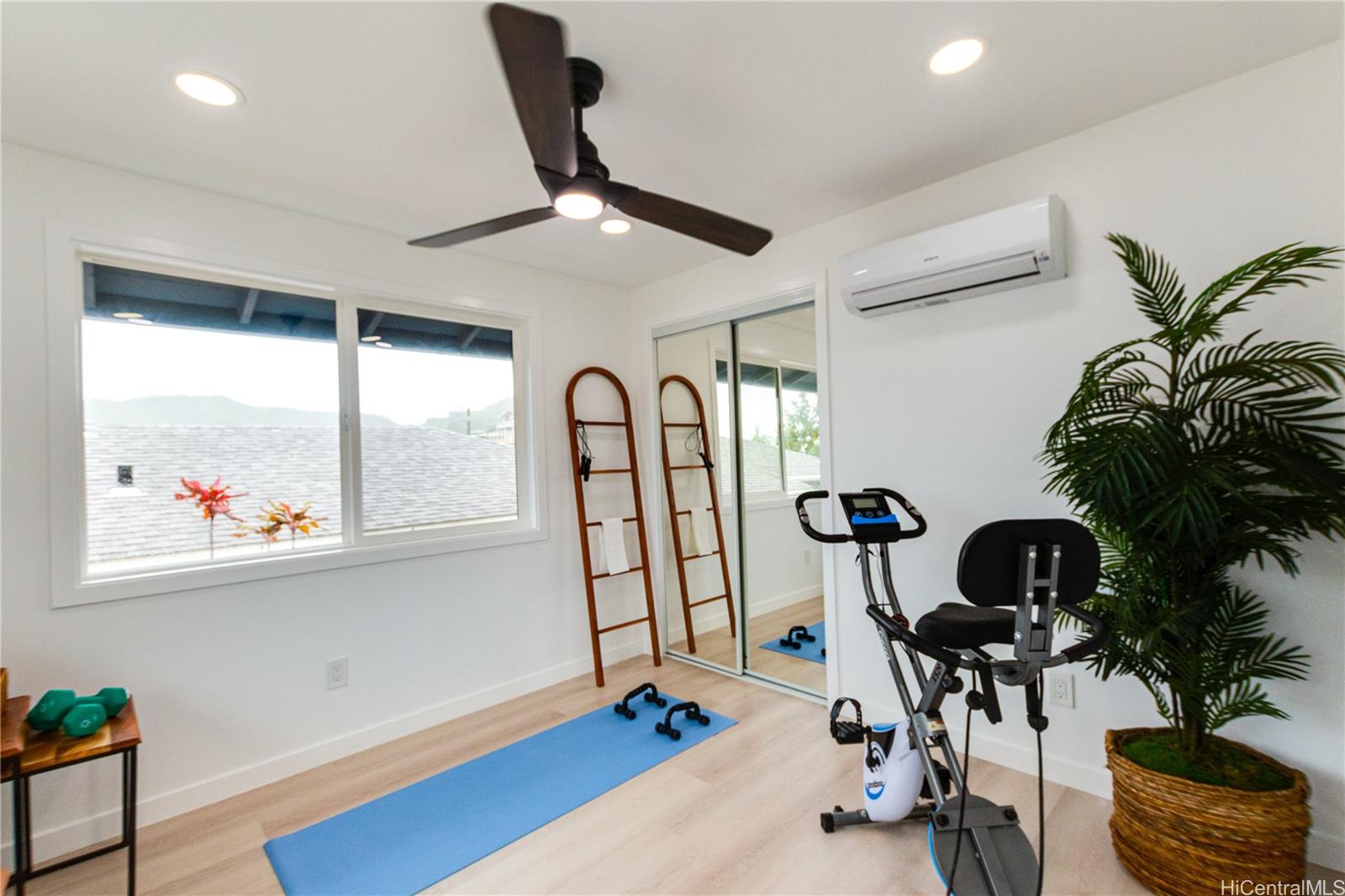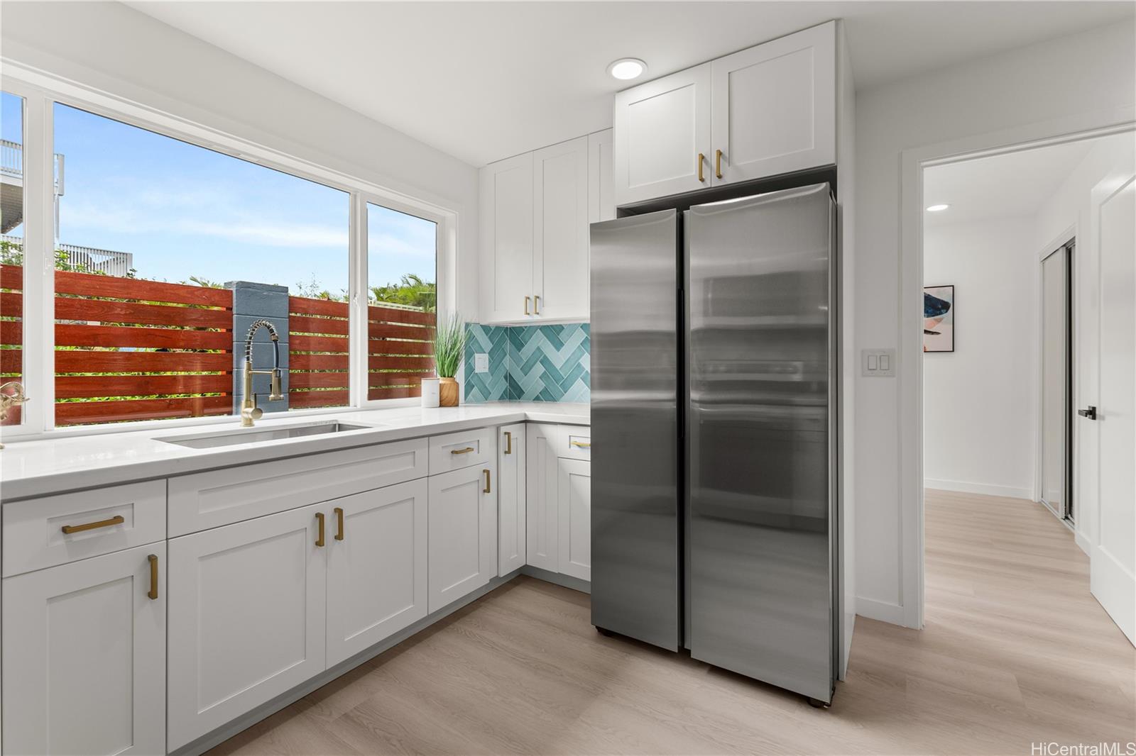 ULTI GENERATIONAL LIVING IN KANEOHE! Nestled into the Mikiola Hillside and designed for exceptional Kaneohe Bay & ocean views from virtually every room, this meticulously cared for home has been beautifully updated. This impressive layout includes a (3) bed / (2) bath in the main house & (1) bed / (1) bath in the attached unit, perfect for extended Ohana or added rental income. The home also has a brand new roof, 16 leased solar panels with brand new solar framing to keep your utility bill low, brand new luxury vinyl flooring and an abundance of natural light enhances this wonderfully open floor plan. Greet your guests into the open gourmet kitchen with a grand Quartz island, brand new windows in the spacious living room that opens up to the custom designed 400+ sqft lanai (perfect for morning coffee, making indoor and outdoor living a breeze)! All new appliances (toilets with bidet), split A/C system in every room, custom designed accent walls, and open concept layout perfect for entertaining friends and family. This impressive home was created for family enjoyments as well as the option to separate the (2) units for added rental income.