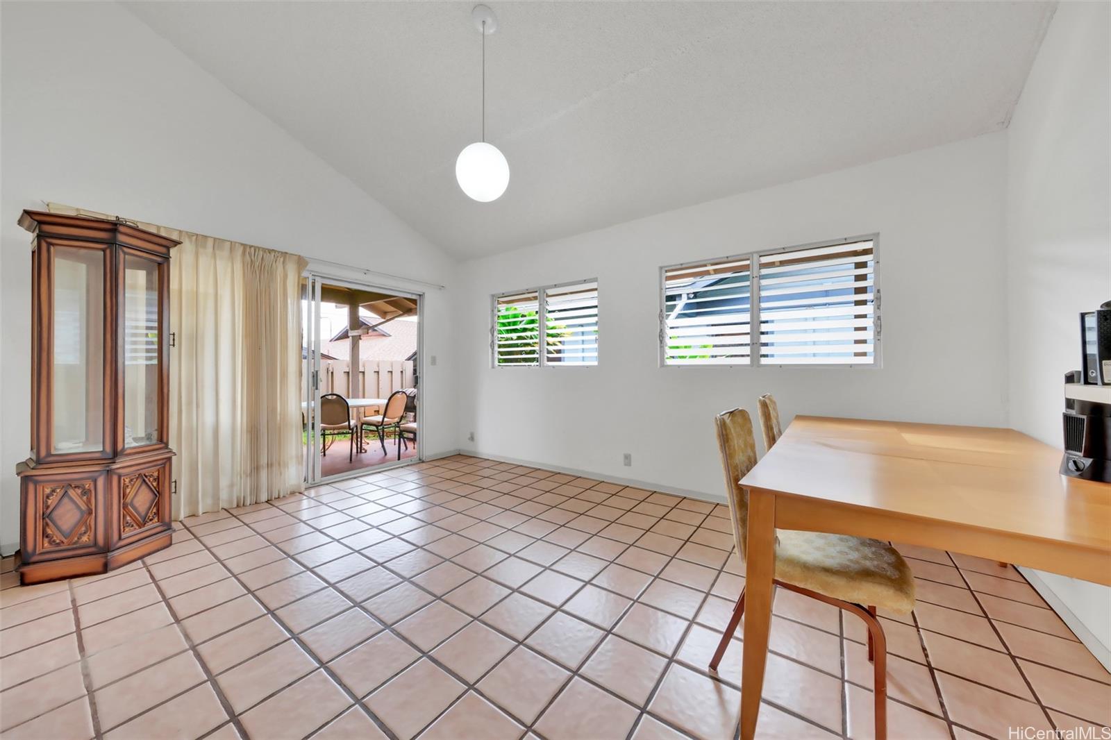 | reat location near Mililani Town Canter. 3 bedroom 2 bath, 2 story home. 2 bedrooms upstairs and one down. Pass through from kitchen to dining room for easy entertaining. Cool lanai out back. Enjoy the perks of belonging to Mililani Town Association, rec centers, pools, courts and more. | What will it cost to own? | |