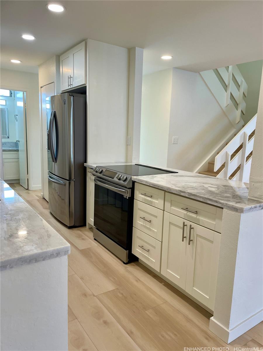 | | "Discover a move-in ready gem with this upgraded attached home featuring 4 bedrooms and 2.5 baths, all without the hassle of maintenance fees. The first floor boasts a spacious, recently renovated kitchen, a convenient bedroom, and a half bathroom for guests, while the second floor offers a comfortable primary bedroom with its own ensuite bathroom, an oversized covered deck with park views, and two additional bedrooms served by a separate full bathroom. Outside, enjoy an open patio and side yard area with a garden bed for fresh herbs and vegetables. Perfectly located near the Mililani shopping mall and a park, this home is ready for you to make it yours." "One or more photos have been enhanced". | What will it cost to own? | |