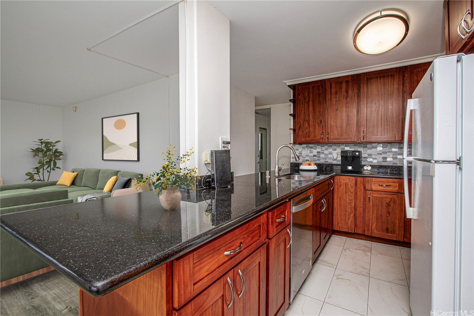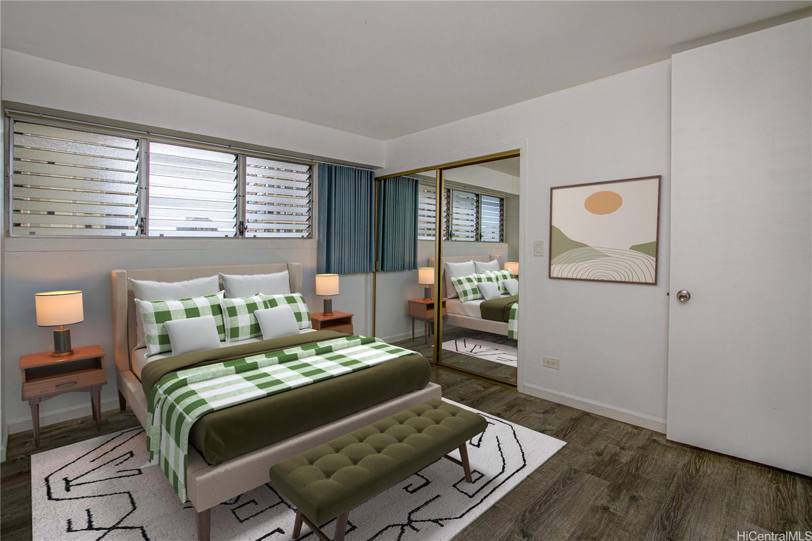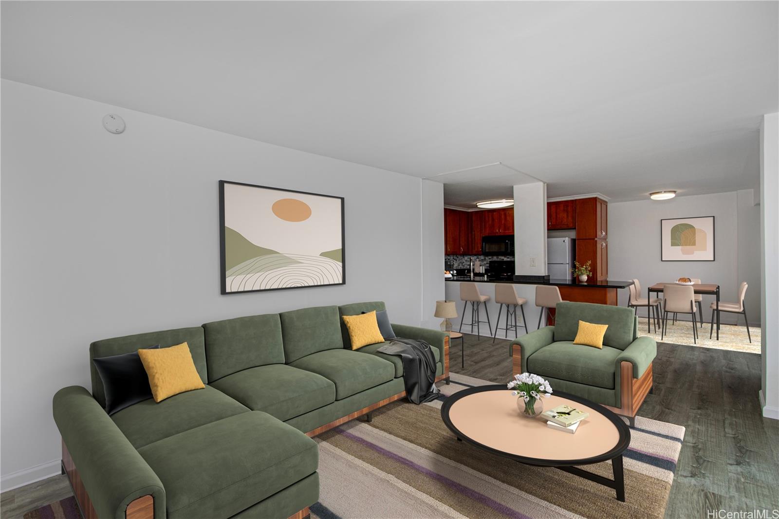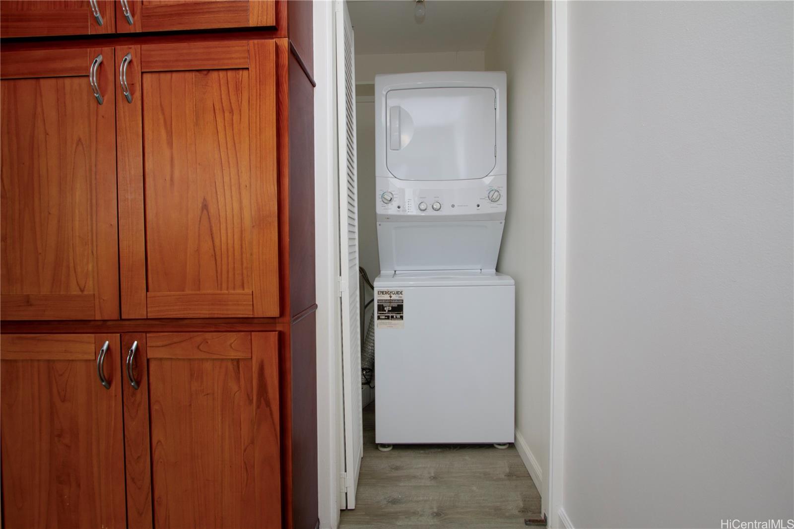 | anoramic views of the Ala Wai and Honolulu cityscape from this 2-bedroom, 2-bath Twin Towers residence. This spacious unit has a remodeled kitchen that has been opened up to allow for more counter space, and features granite countertops, hardwood cabinets, and a stacked washer and dryer. Relax on your covered lanai of over 100 square feet which spans the length of your unit or entertain guests poolside. The windows allow for ample light and cool ventilation throughout. With only 4 units per floor, this secured building allows for privacy and comes with 1 assigned parking stall. Conveniently located near Waikiki beaches, shops, and restaurants. | What will it cost to own? | |