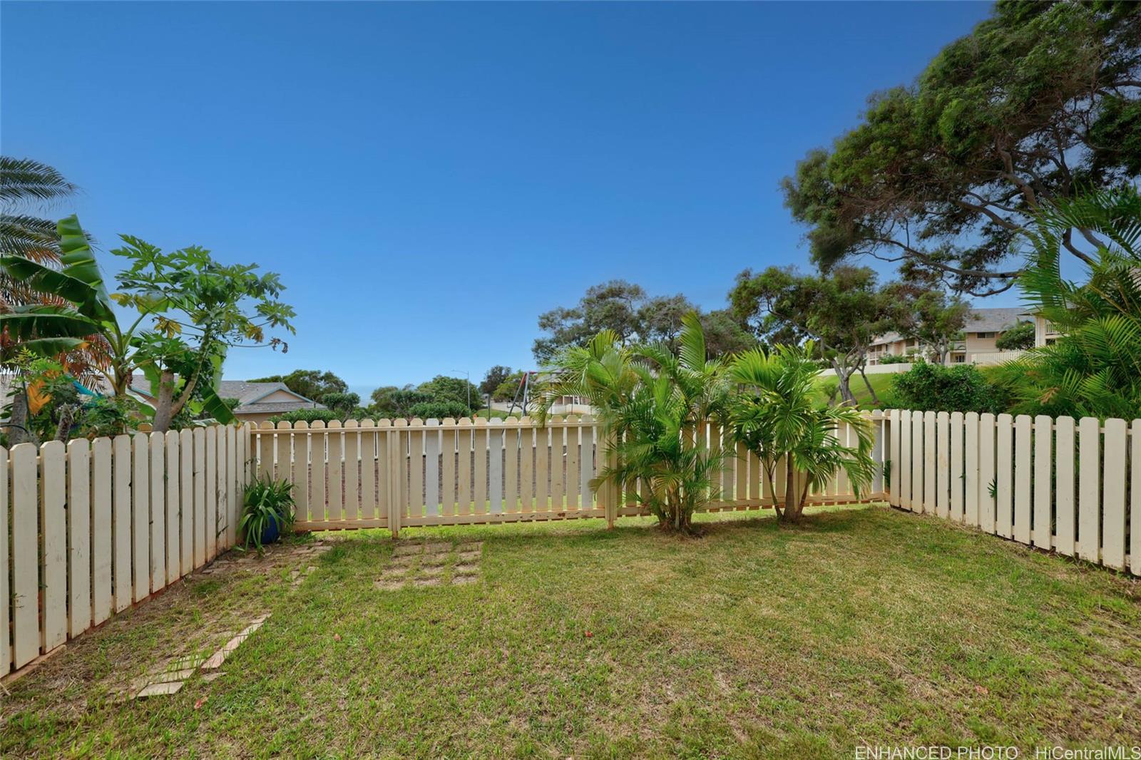 | elcome to Westview at Makakilo! This is a beautifully renovated 2 bedroom, 2 bathroom desirable ground floor townhouse. The entire unit has been upgraded with luxury vinyl flooring, new carpet, and freshly painted interior. Take advantage of a private fenced-in yard to enjoy a BBQ with your friends, family, and especially your furry pets. Enjoy a cup of coffee on your private lanai with the cool Makakilo breeze while overlooking the coastline and beautiful colored sky at sunset. The townhouse comes with 2 assigned parking and ample guest parking. There is easy access to freeways, schools, shopping, dining, golf courses, beaches, and more. Check it out it won't last long. Open house Saturday 12/23 2:00-5:00PM | What will it cost to own? | |